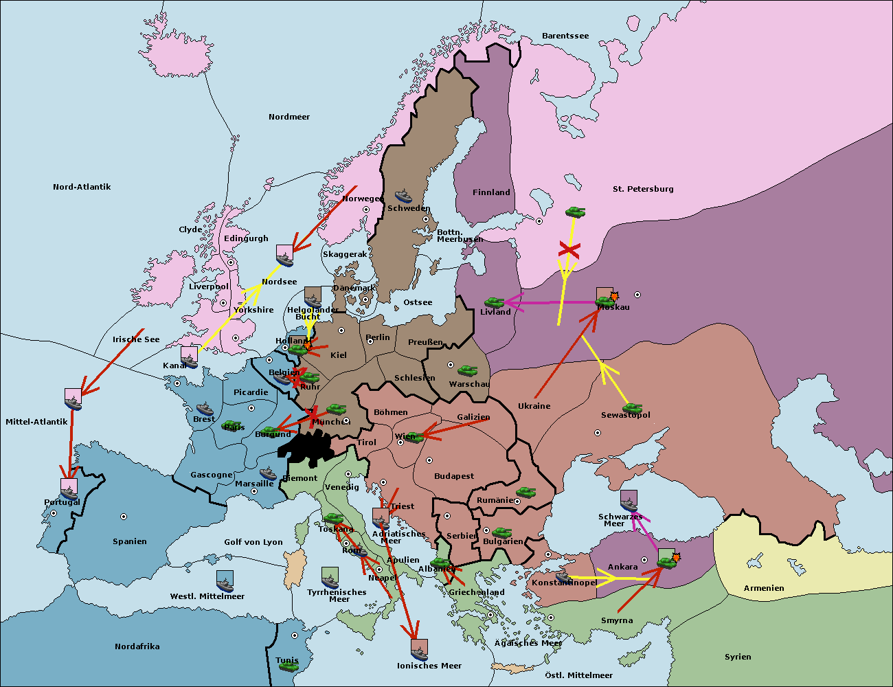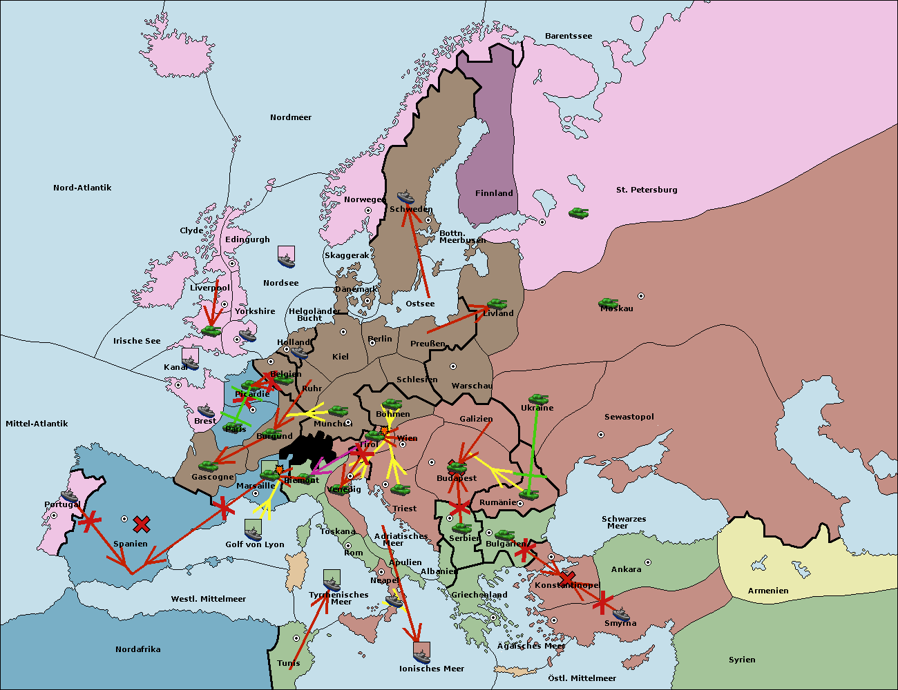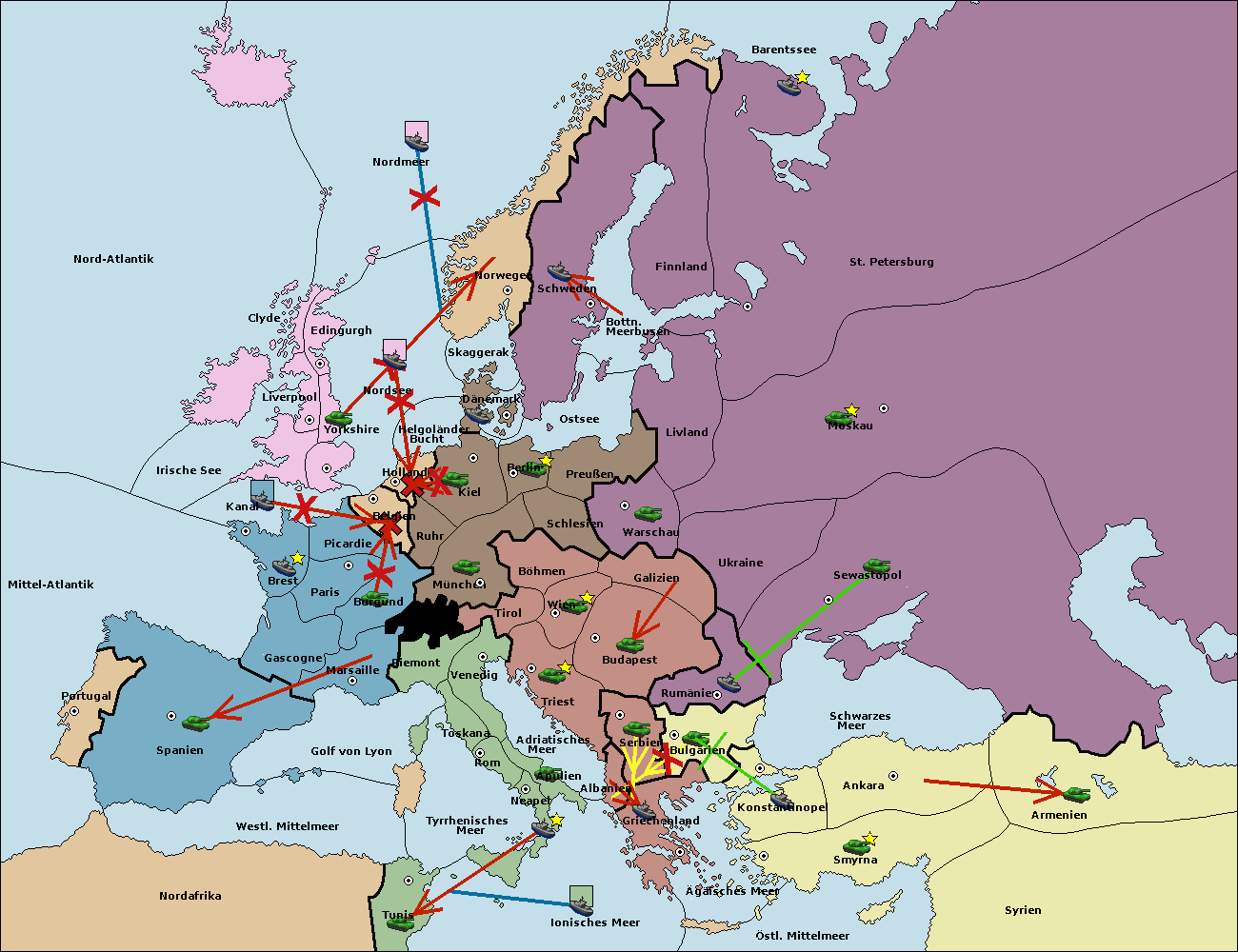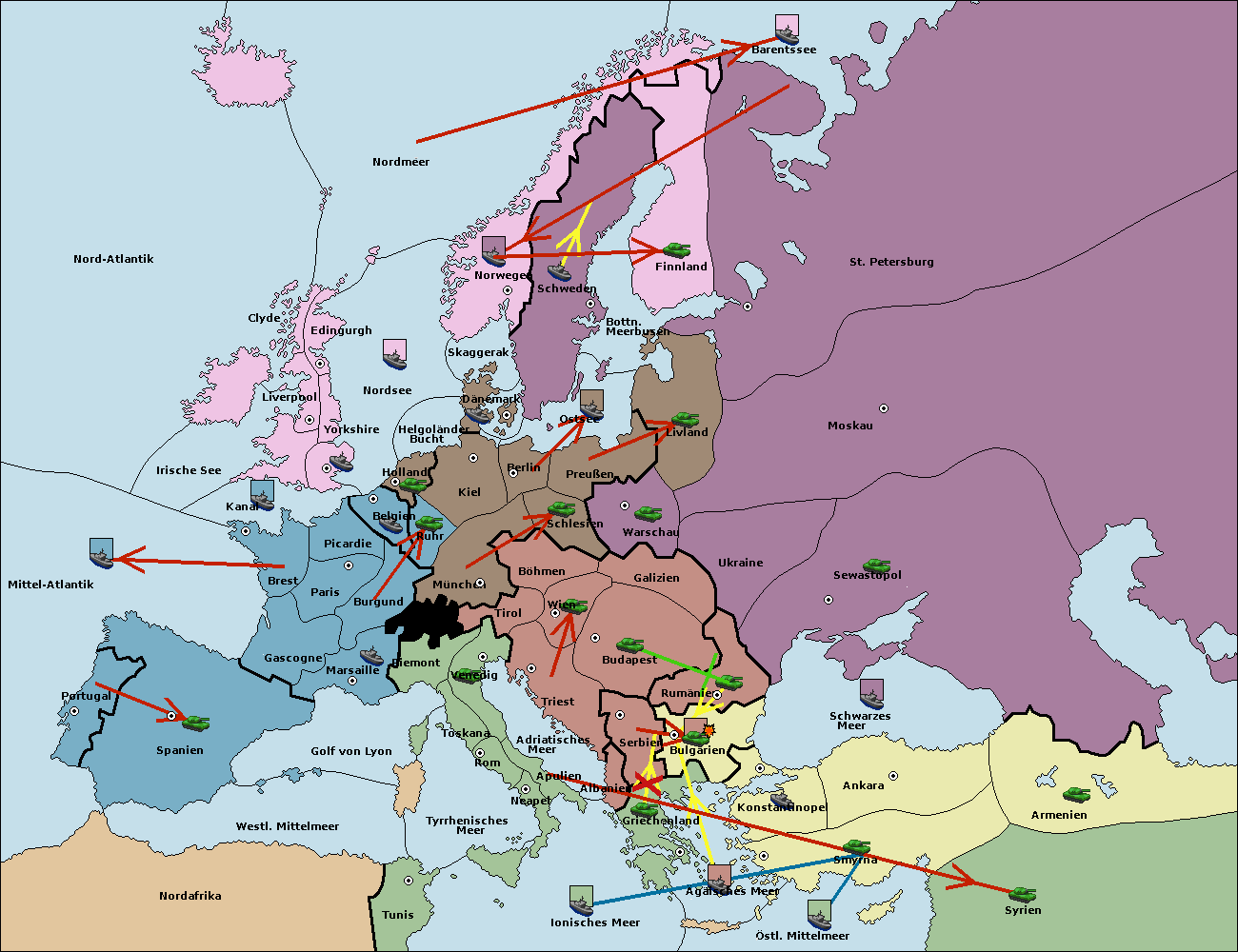 • Die Armee in Bulgarien wird zerstörtFlotte in Bulgarien gebaut.