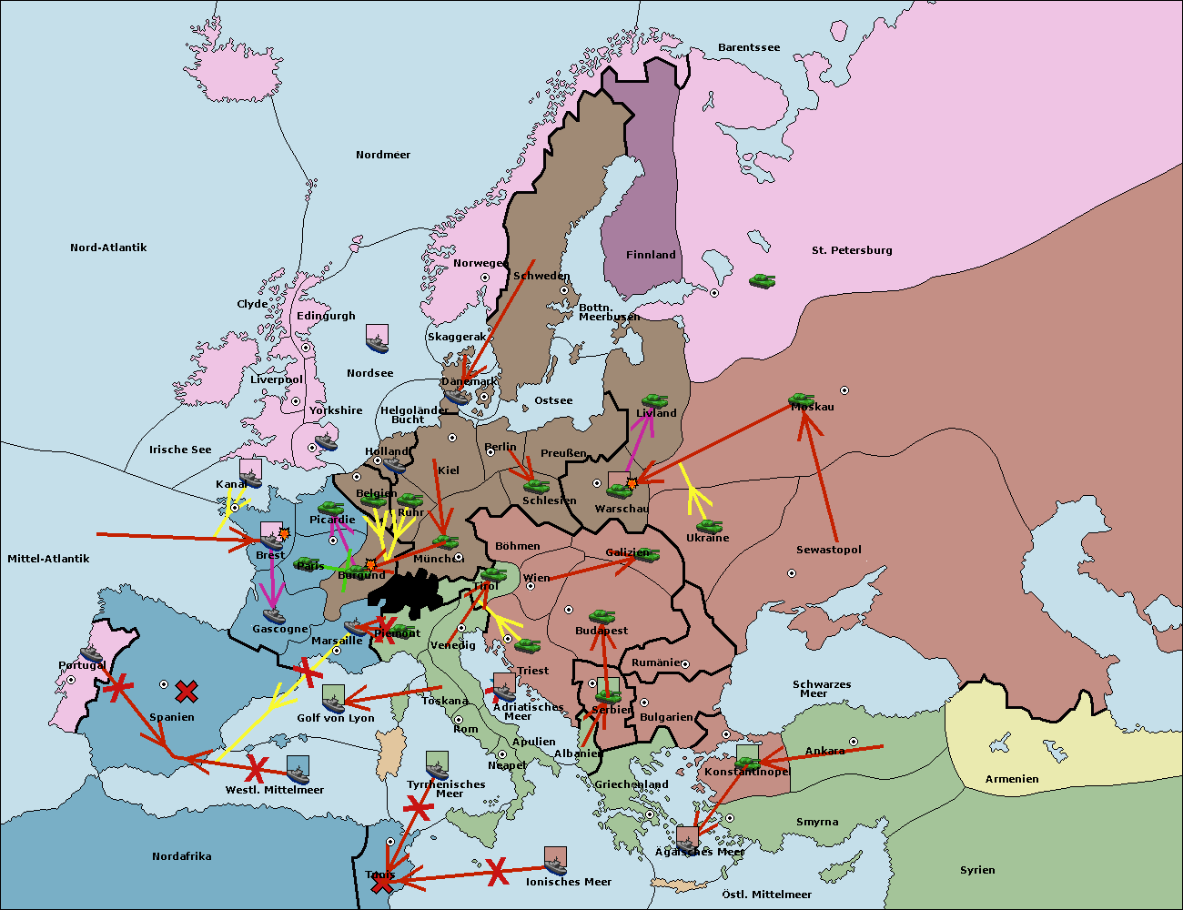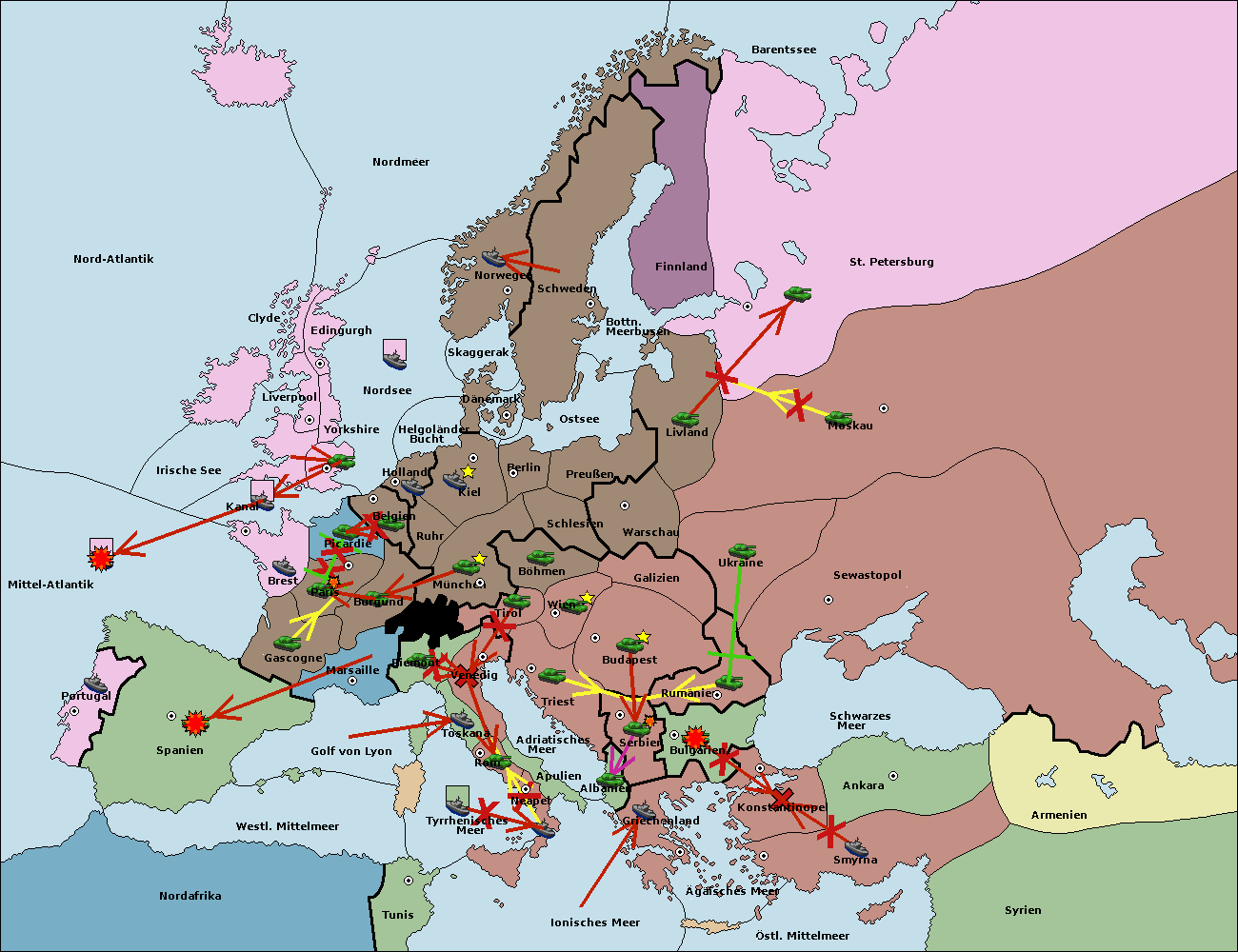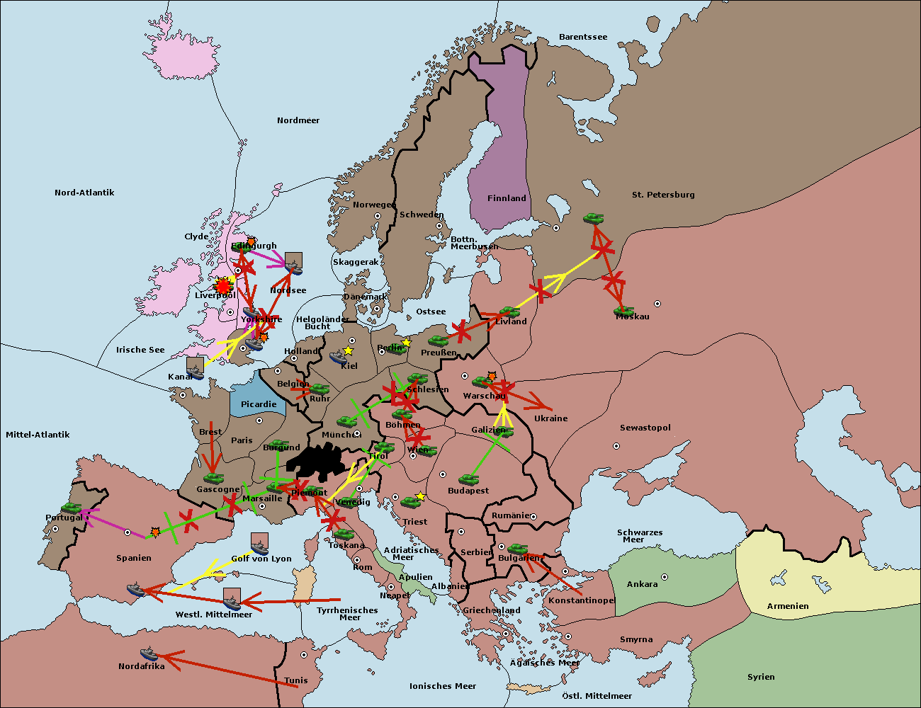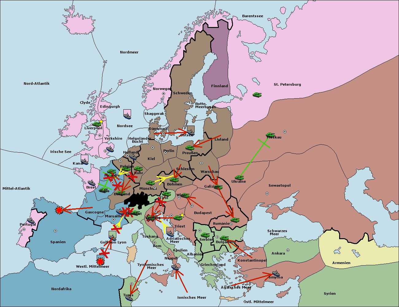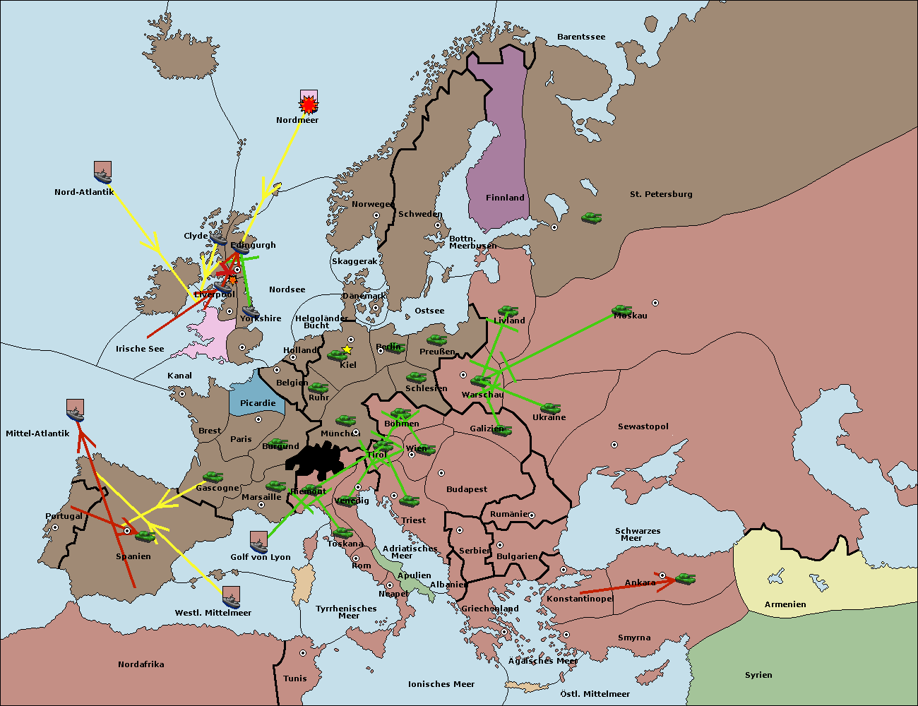• Die Armee in Bulgarien wird zerstörtFlotte in Bulgarien gebaut.
