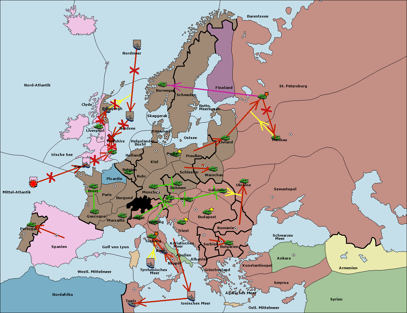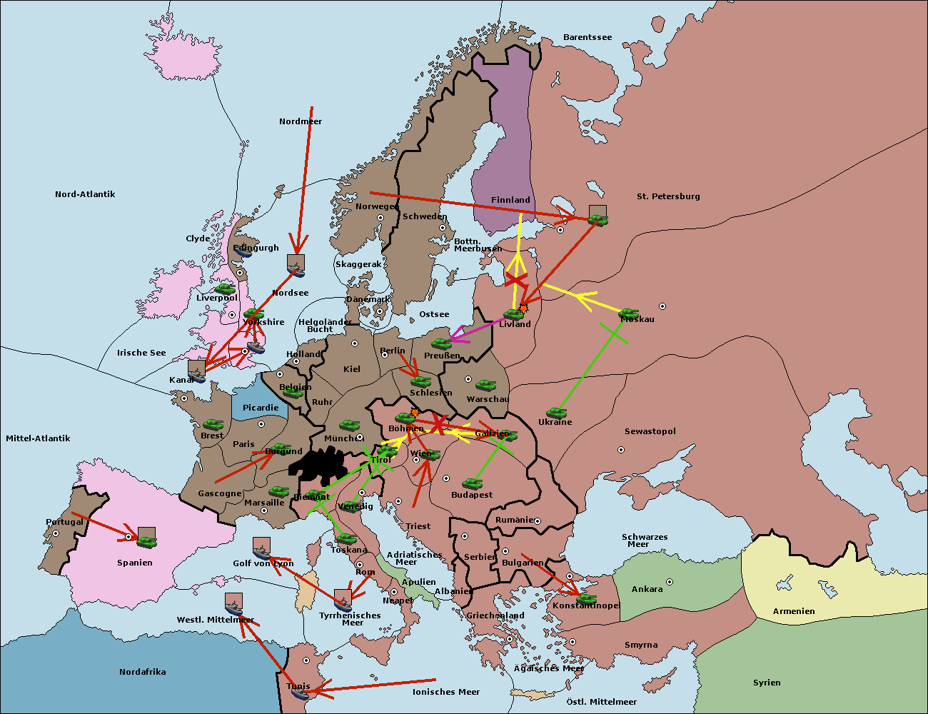 • Die Flotte in St. Petersburg (Nordküste) move nach Norwegen.