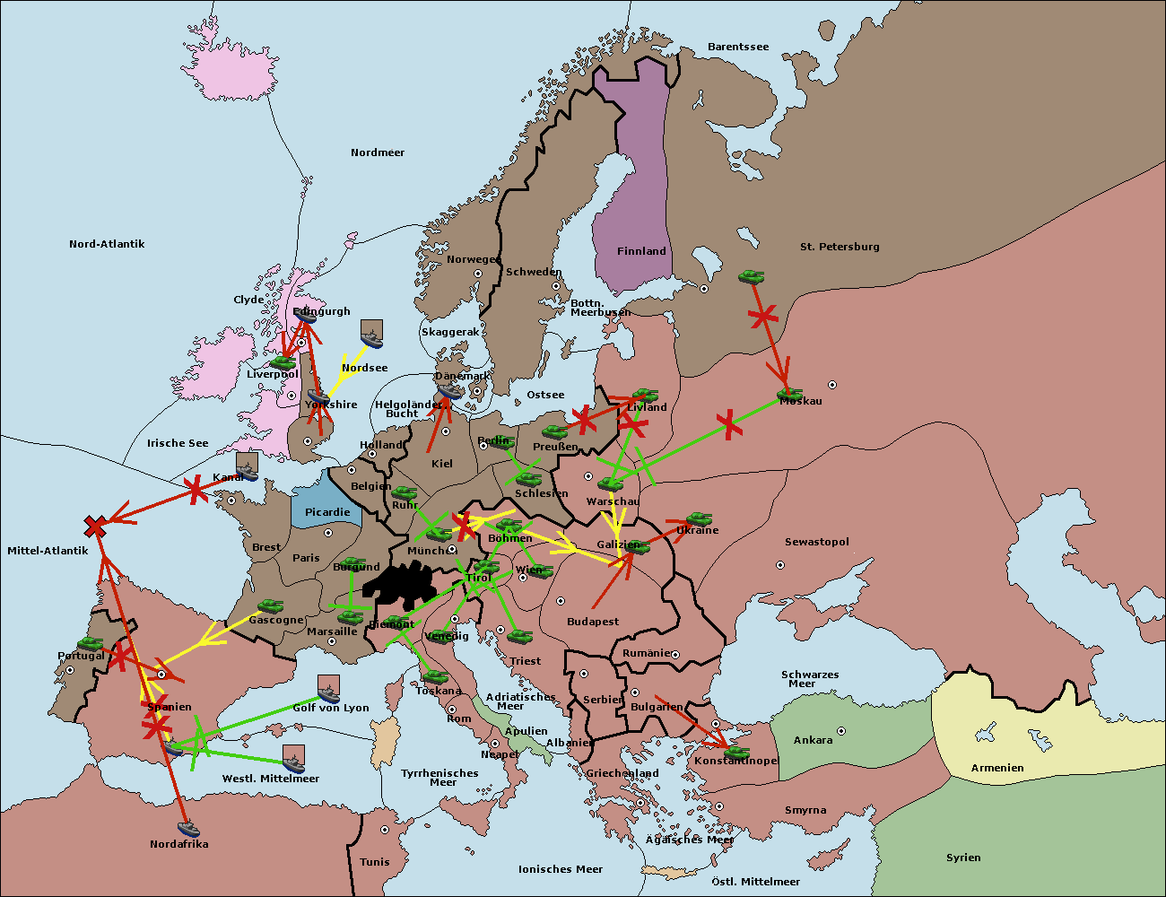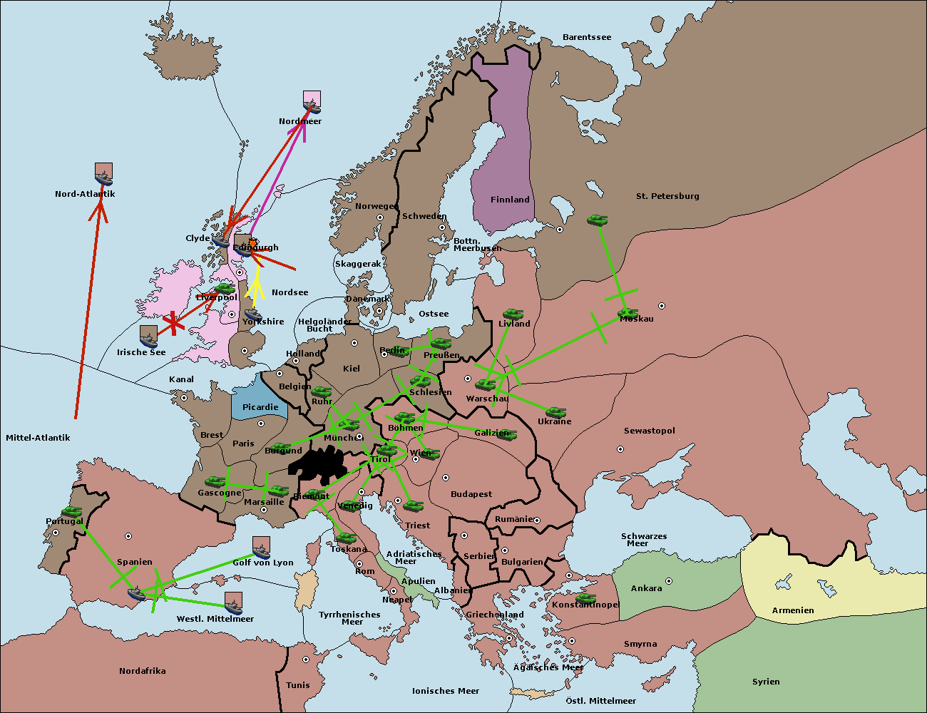• Die Flotte in Spanien (Südküste) support move nach Mittel-Atlantik von Nord Afrika. (gescheitert)