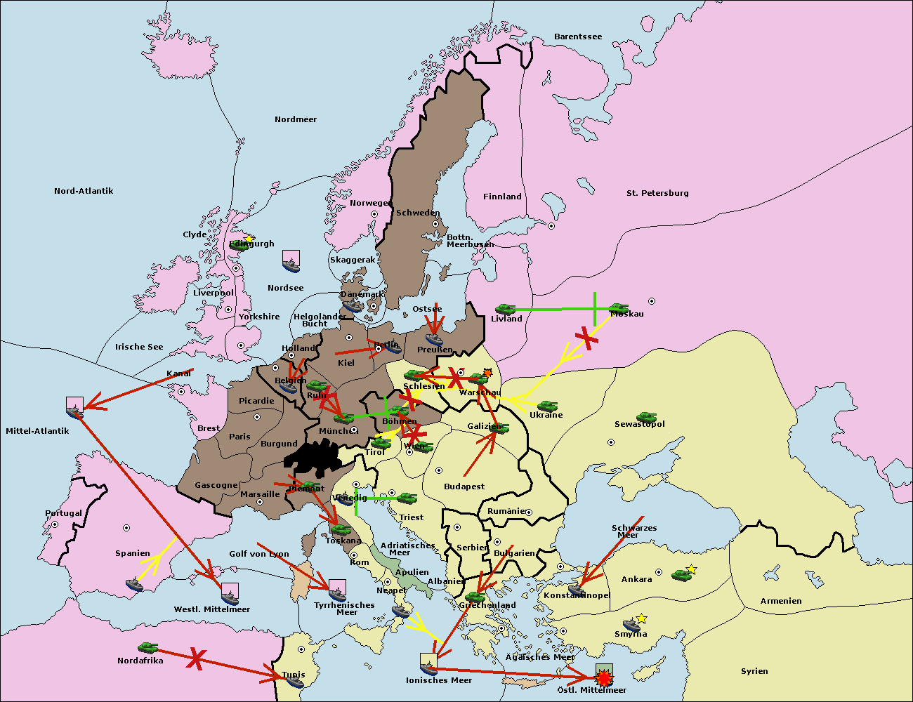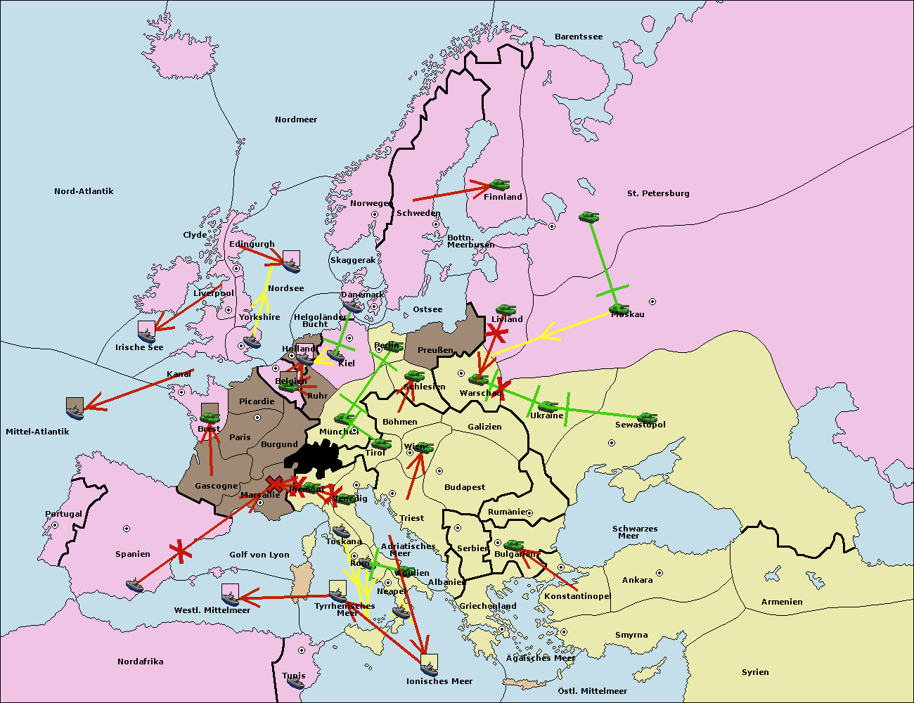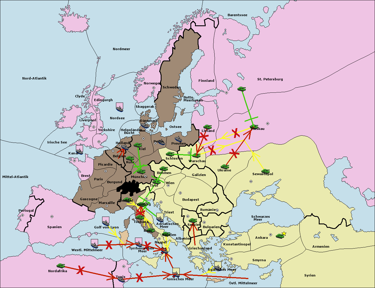 • Die Flotte in Holland support move nach Belgien von Burgund. (gescheitert)