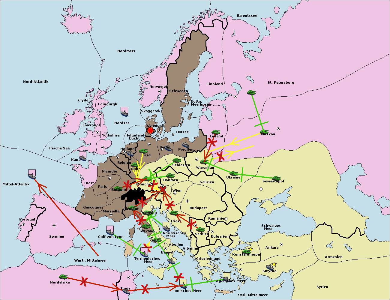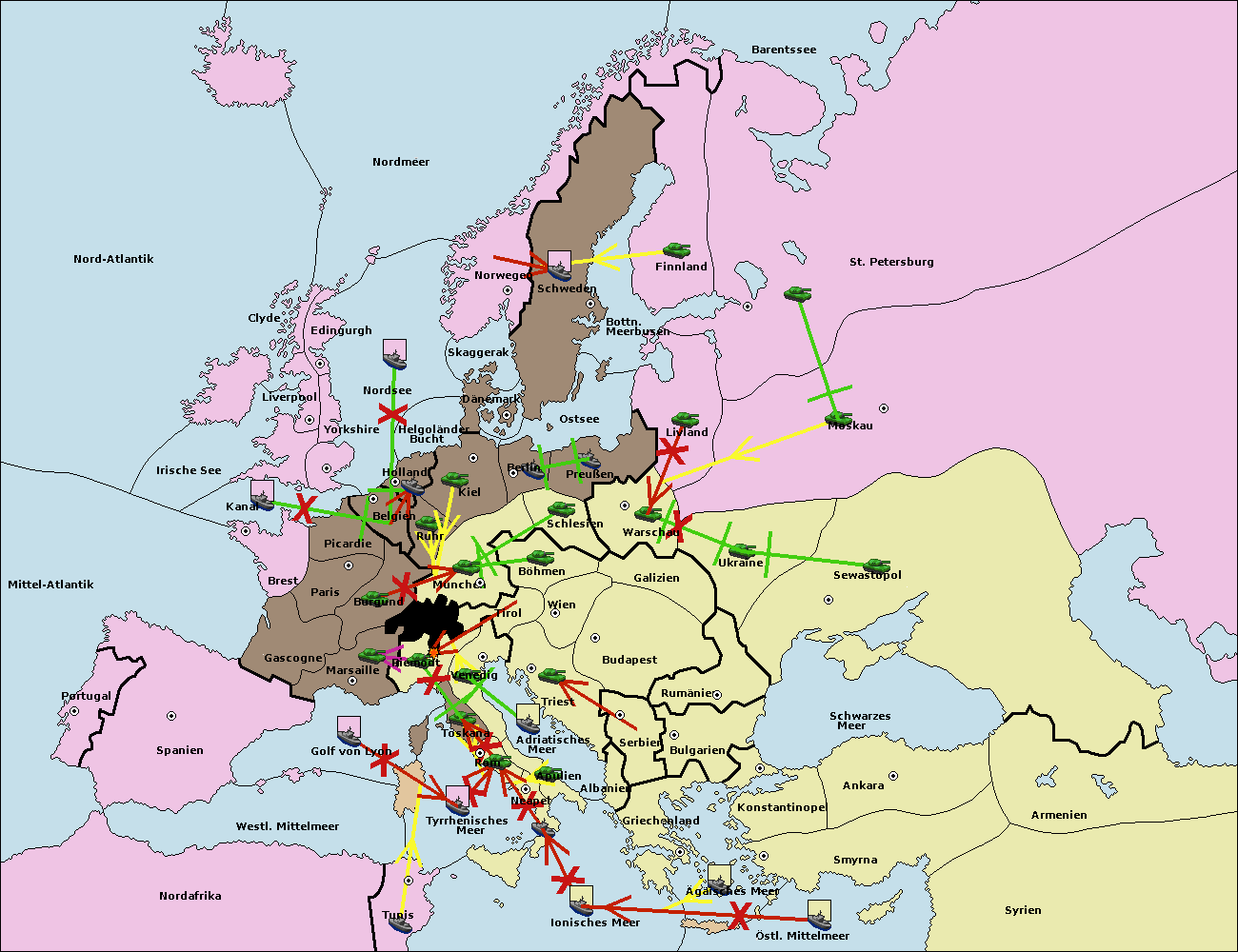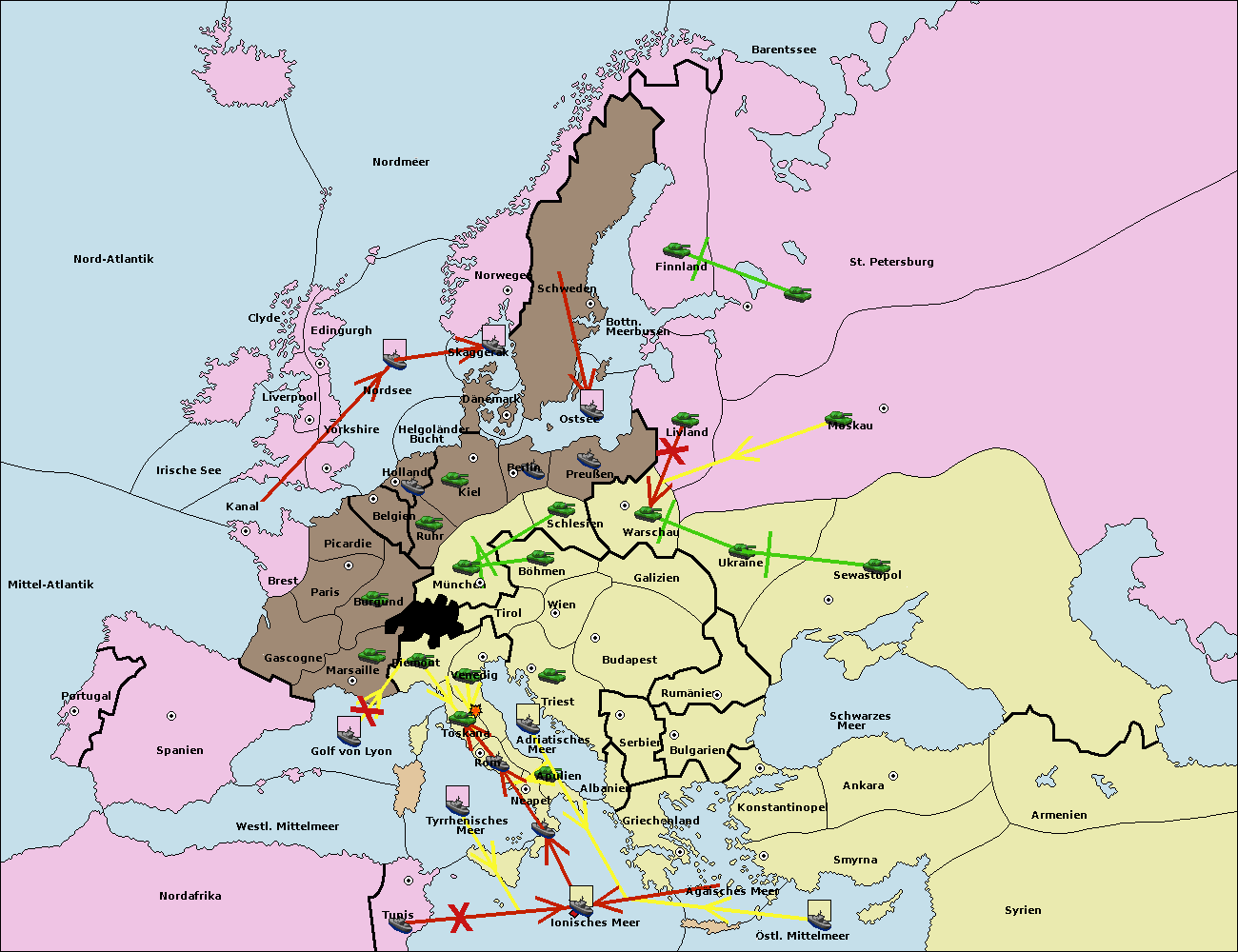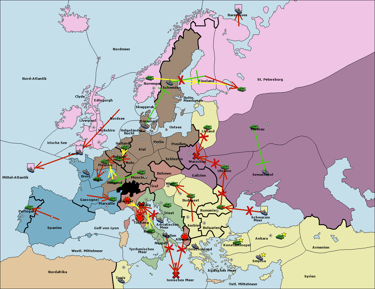 • Die Flotte in Holland support move nach Belgien von Burgund. (gescheitert)