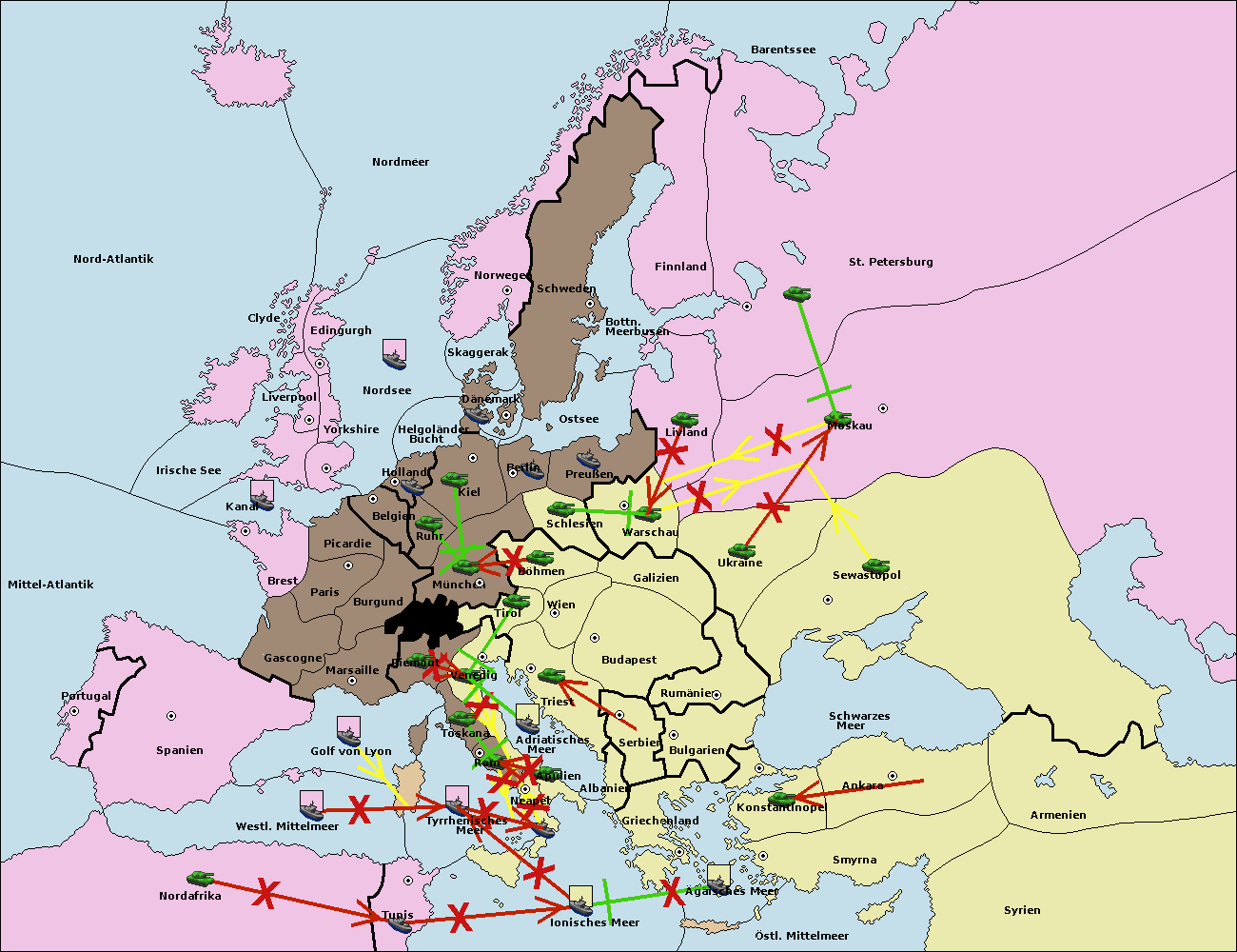 • Die Armee in München support hold nach Burgund. (gescheitert)