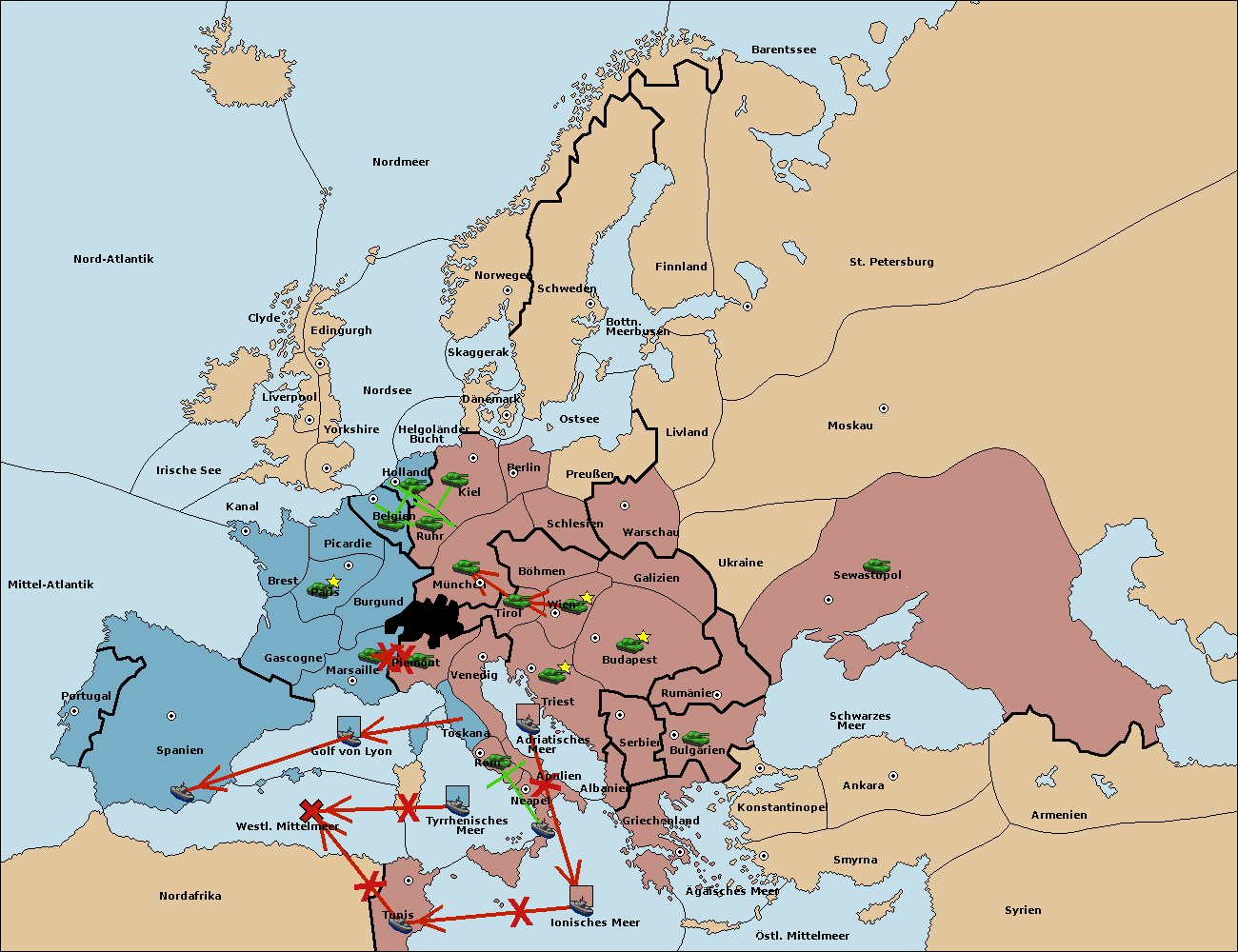 • Die Flotte in Tunis move nach westl. Mittelmeer. (gescheitert)