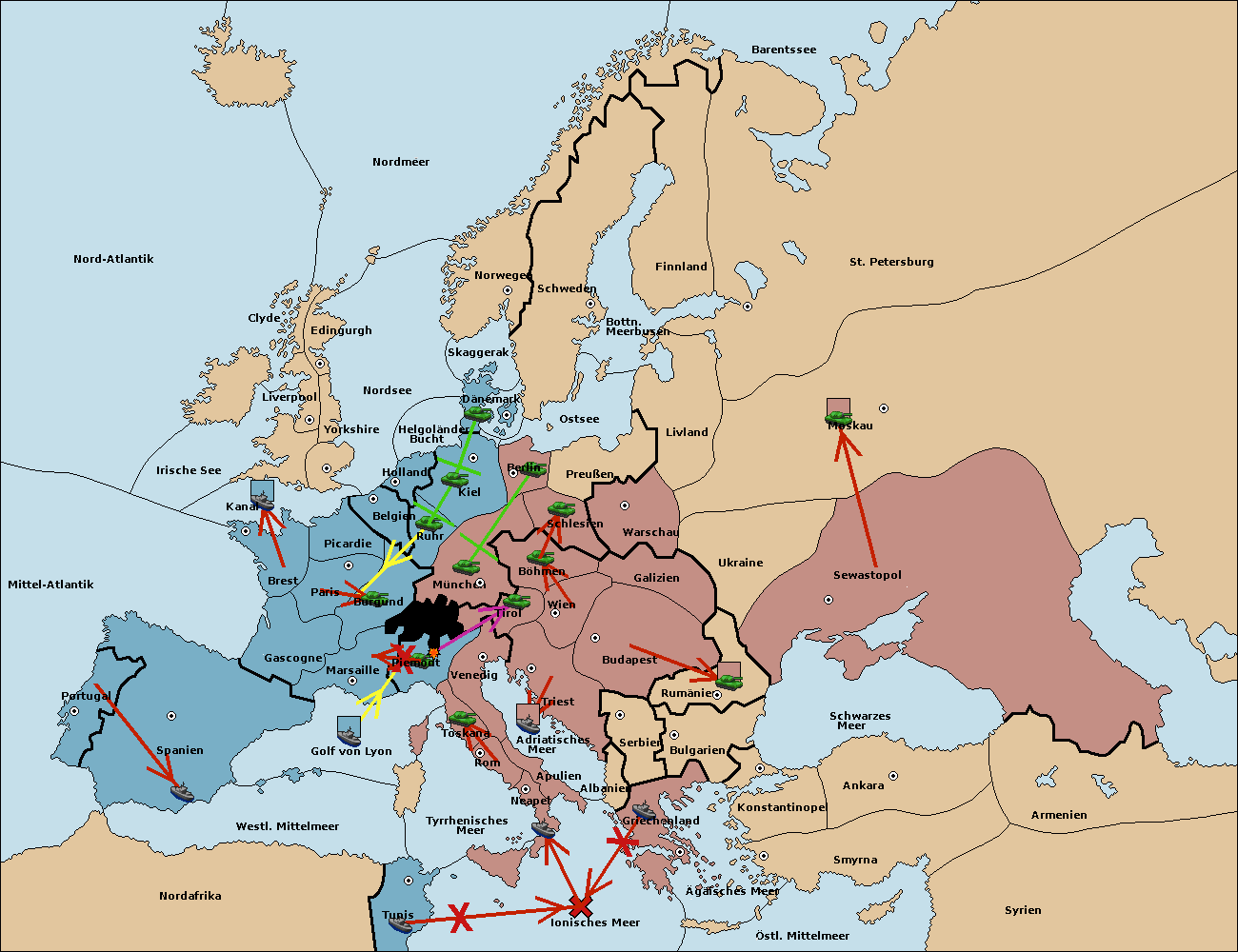 • Die Armee in Marseille move nach Toskana via Concoy. (gescheitert)