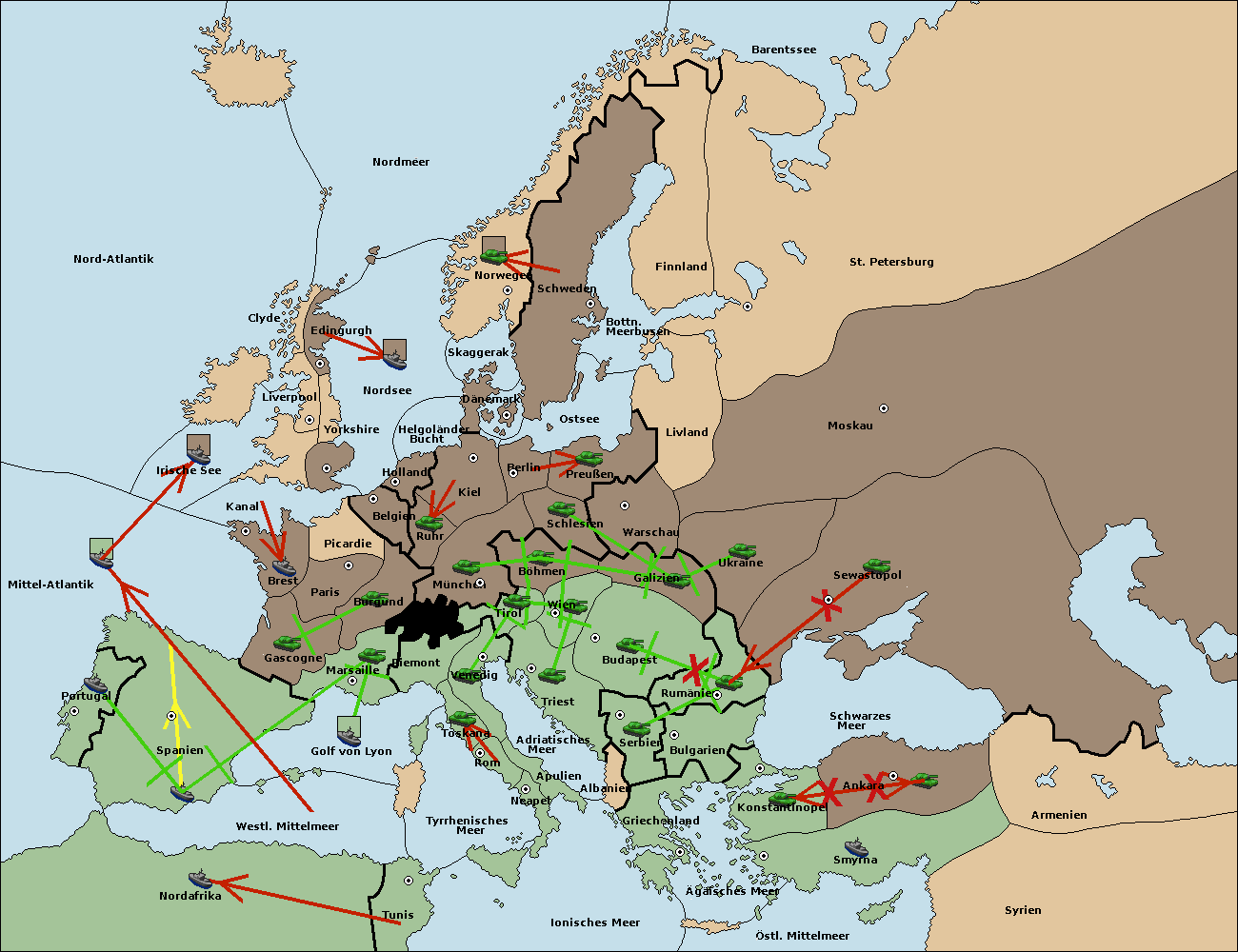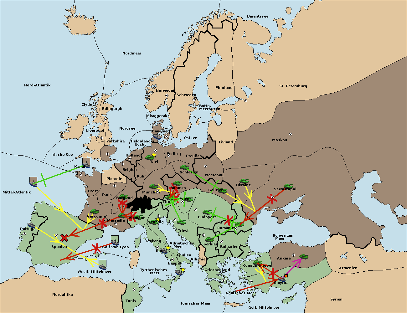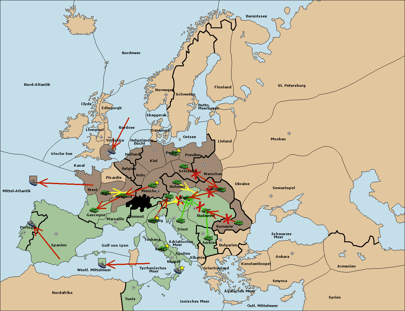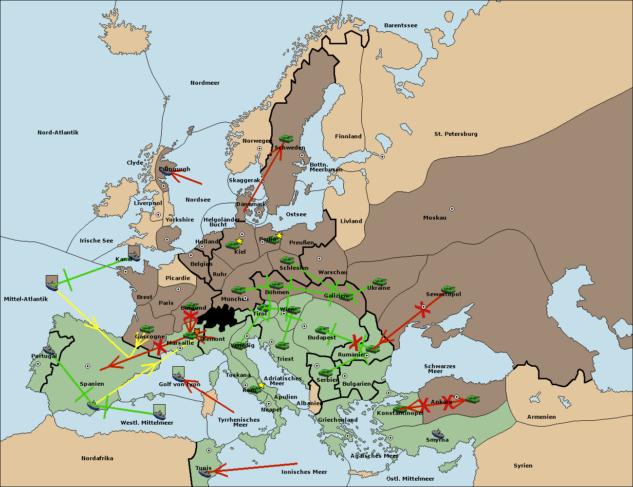• Die Flotte in Spanien (Südküste) support move nach Mittel-Atlantik von westl. Mittelmeer.