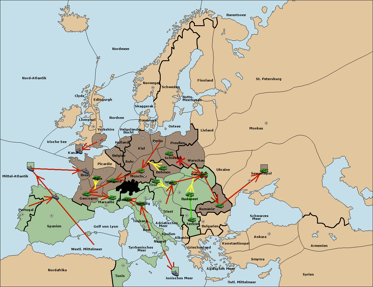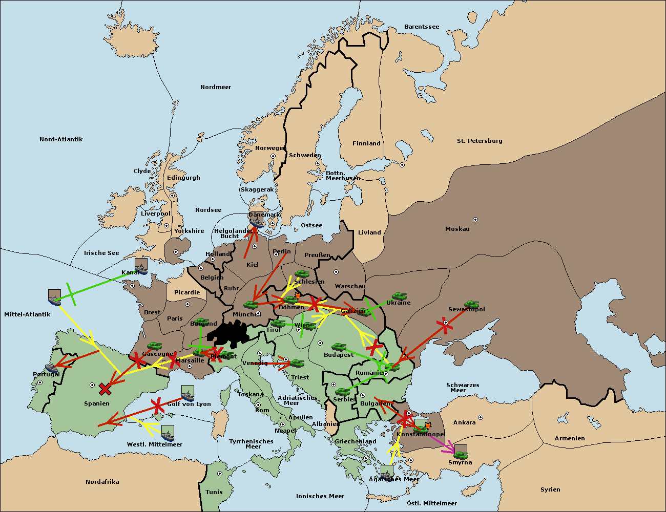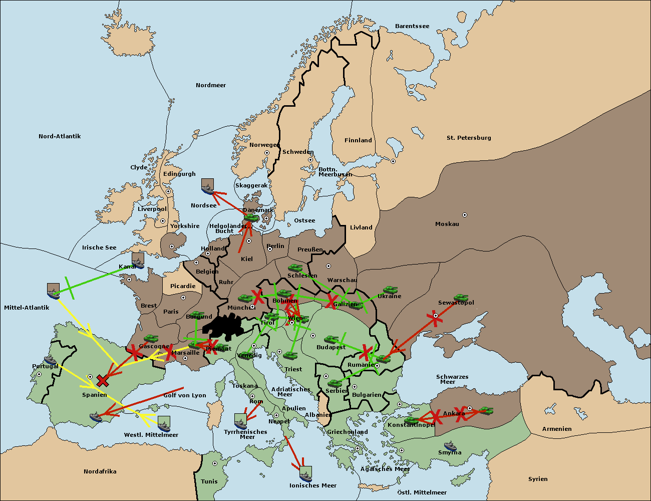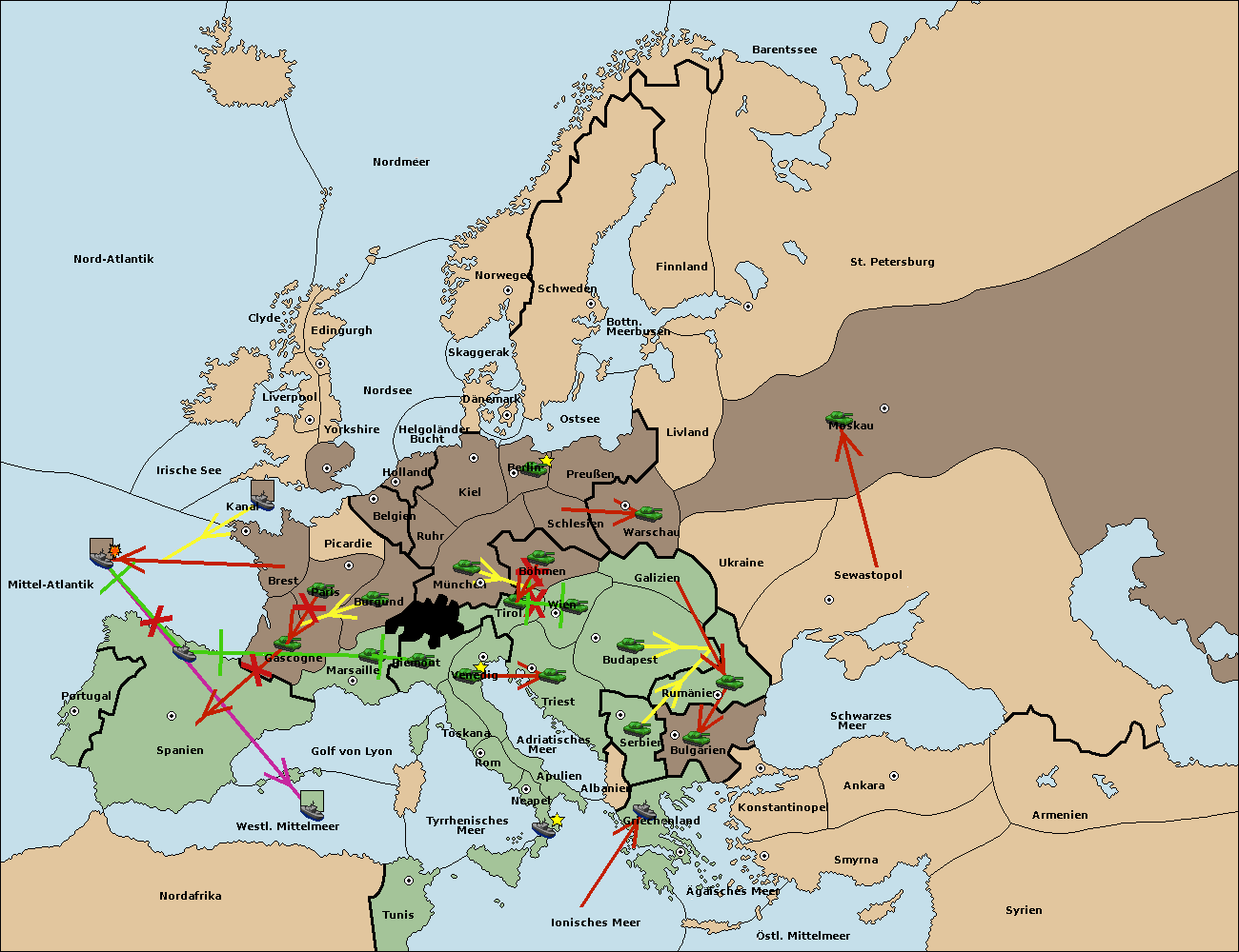 • Die Flotte in Spanien (Südküste) support move nach Mittel-Atlantik von westl. Mittelmeer.