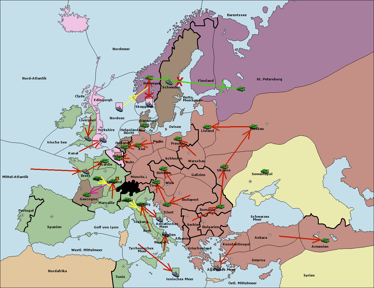 • Die Armee in Norwegen support hold nach St. Petersburg. (gescheitert)