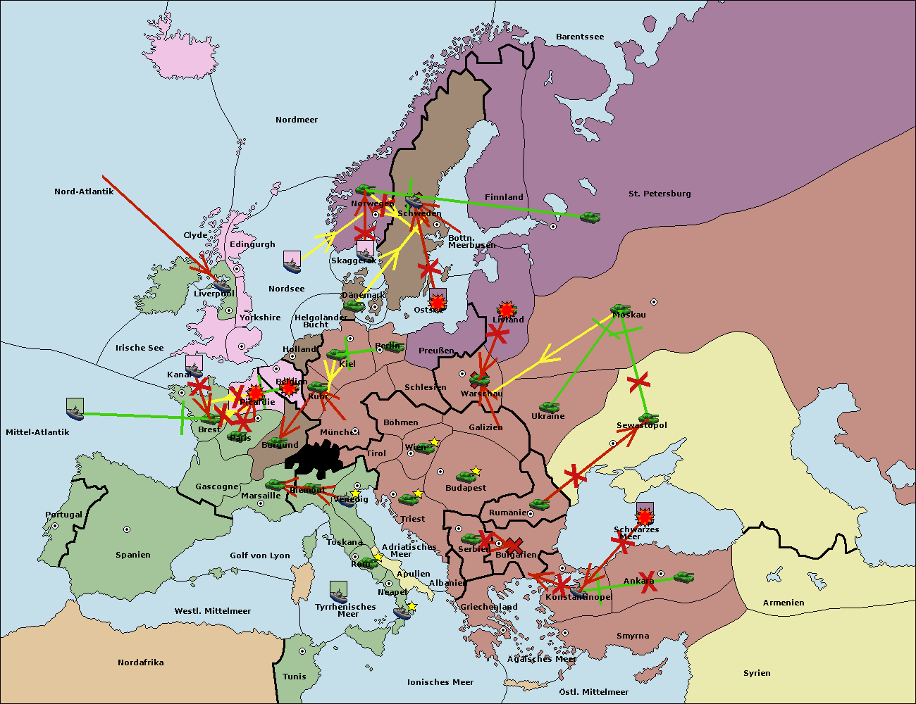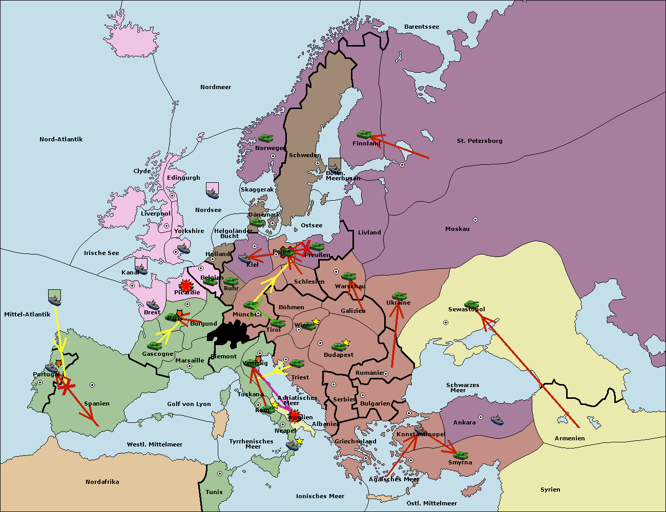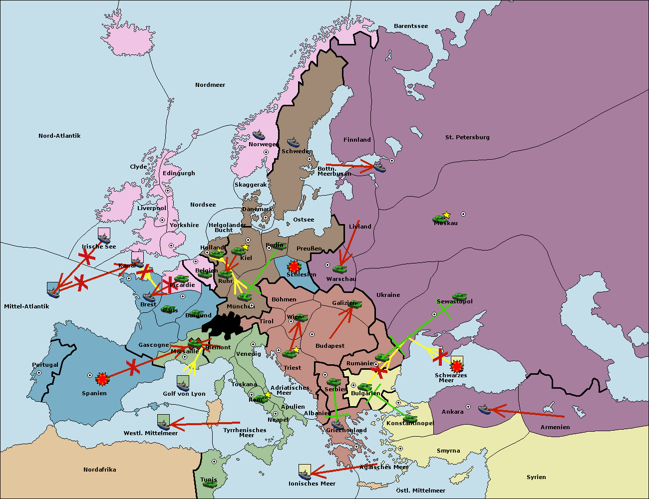 • Die Armee in Bulgarien wird zerstörtFlotte in Bulgarien gebaut.