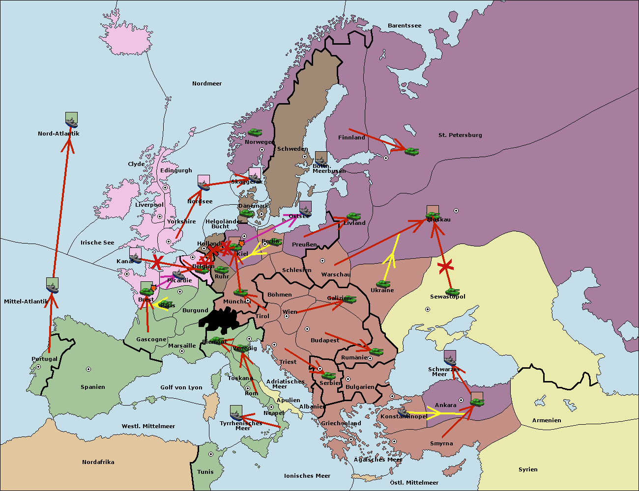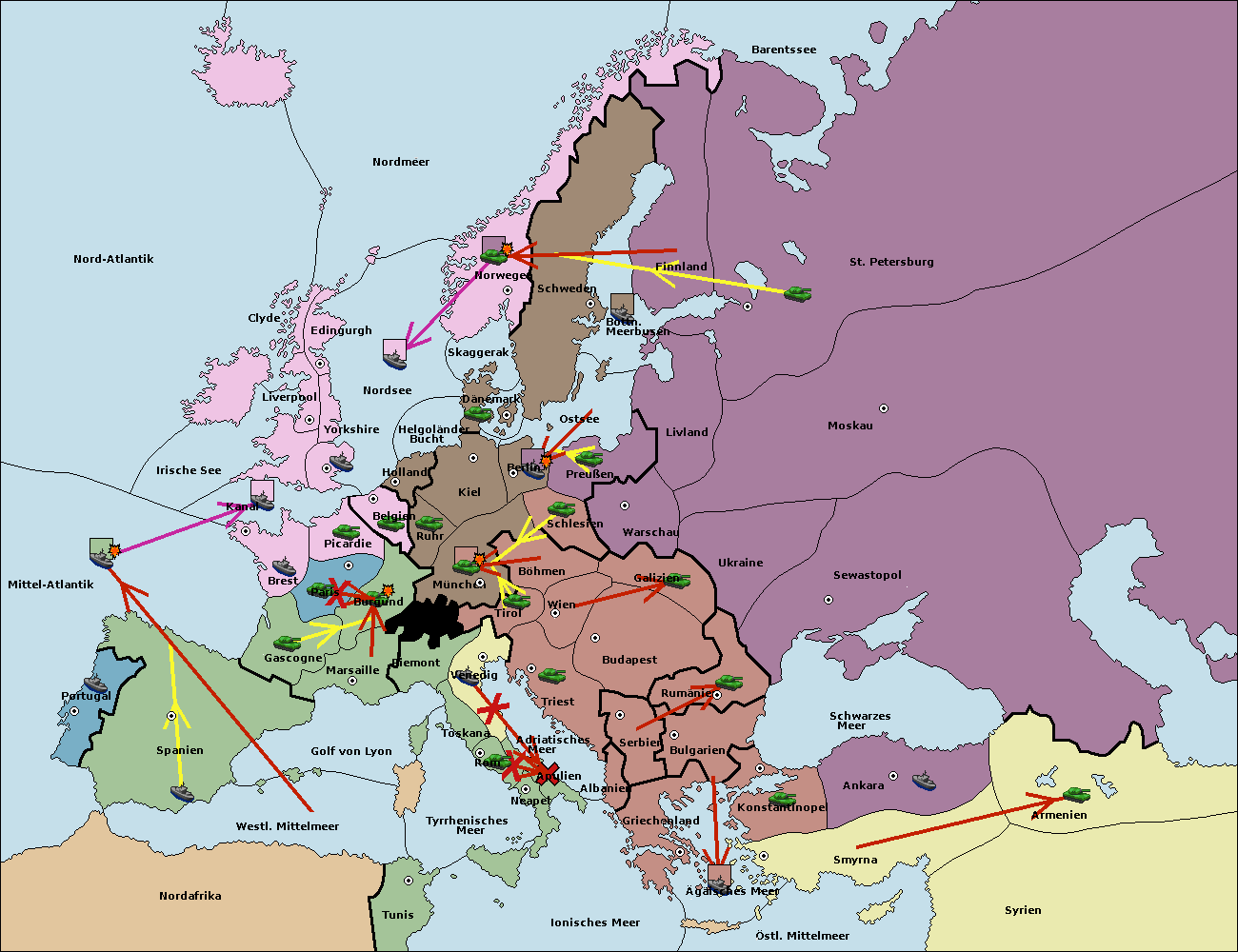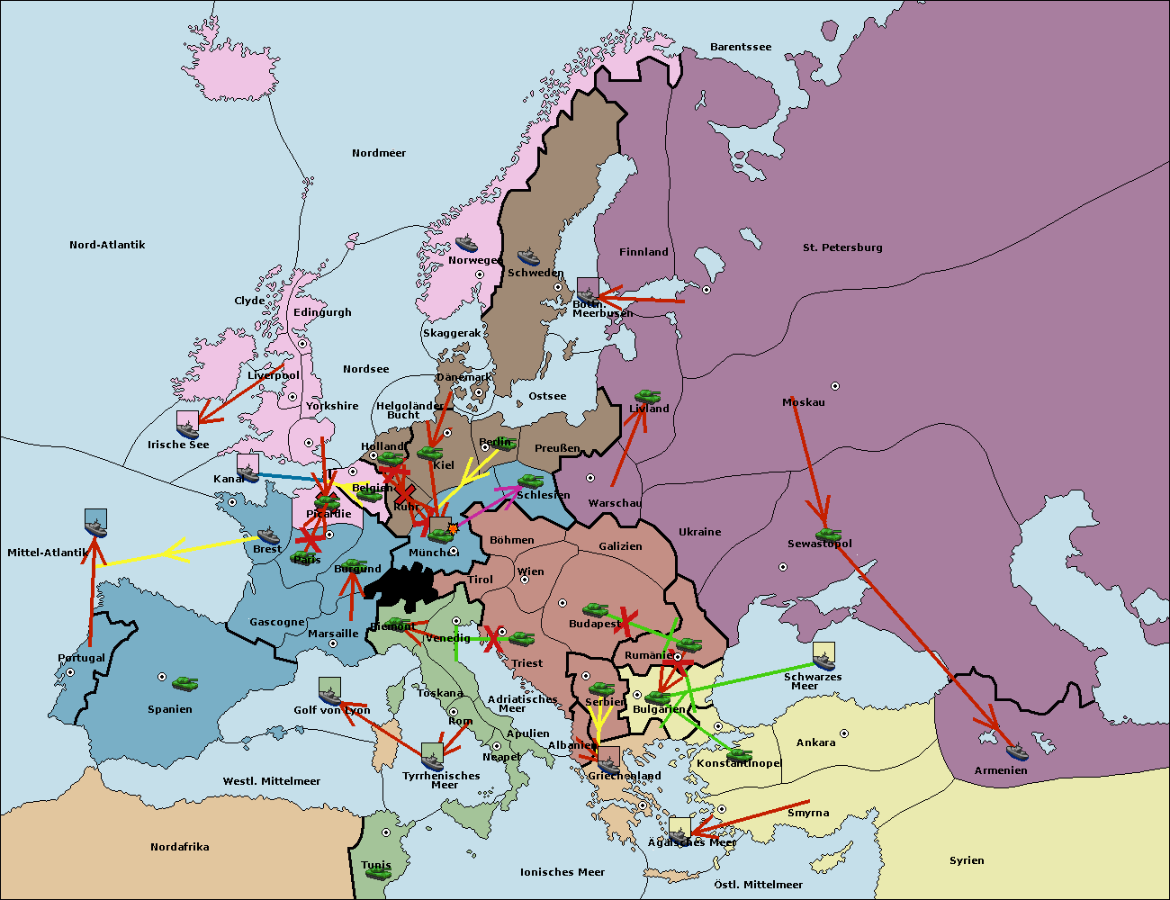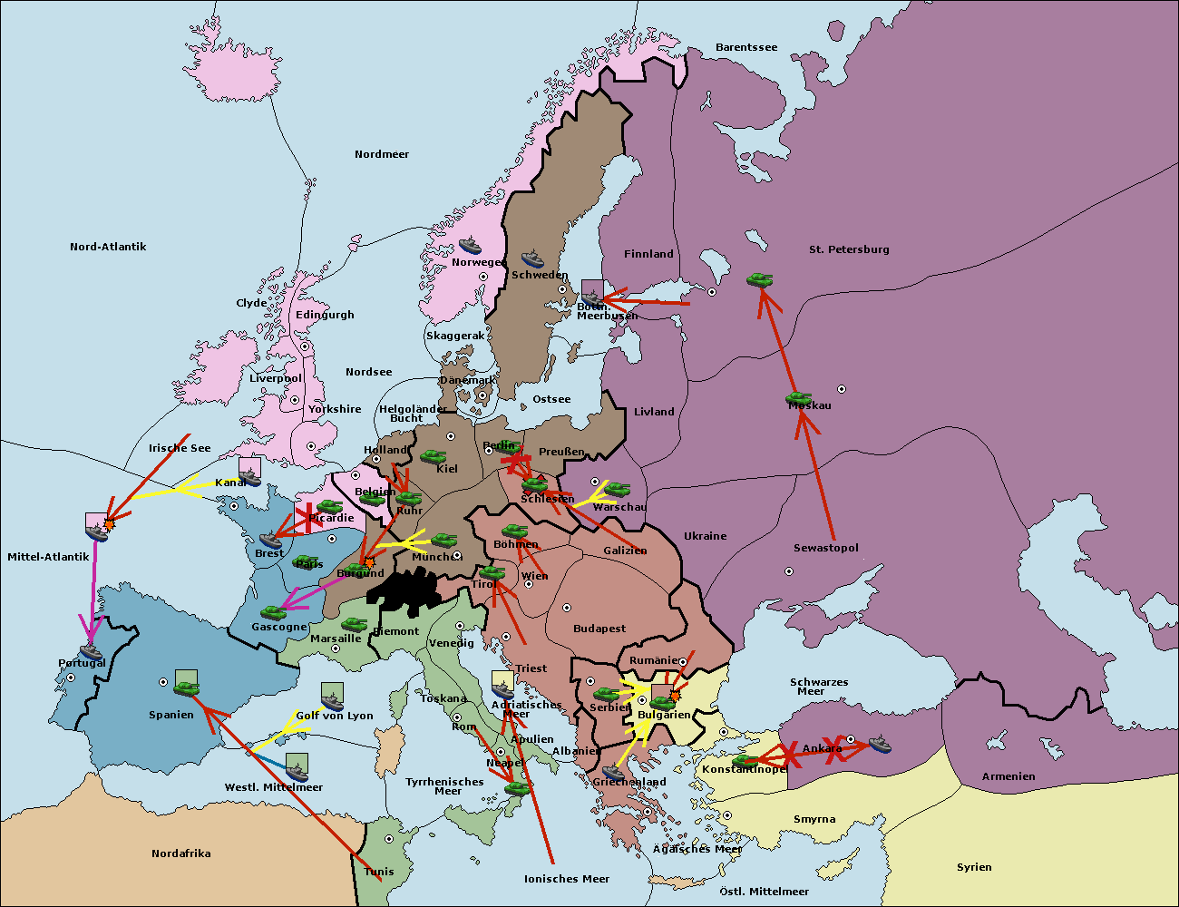 • Die Armee in Bulgarien wird zerstörtFlotte in Bulgarien gebaut.