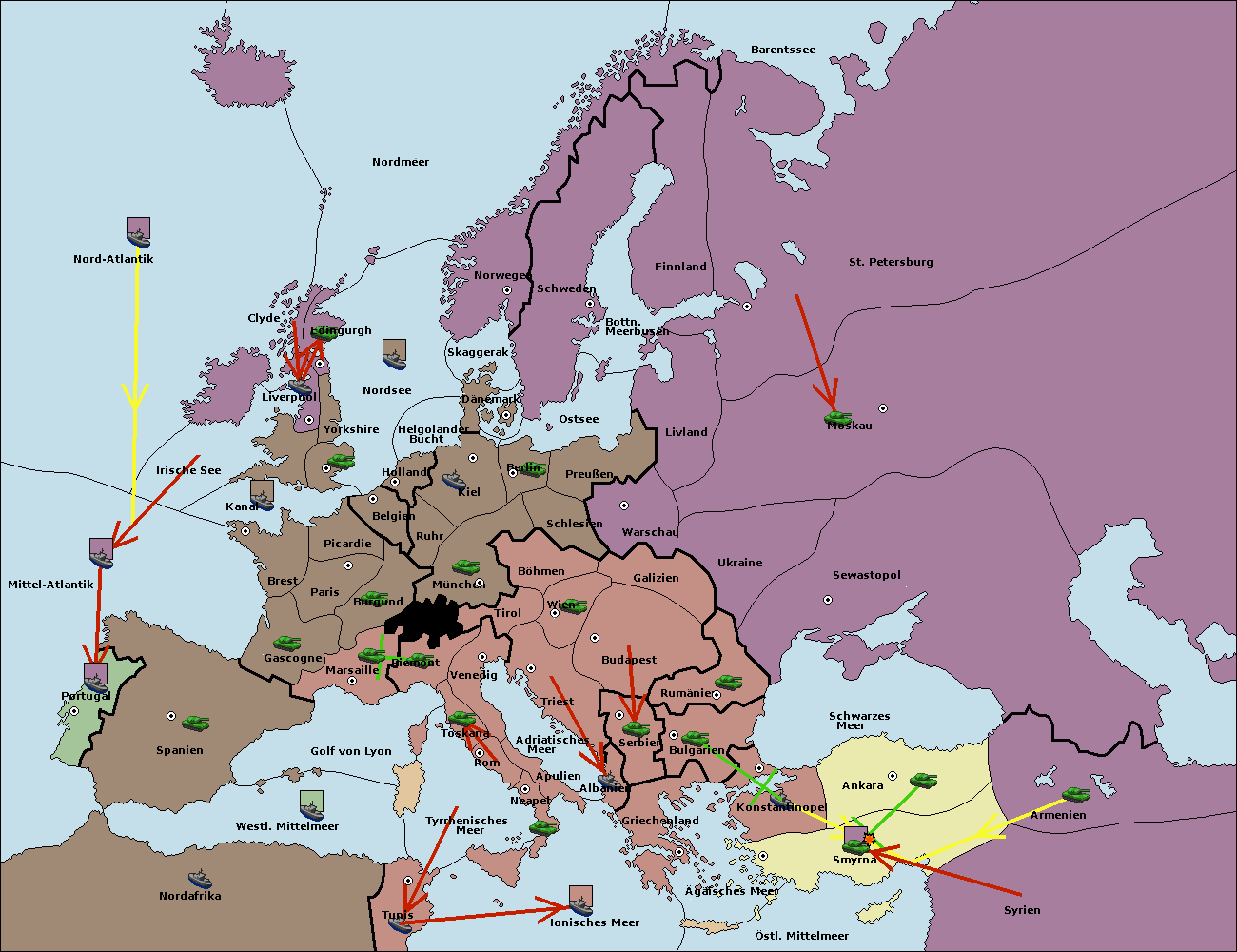 • Die Flotte in Tyrrhenisches Meer support hold nach westl. Mittelmeer.