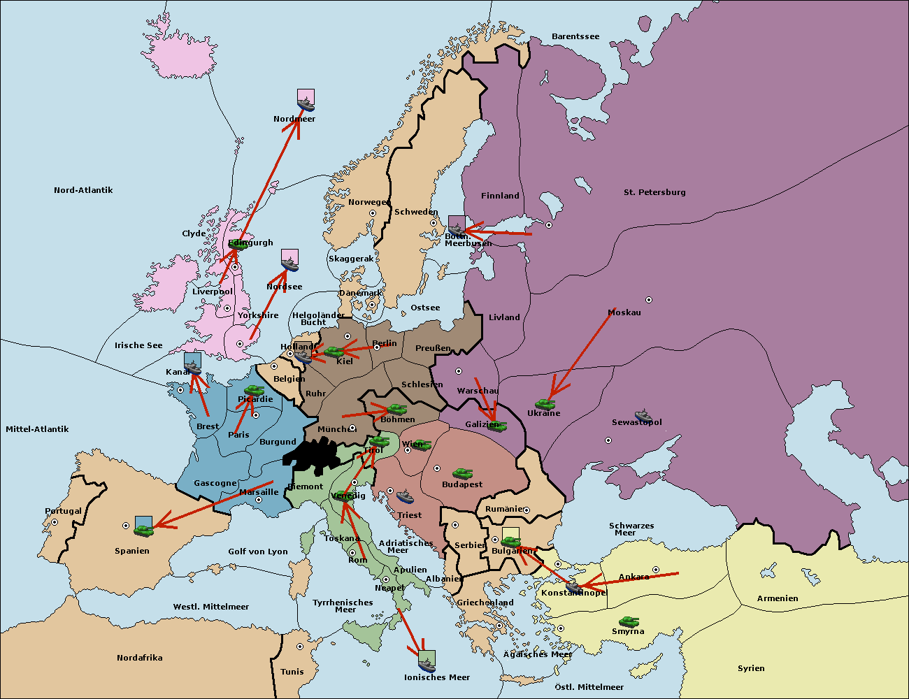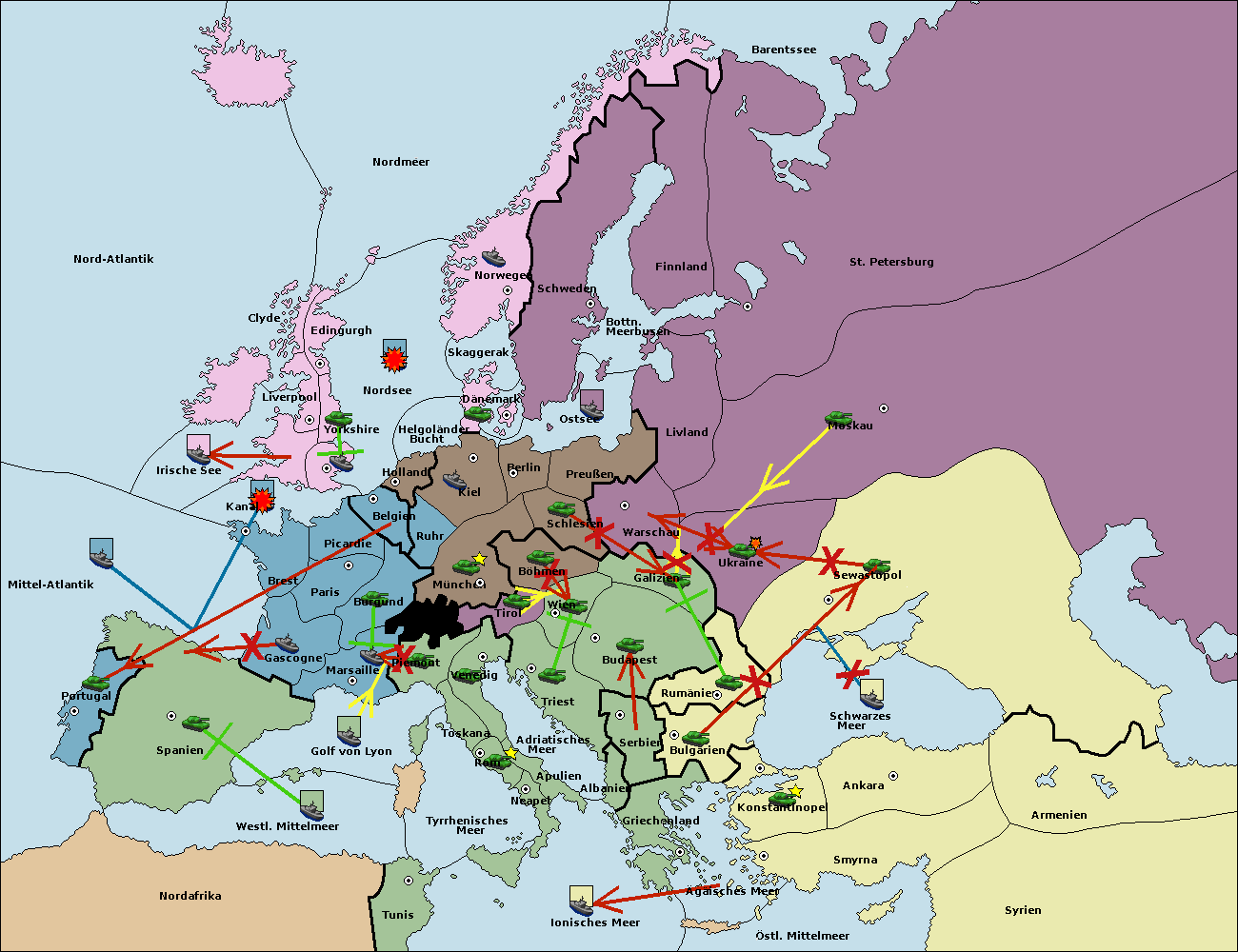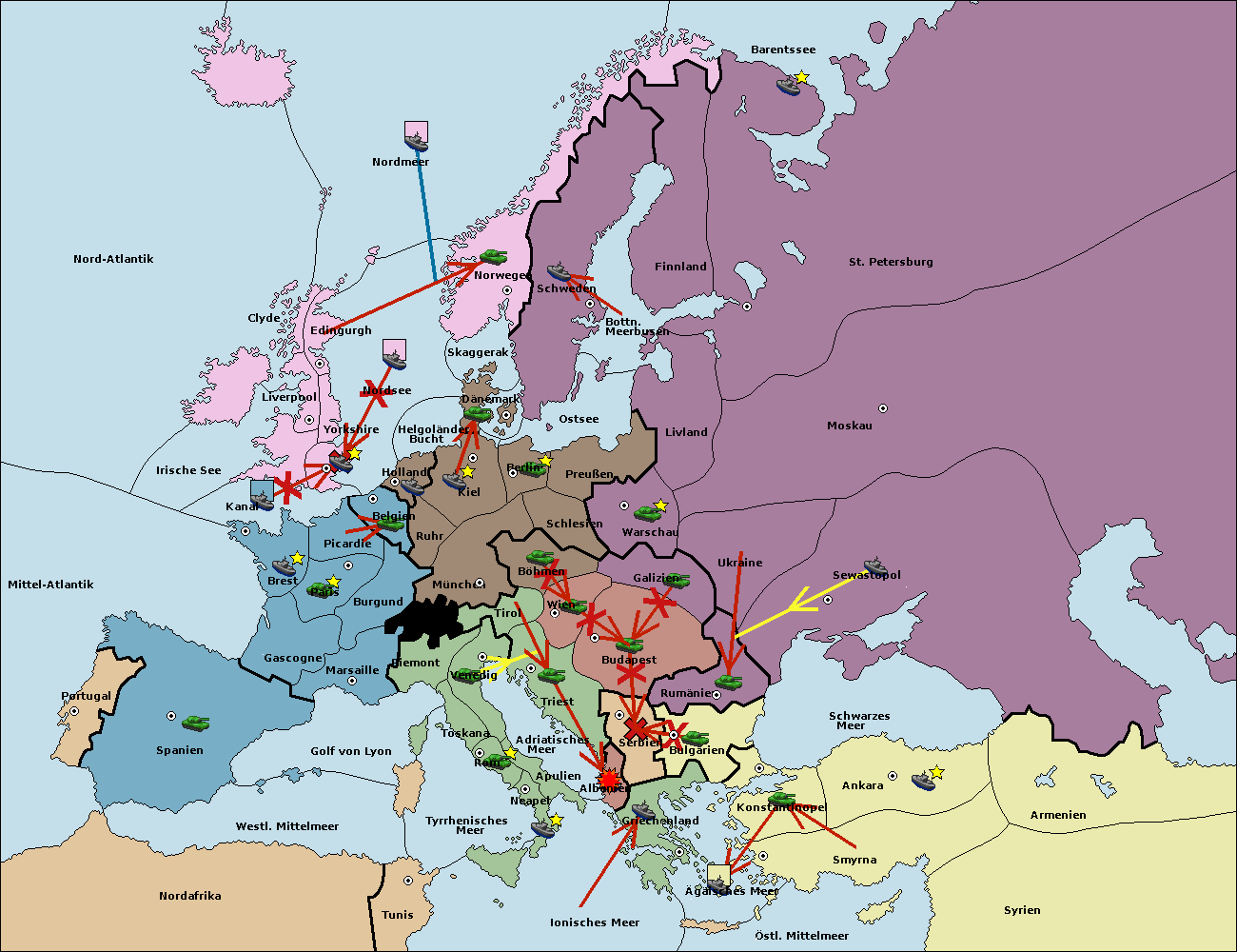 • Die Armee in Konstantinopel support hold nach Bulgarien.