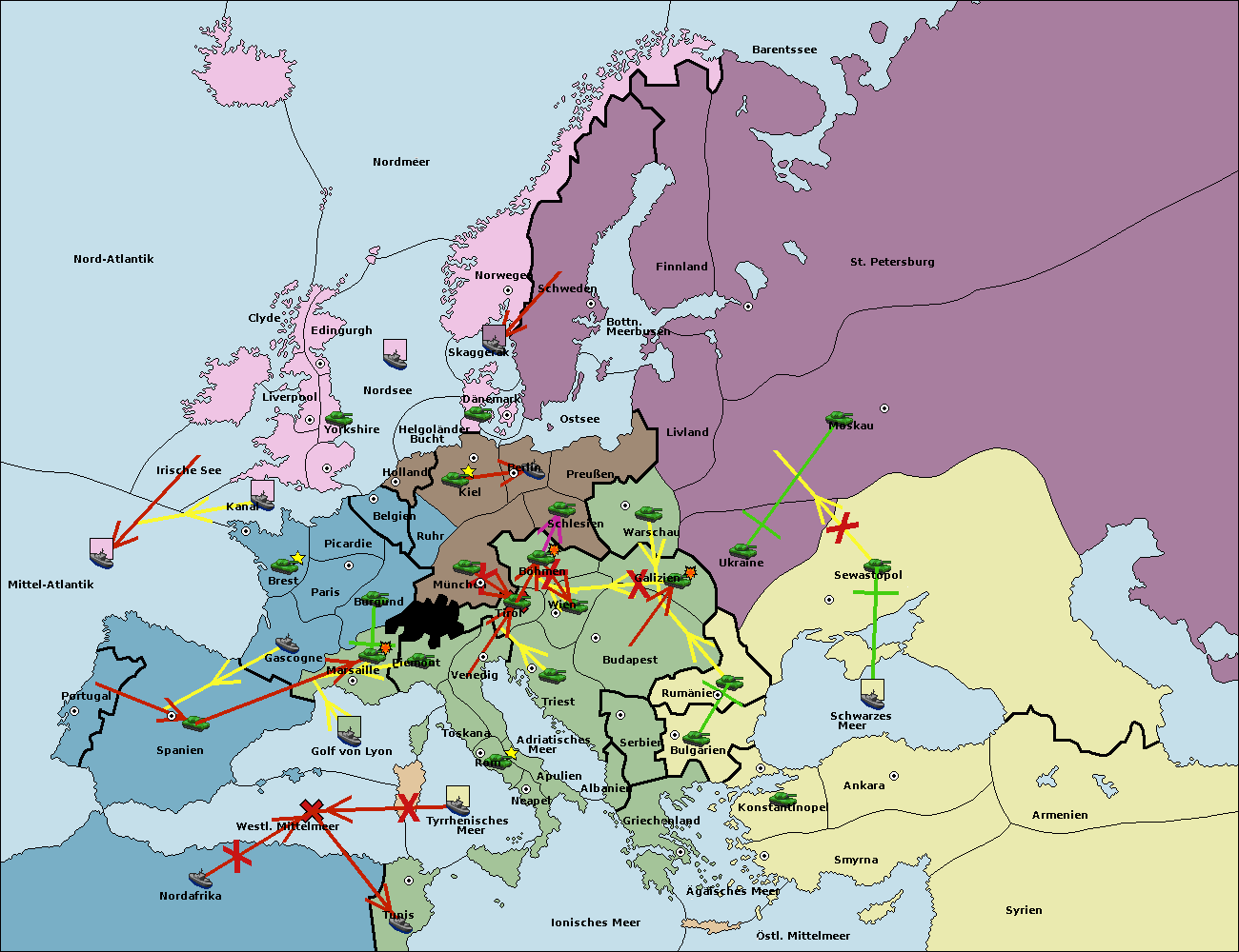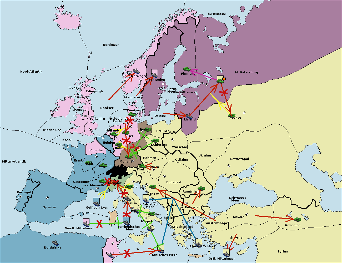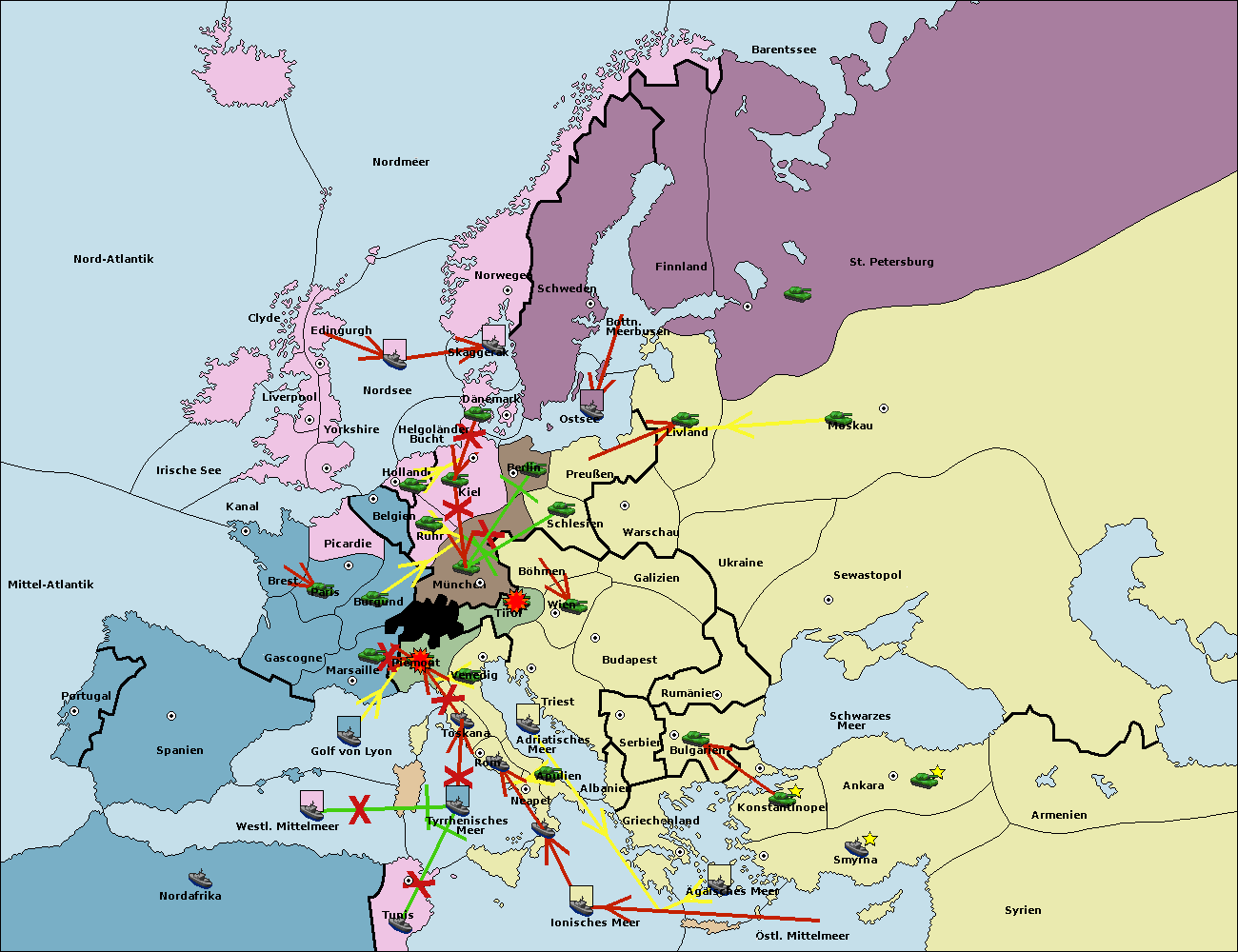 • Die Armee in Triest support move nach Budapest von Serbien. (gescheitert)