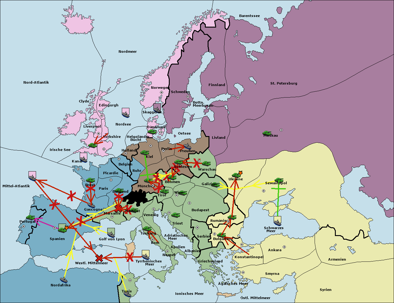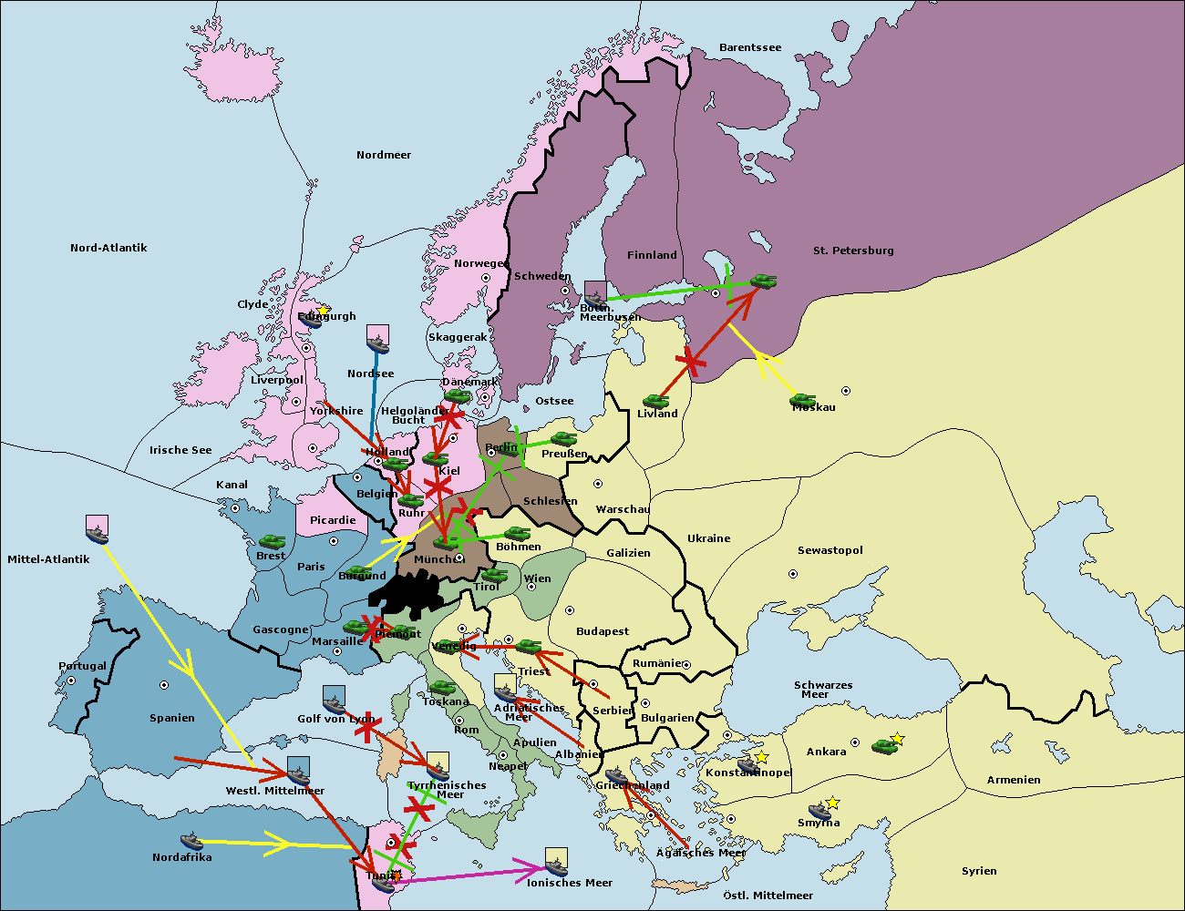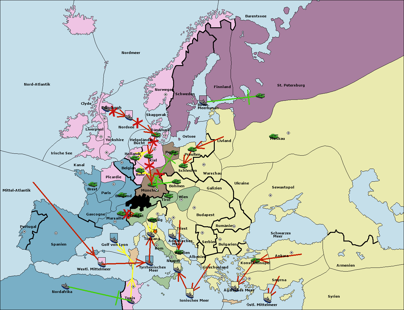 • Die Armee in Triest support move nach Budapest von Serbien. (gescheitert)