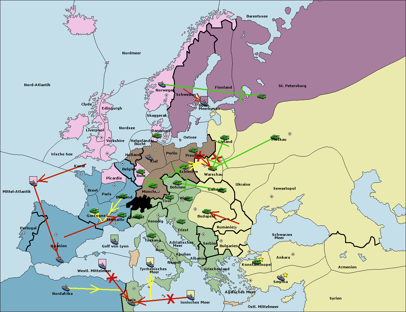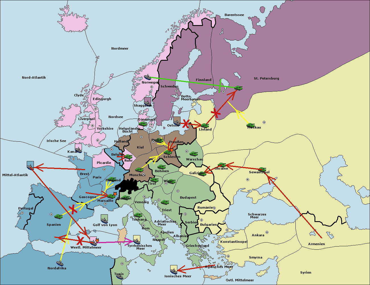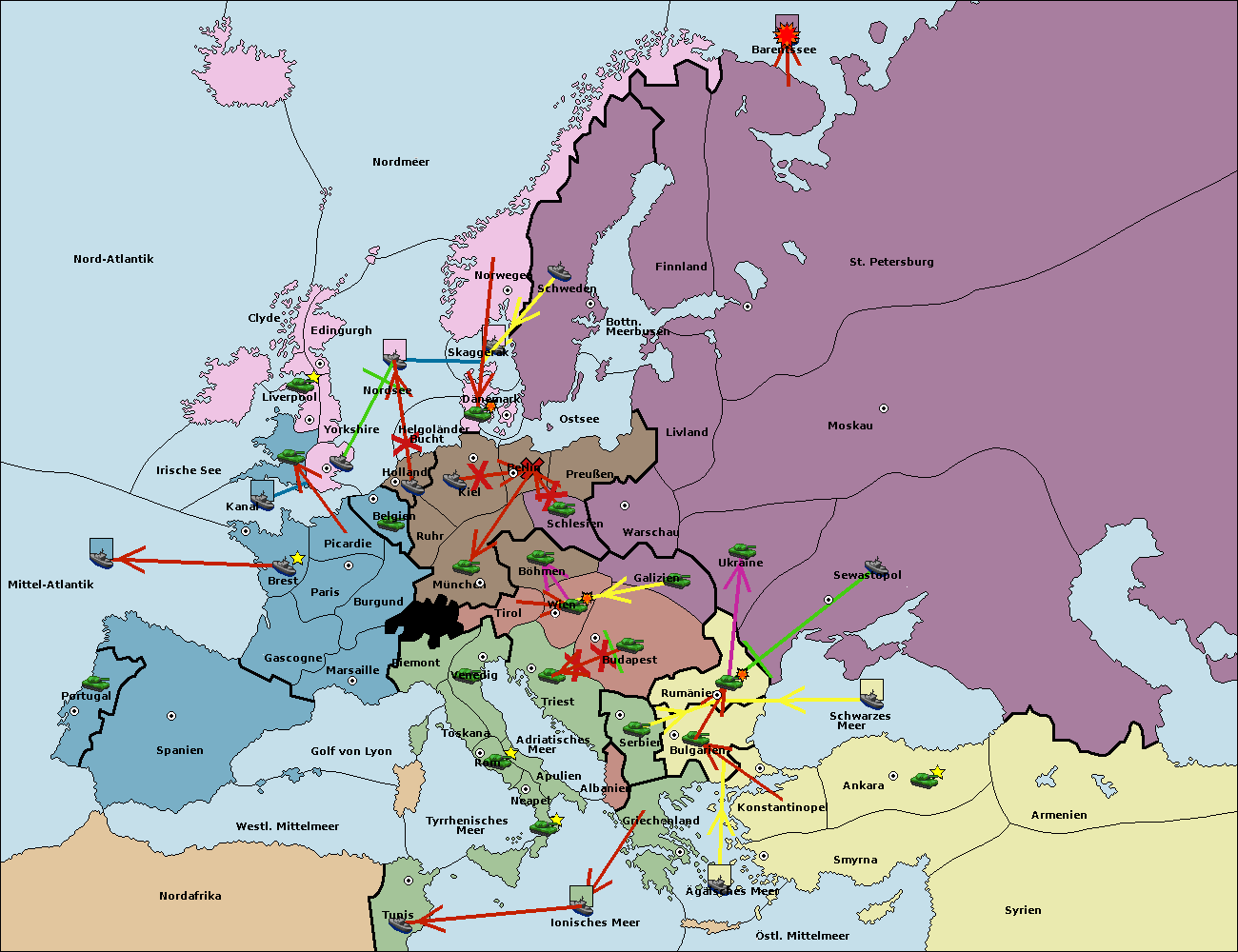 • Die Flotte in St. Petersburg (Nordküste) move nach Barentssee.