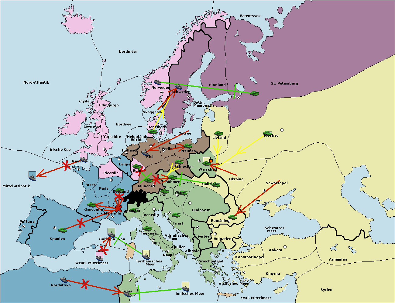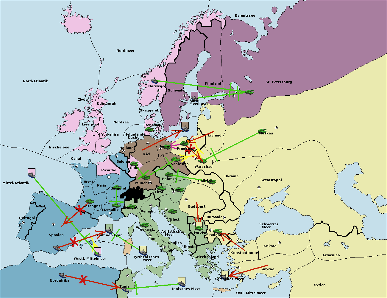 • Die Armee in Warschau support move nach Preußen von Livland.