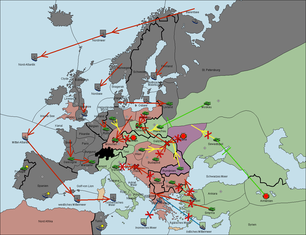 • Die Flotte in Konstantinopel move nach Bulgarien (Südküste). (gescheitert)