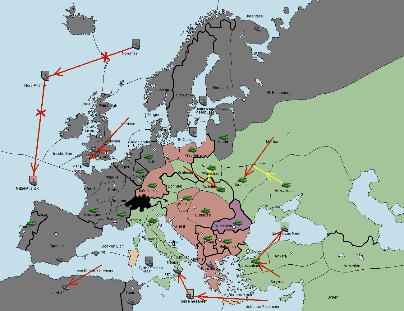 • Die Armee in Sewastopol support move nach Ukraine von Moskau. (gescheitert)