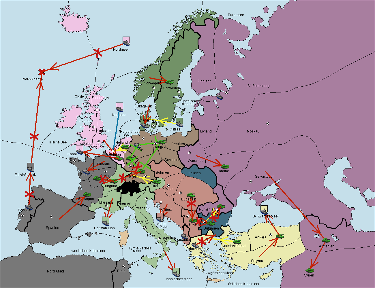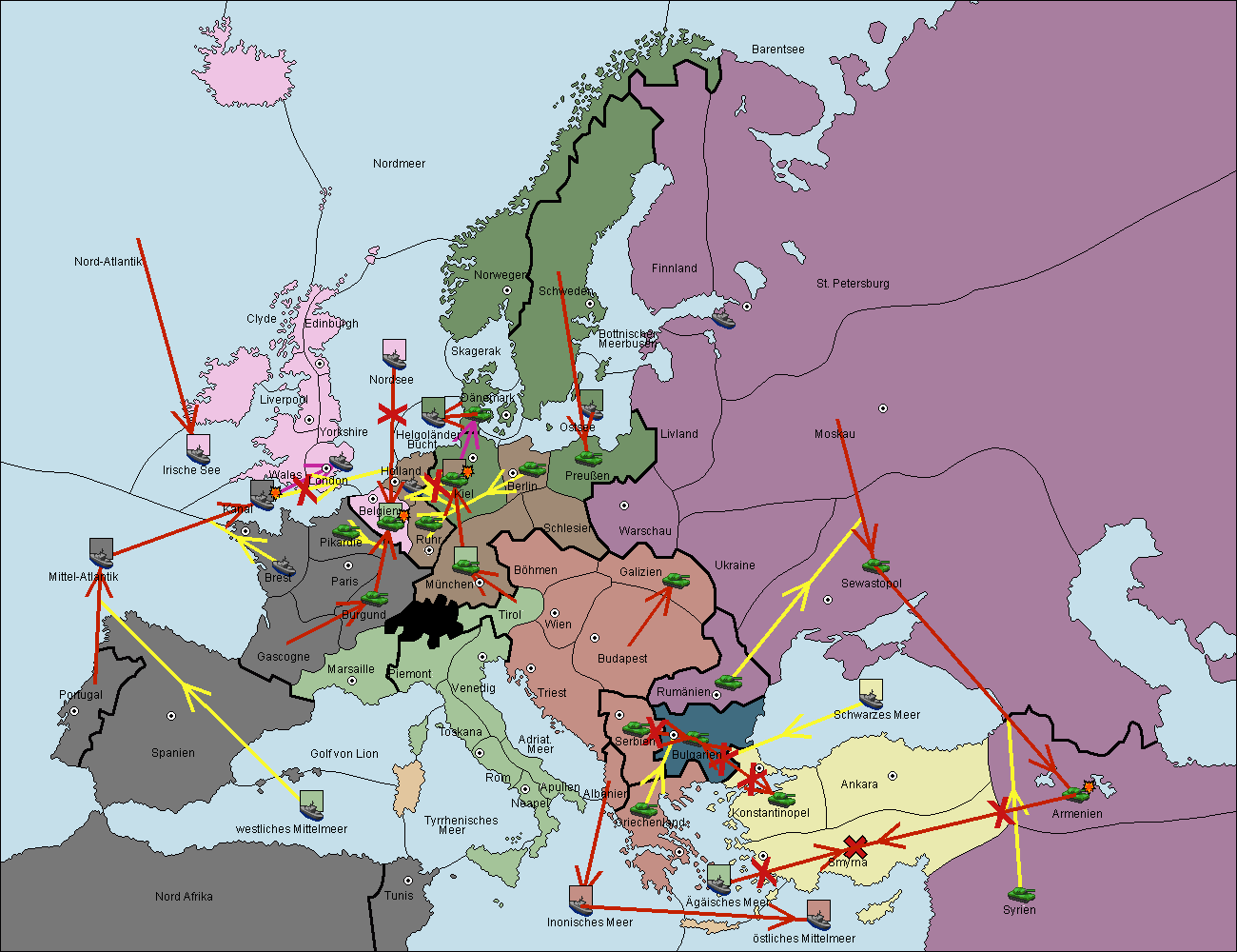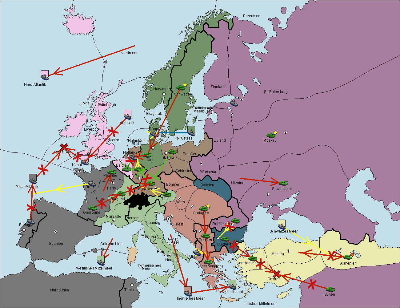 • Die Armee in Smyrna move nach Albanien via Concoy. (gescheitert)