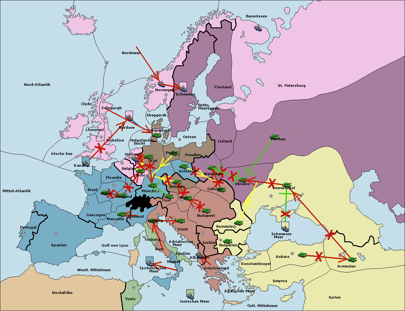 • Die Armee in Kiel support move nach München von Berlin.