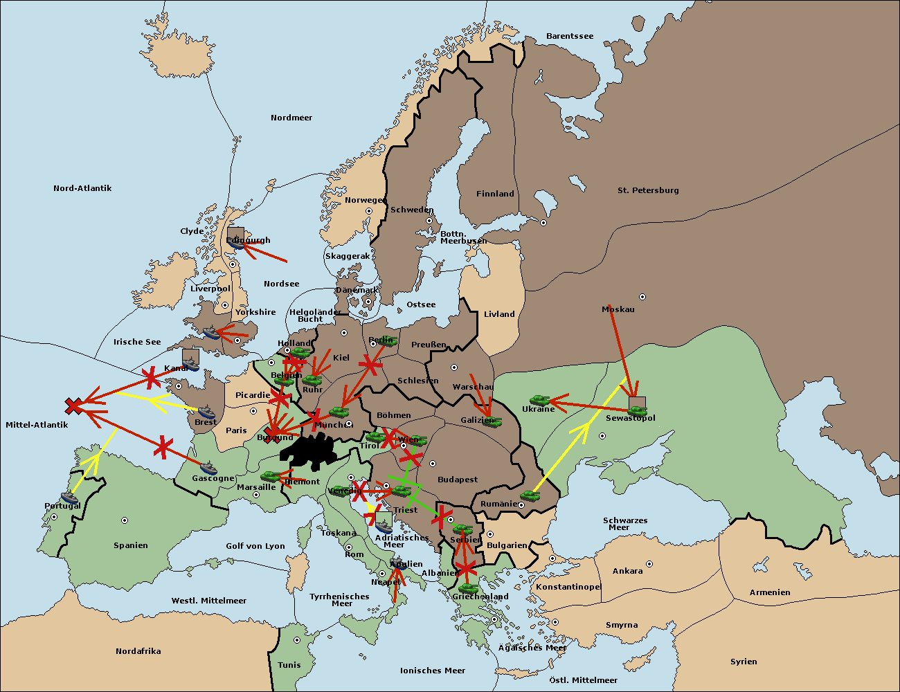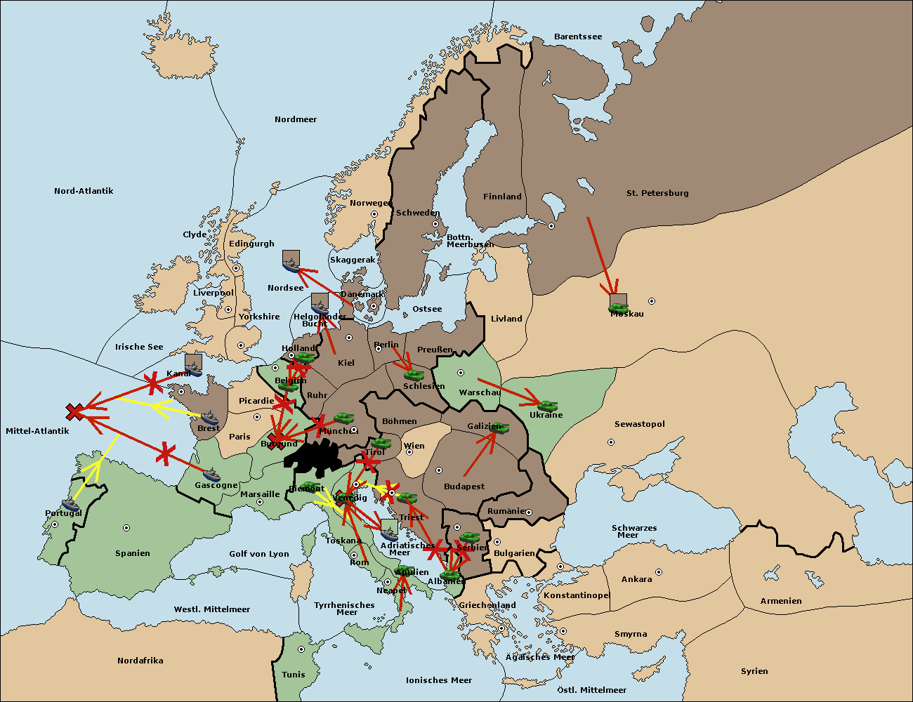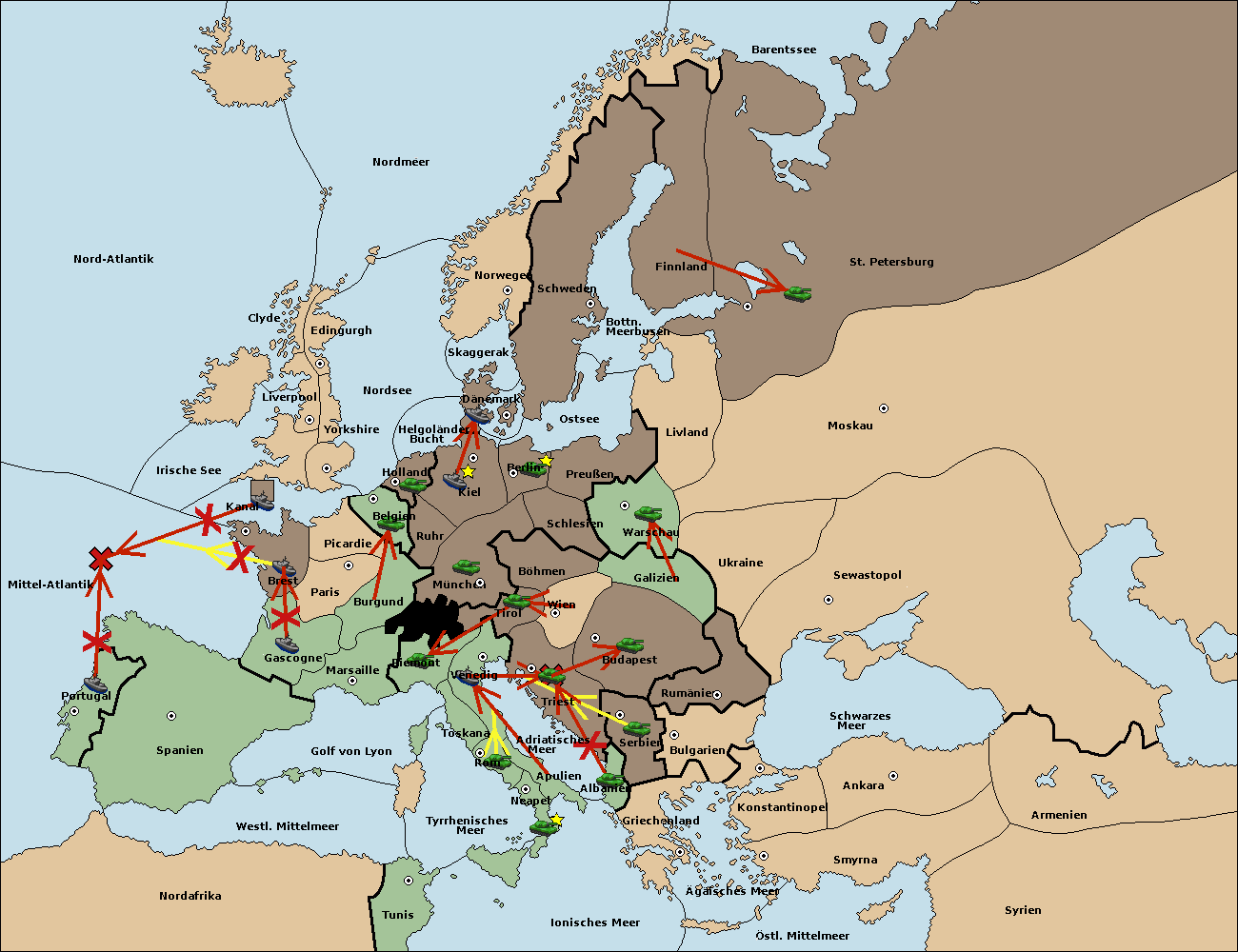 • Die Flotte in Spanien (Südküste) move nach Portugal.