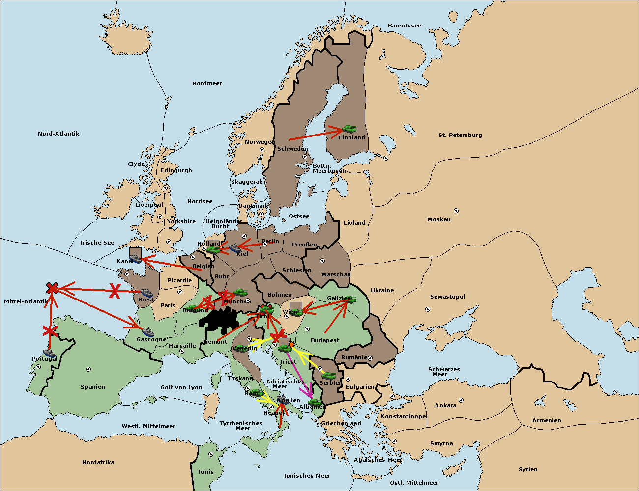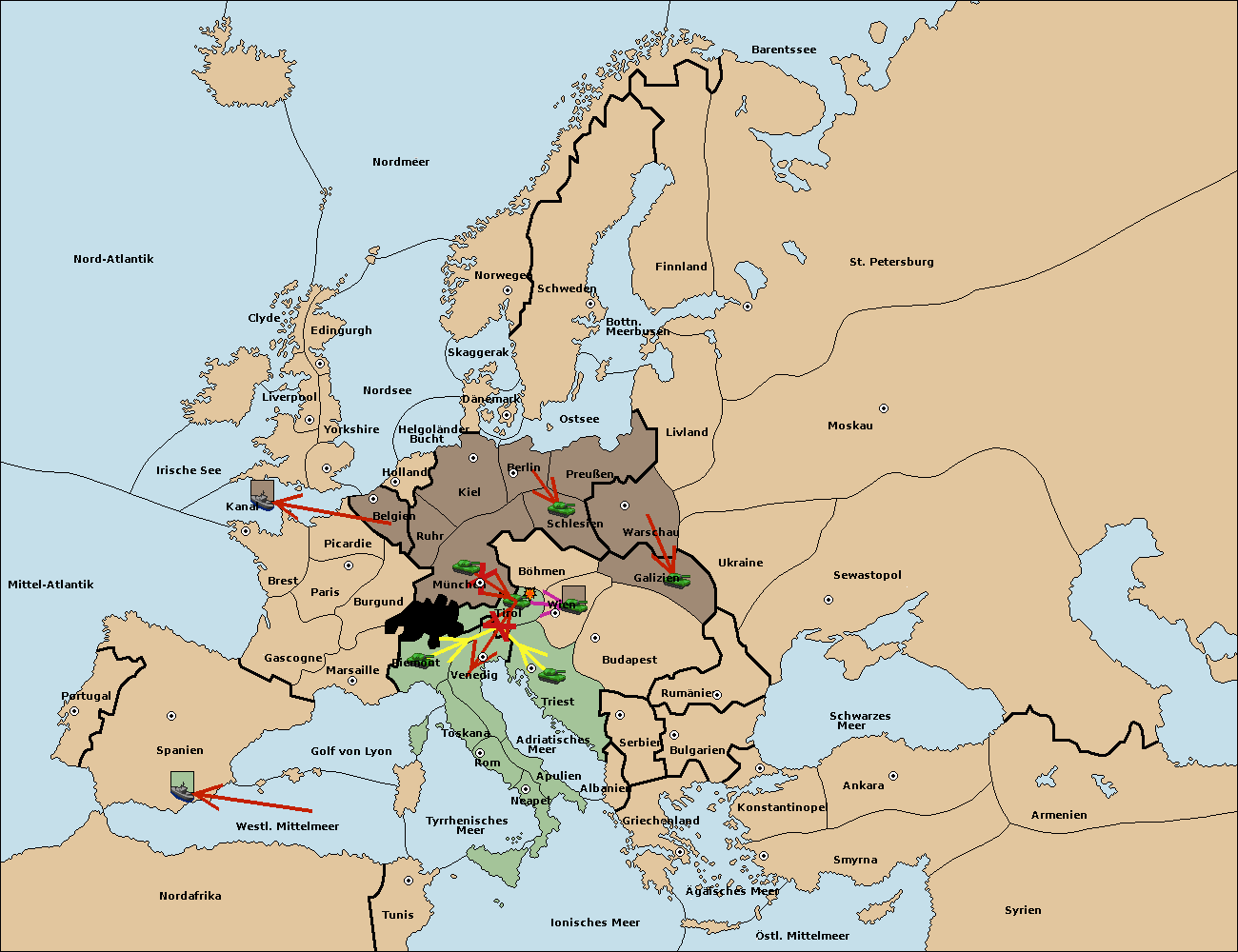 • Die Armee in Venedig support move nach Triest von Tirol.