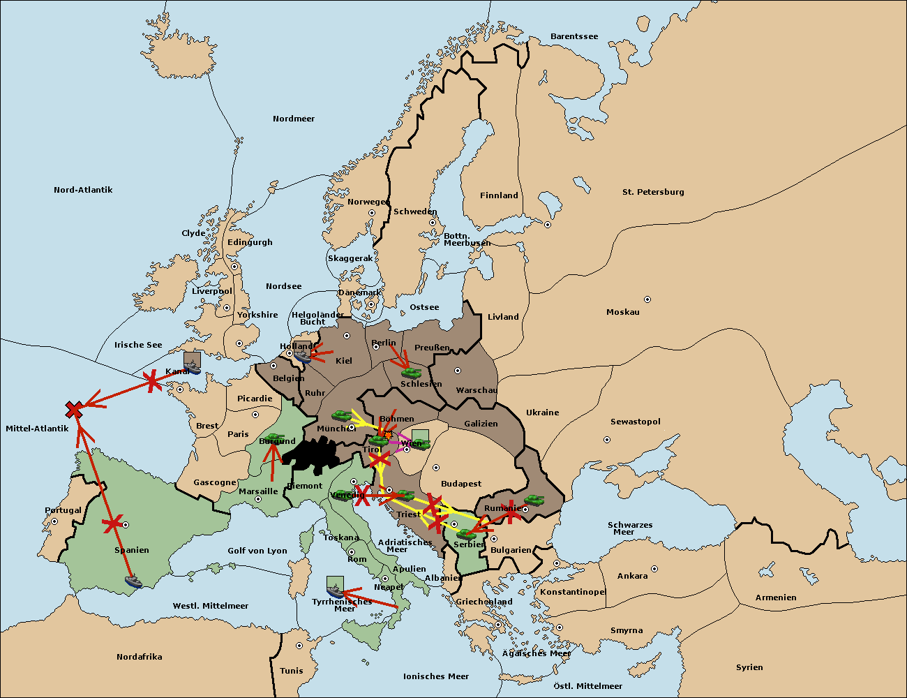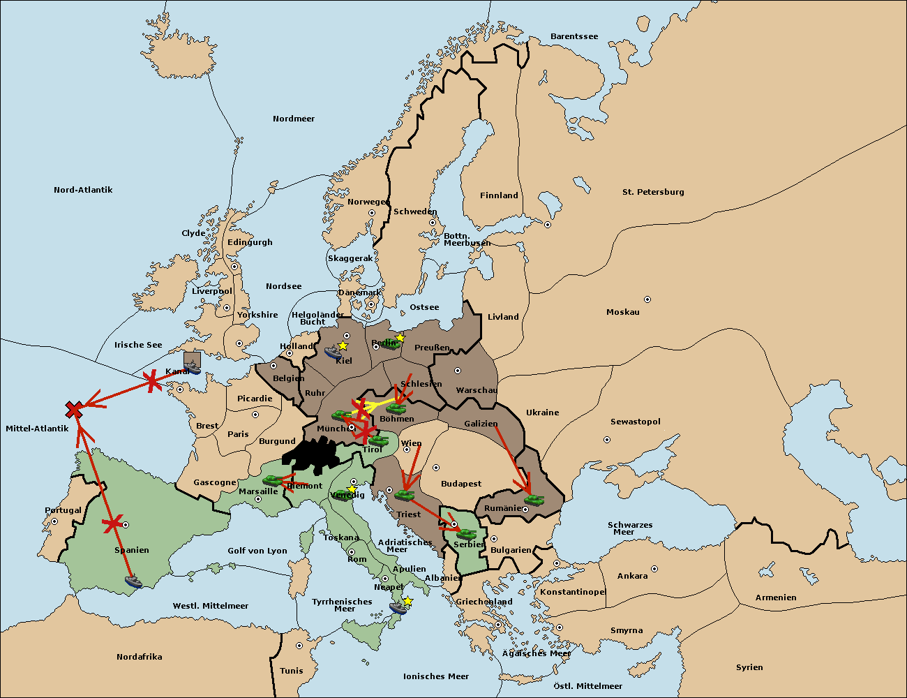 • Die Armee in Triest move nach Tirol. (gescheitert) (verdrängt)
