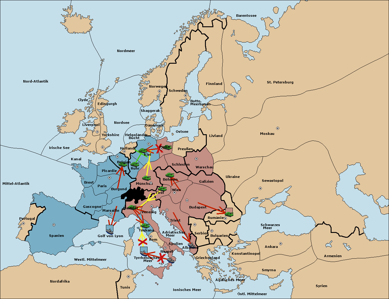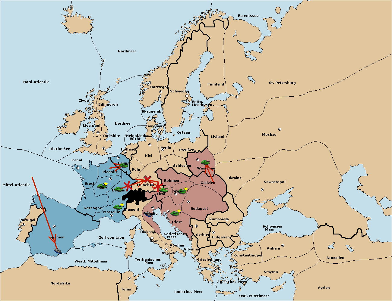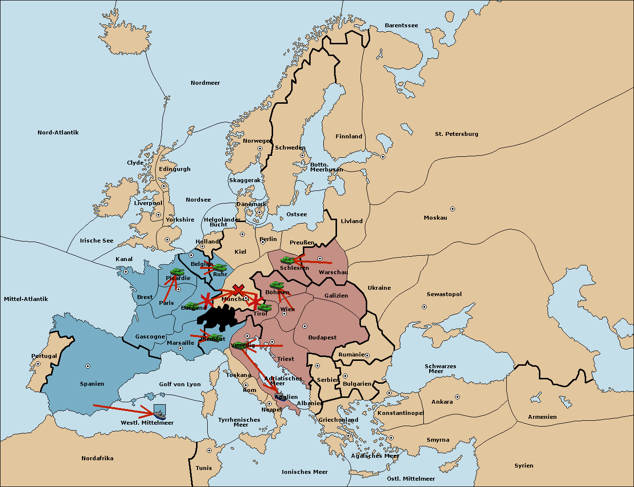 • Die Armee in Berlin support move nach München von Böhmen.