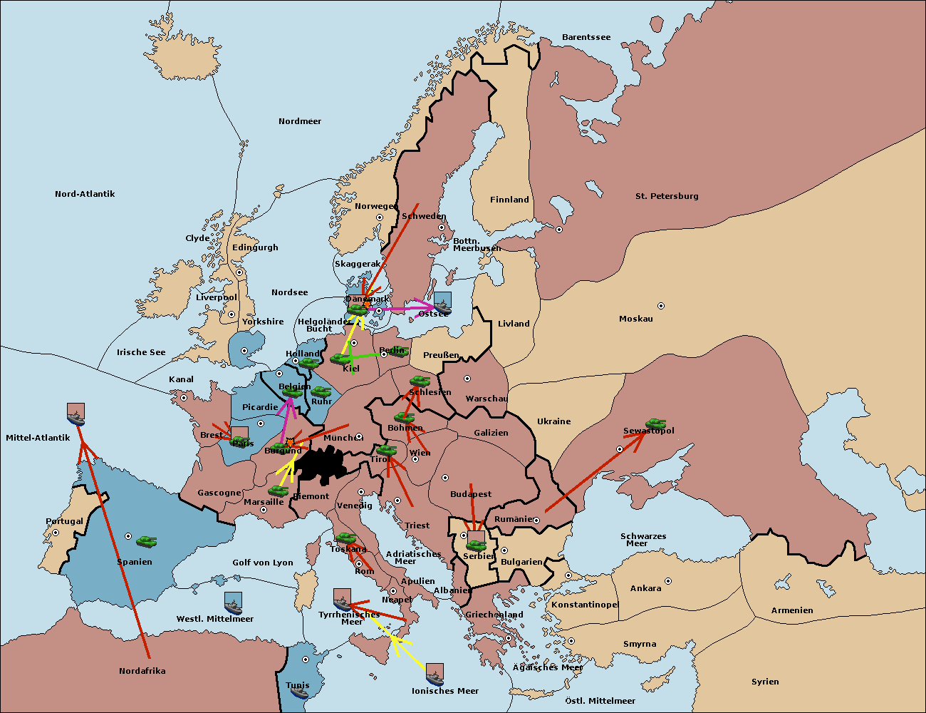 • Die Armee in Ruhr support move nach Burgund von Paris.