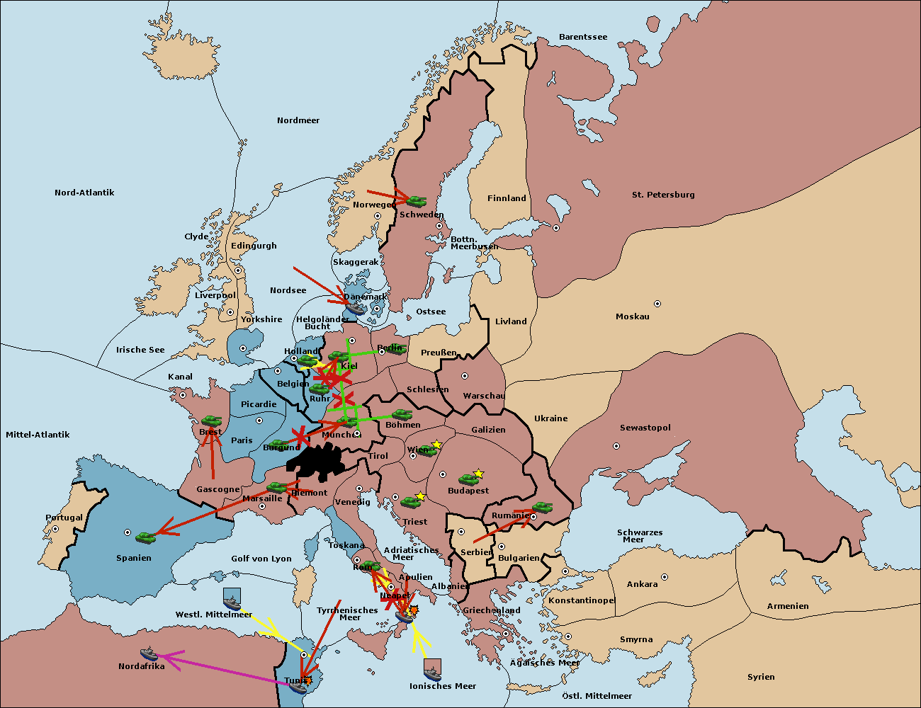 • Die Flotte in Spanien (Südküste) move nach westl. Mittelmeer.