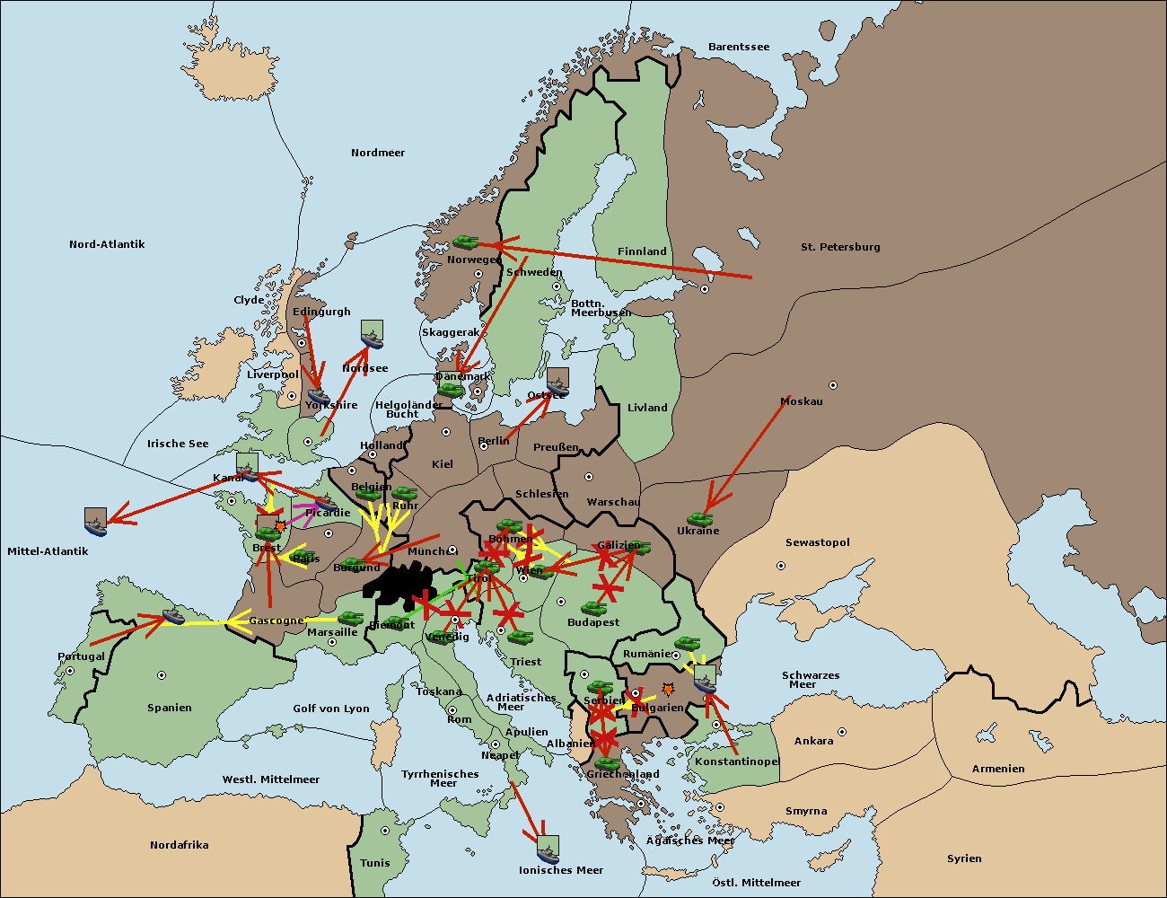 • Die Armee in Bulgarien wird zerstörtFlotte in Bulgarien gebaut.