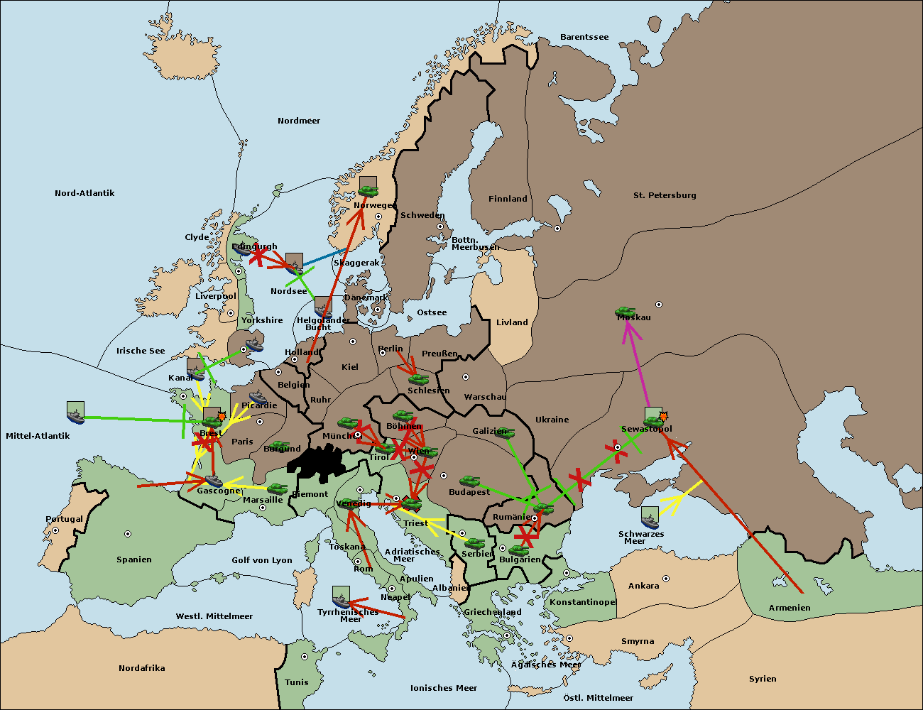 • Die Armee in Triest support move nach Budapest von Rumänien. (gescheitert)
