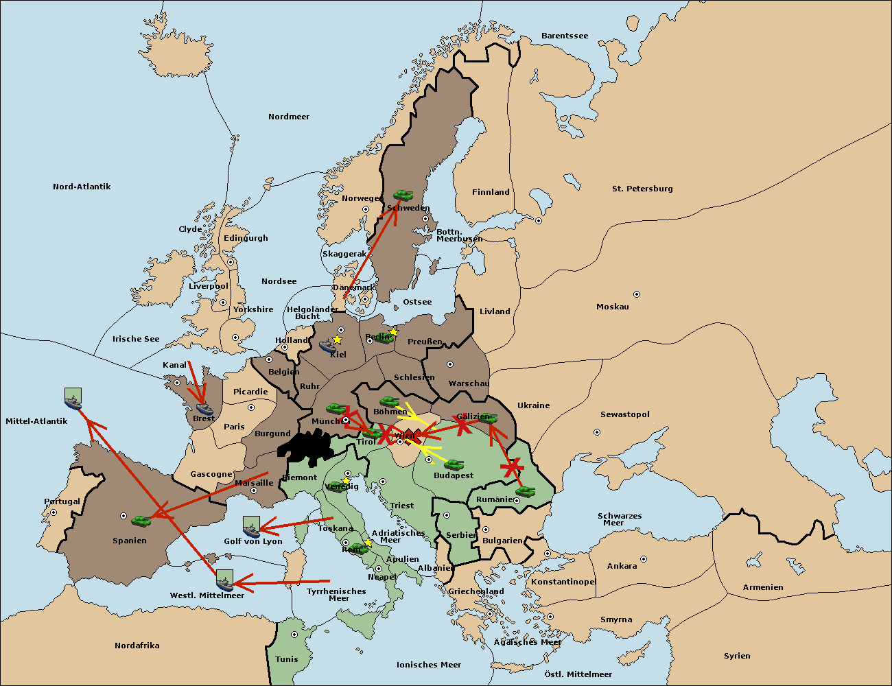 • Die Armee in Galizien move nach Wien. (gescheitert)