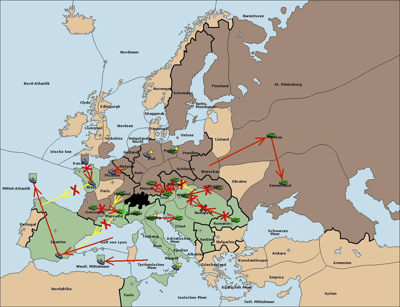 • Die Armee in Triest support hold nach Budapest. (gescheitert)
