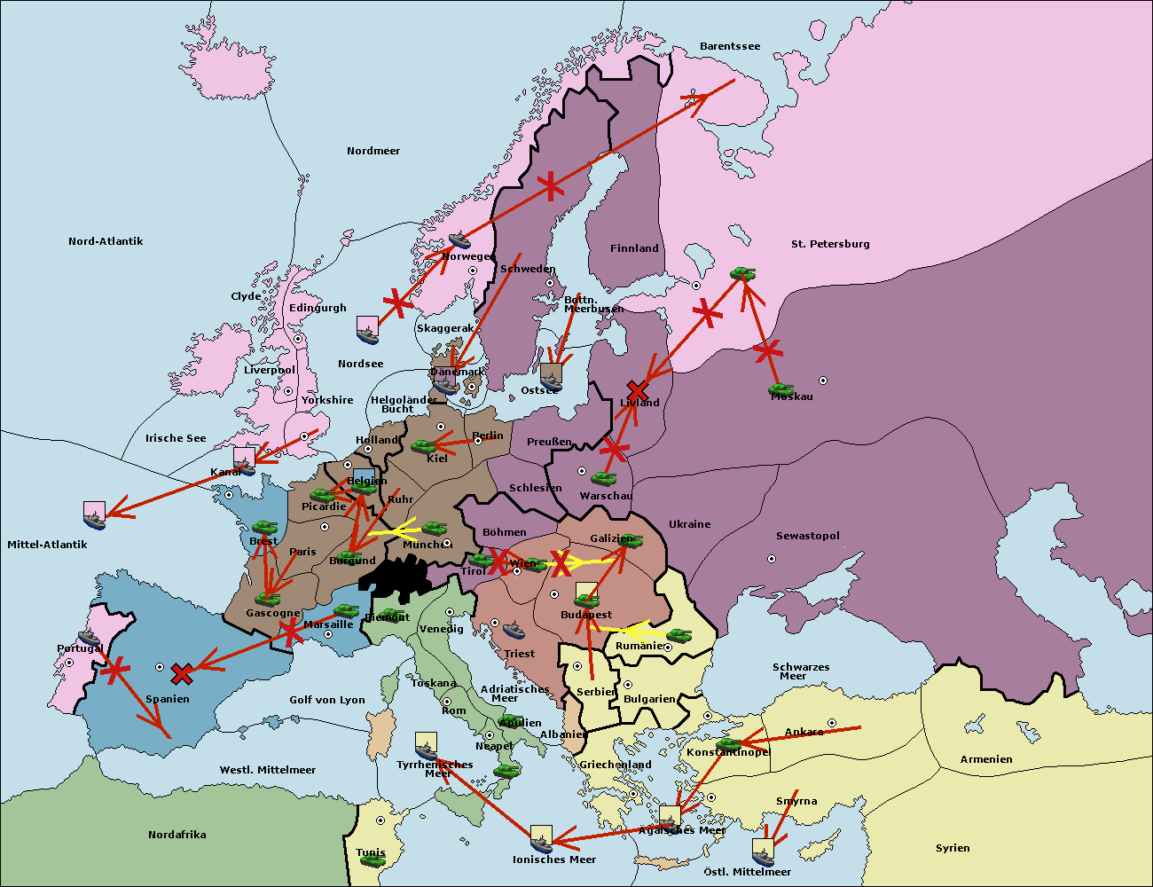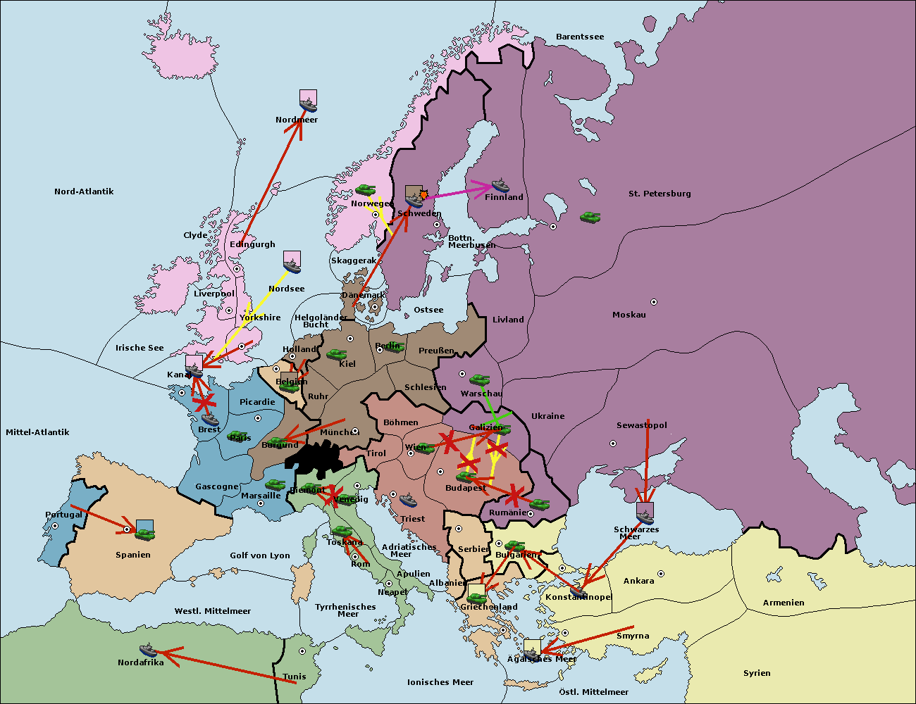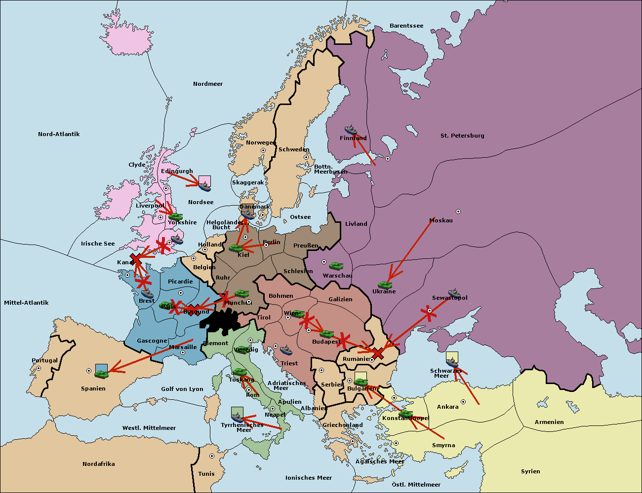 • Die Armee in Budapest support move nach Galizien von Wien. (gescheitert)