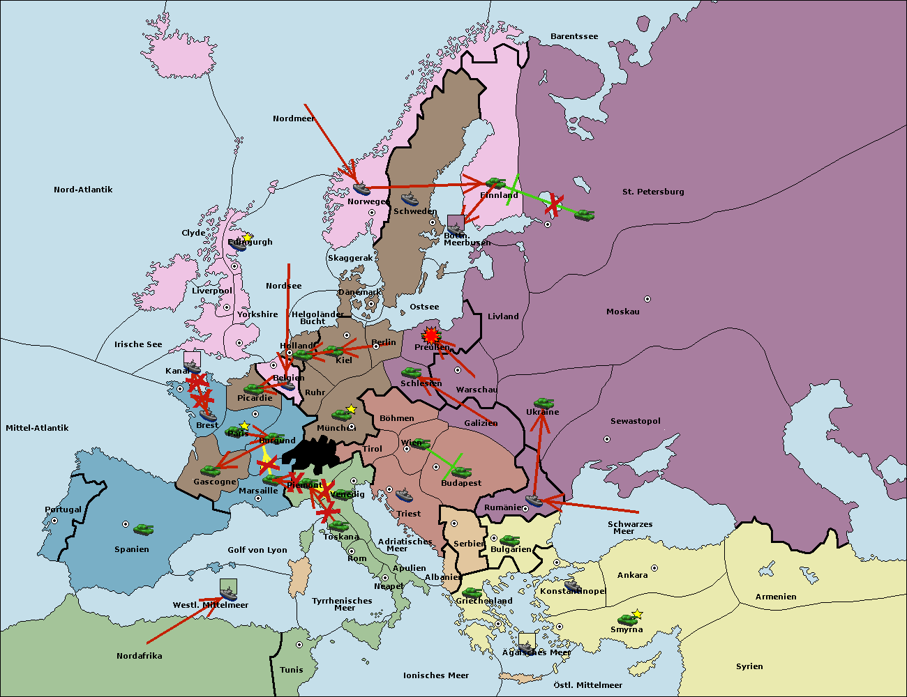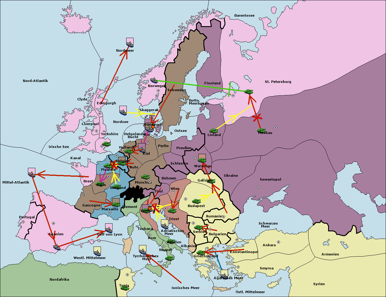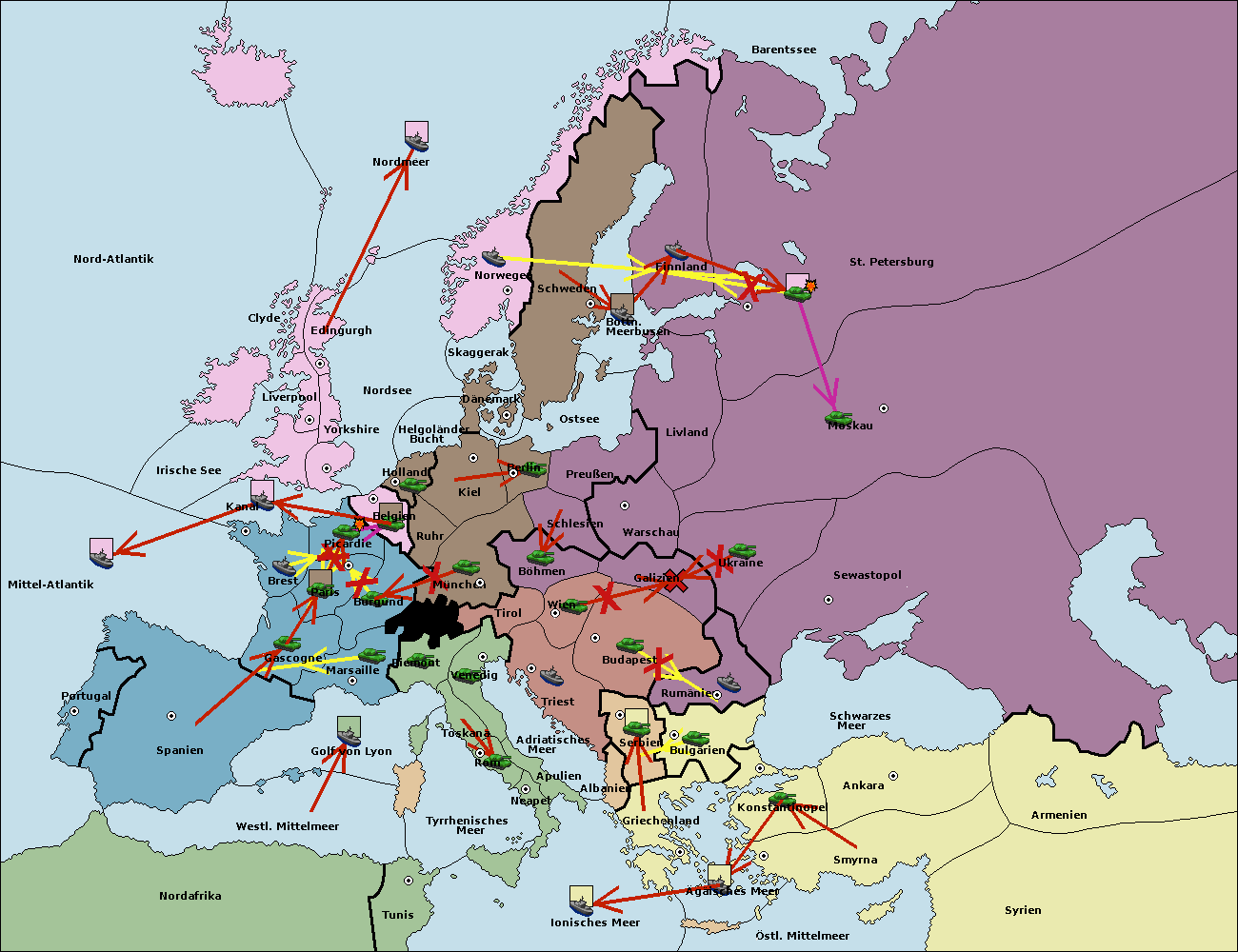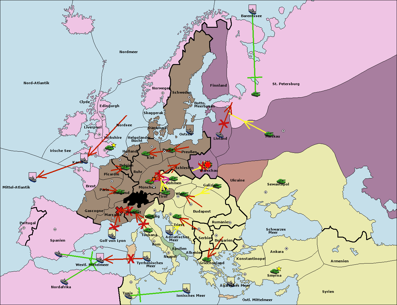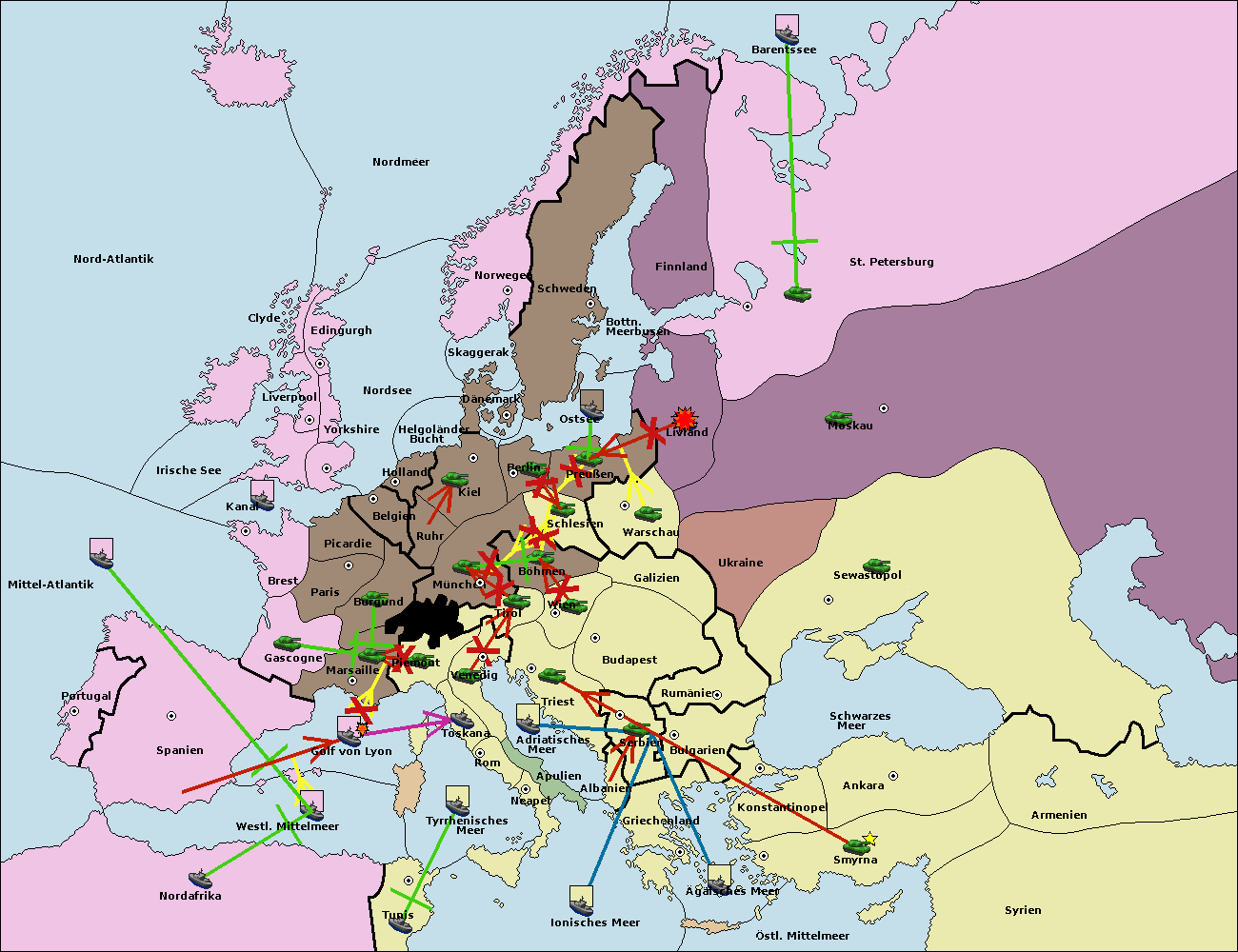 • Die Armee in Warschau support move nach Preußen von Livland.