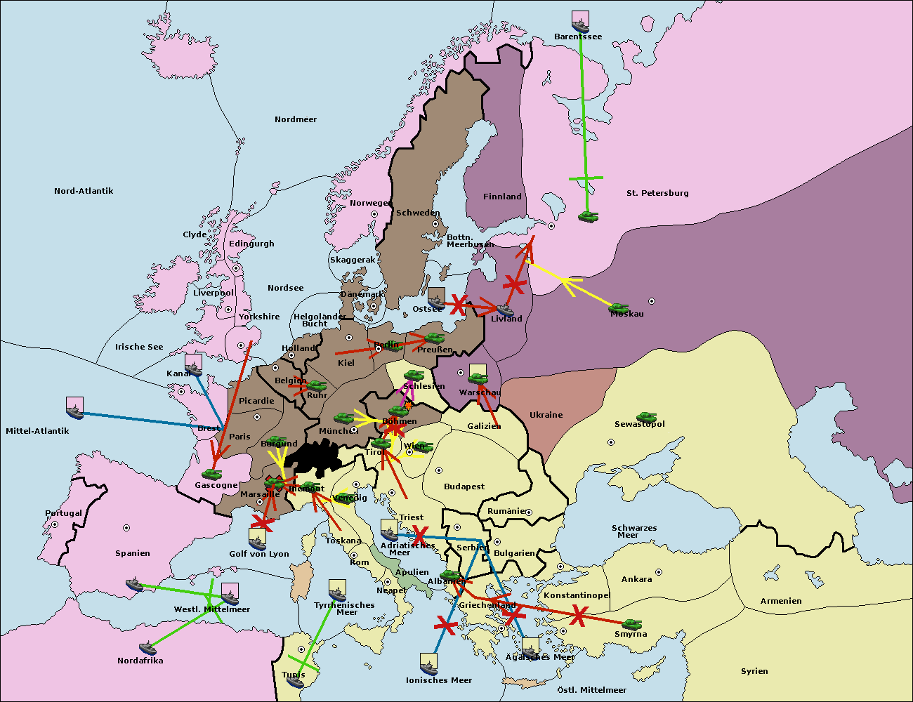 • Die Flotte in Nord Afrika support hold nach westl. Mittelmeer.
