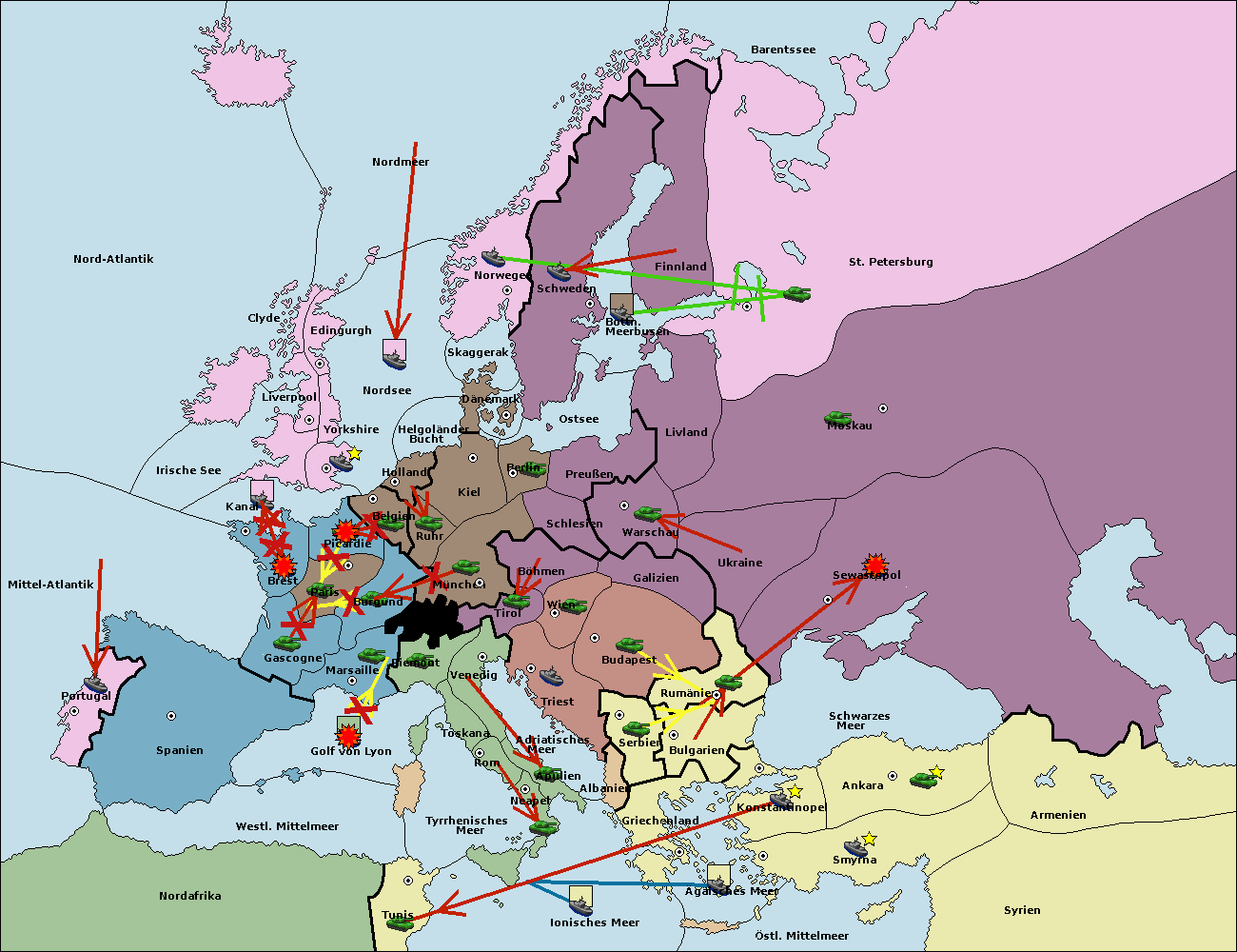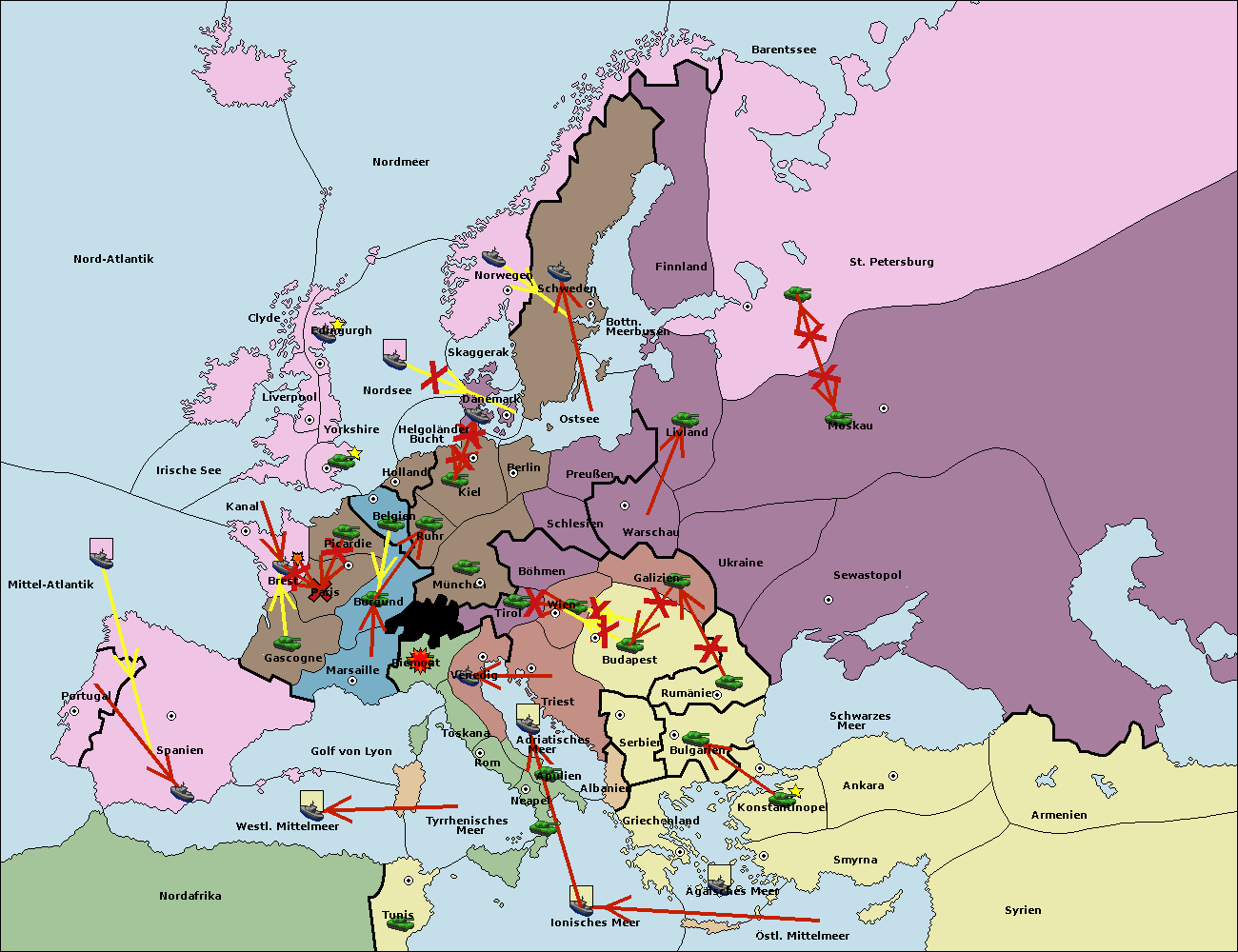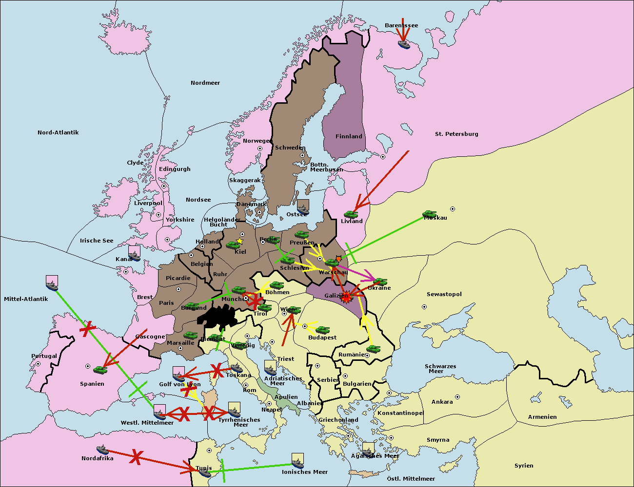 • Die Flotte in Nord Afrika move nach Tunis. (gescheitert)