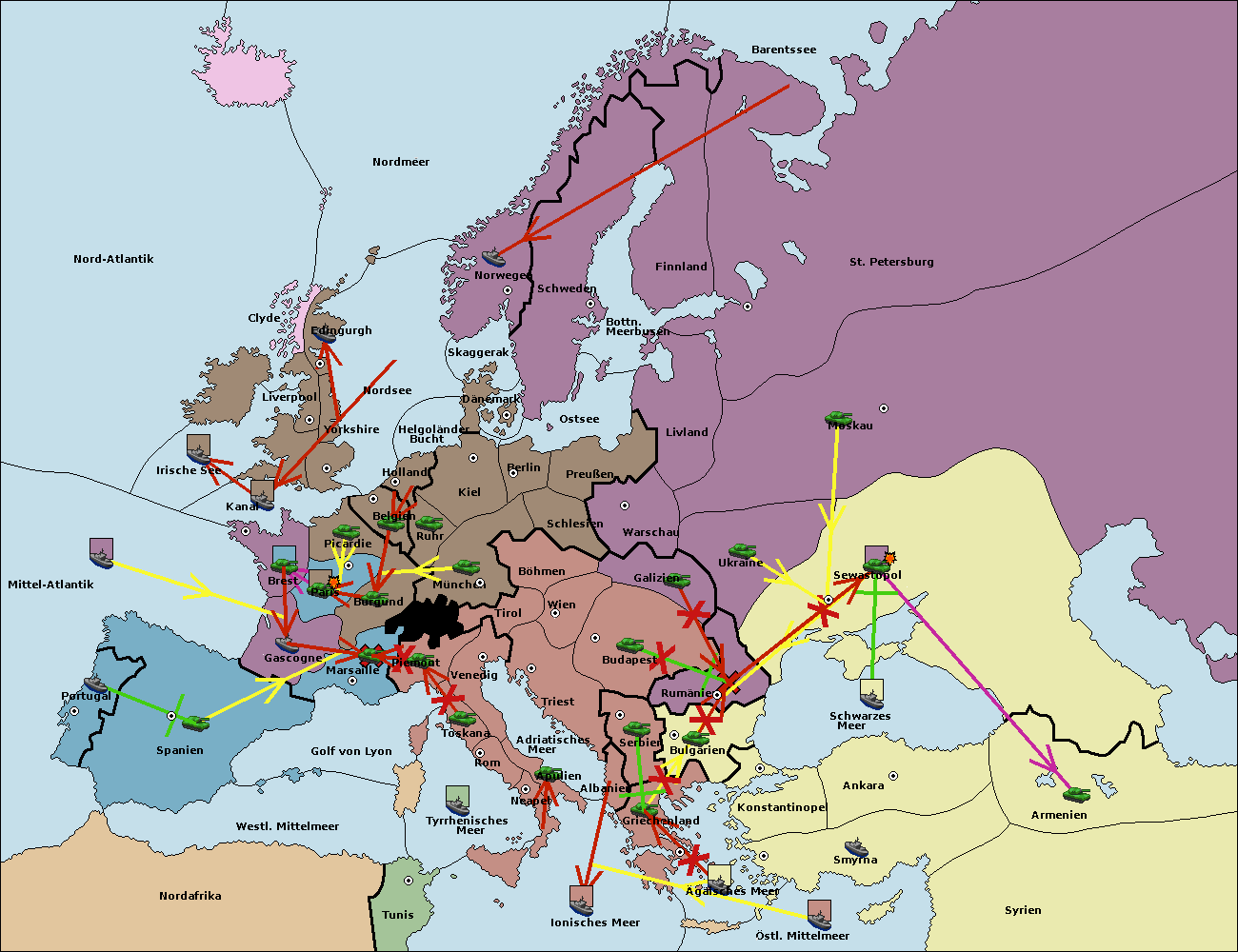 • Die Flotte in Golf von Lyon move nach Toskana. (gescheitert)