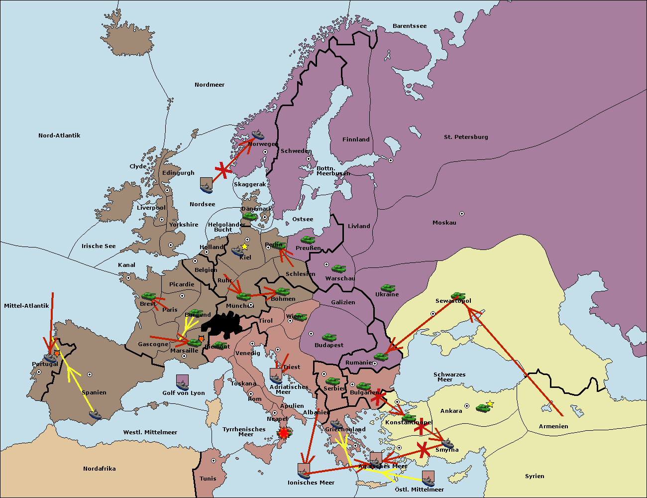 • Die Flotte in Smyrna support hold nach Konstantinopel. (gescheitert)