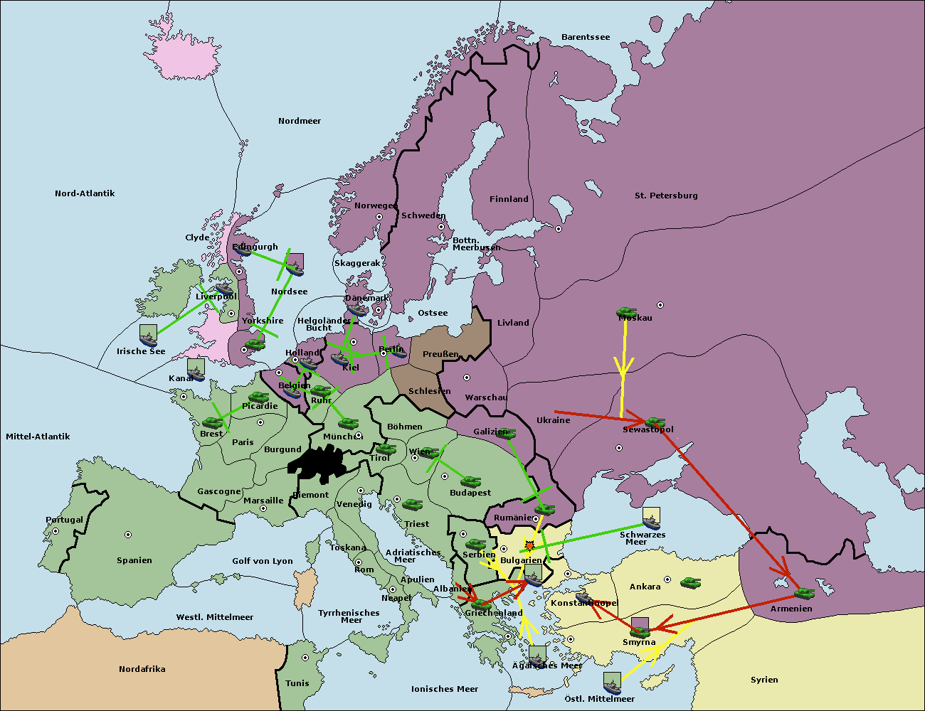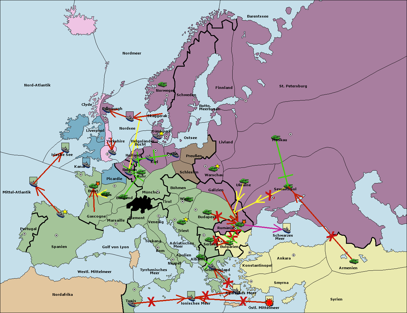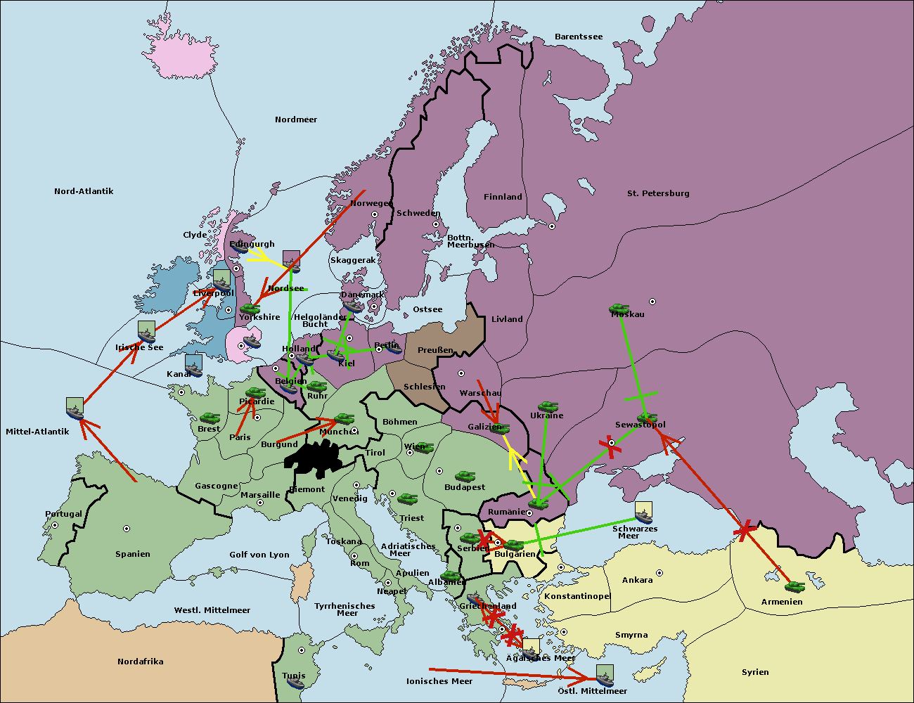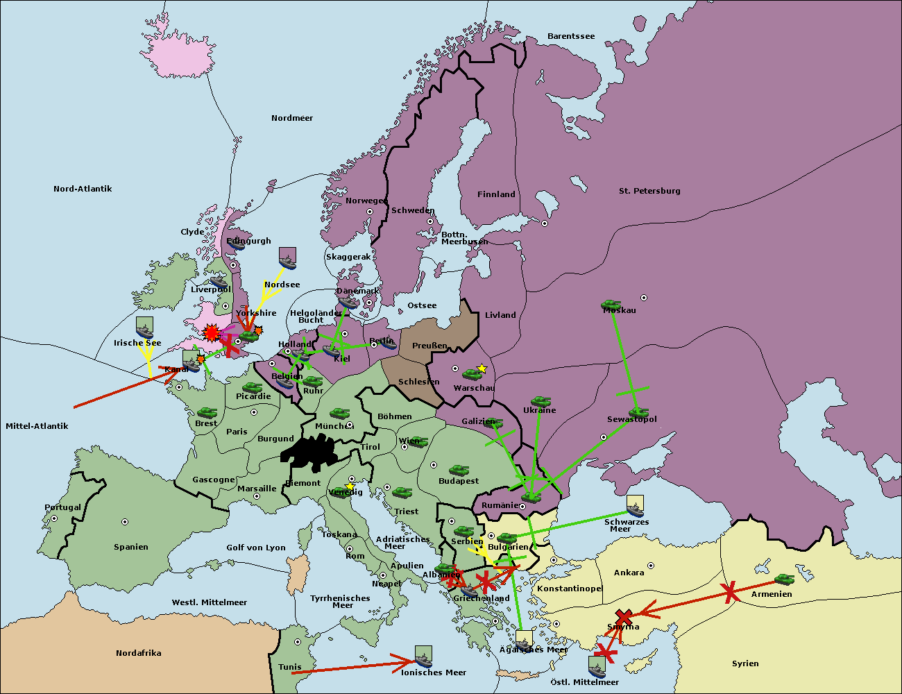 • Die Armee in Bulgarien wird zerstörtFlotte in Bulgarien gebaut.