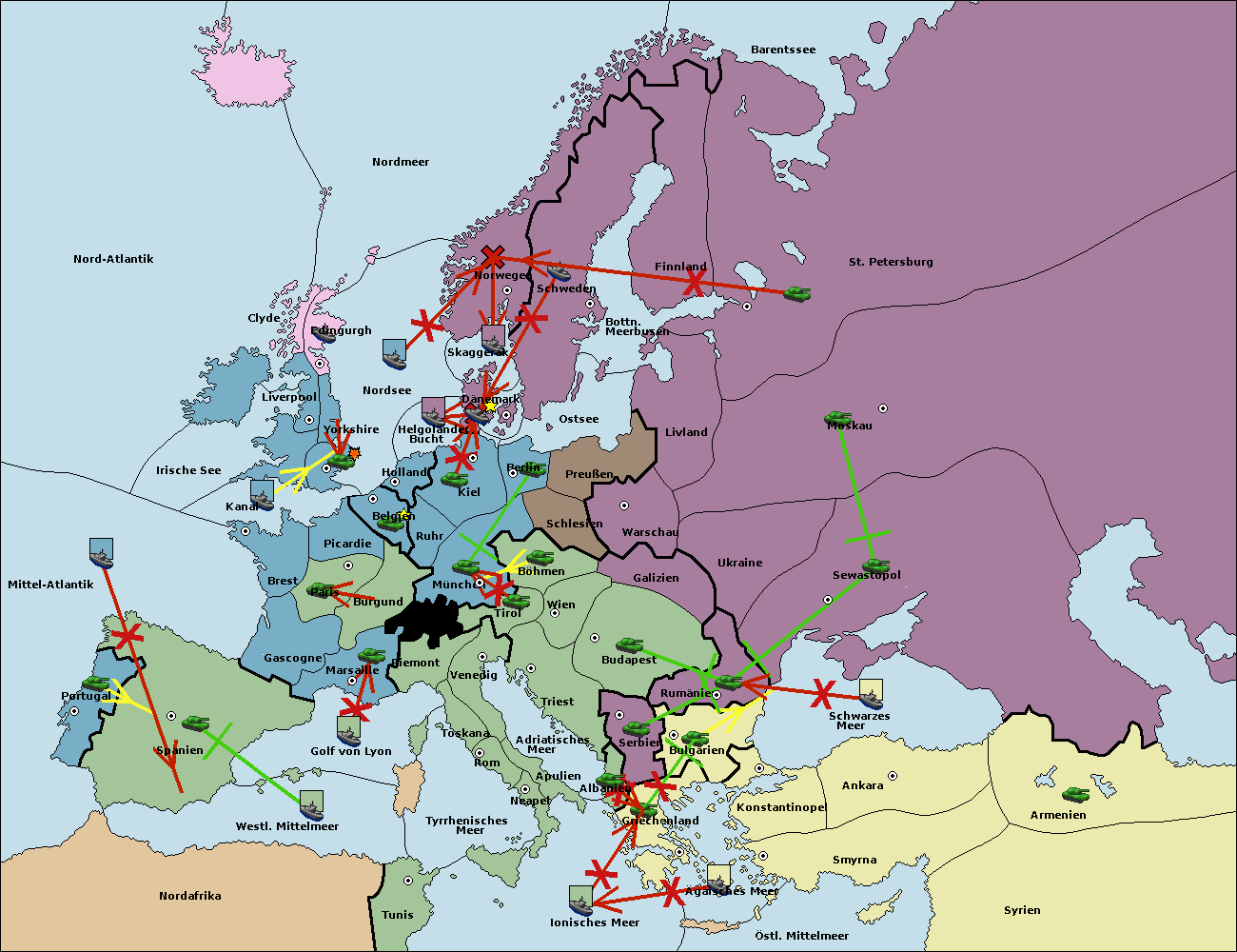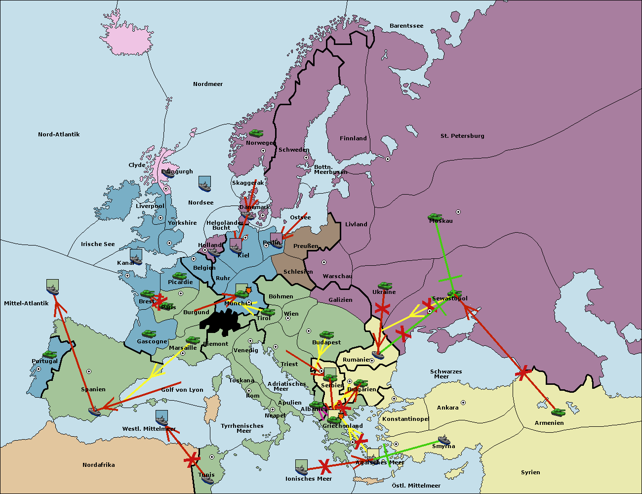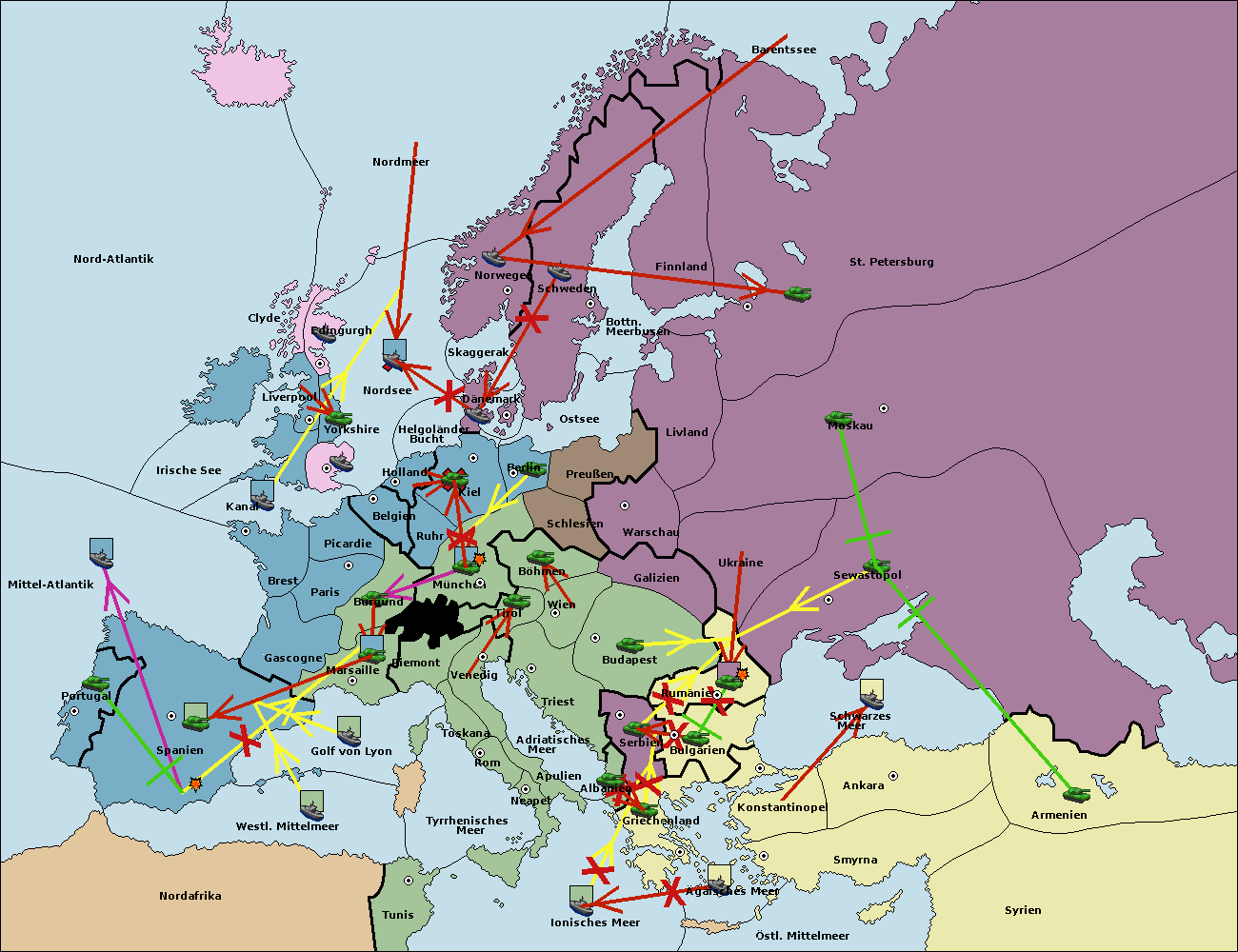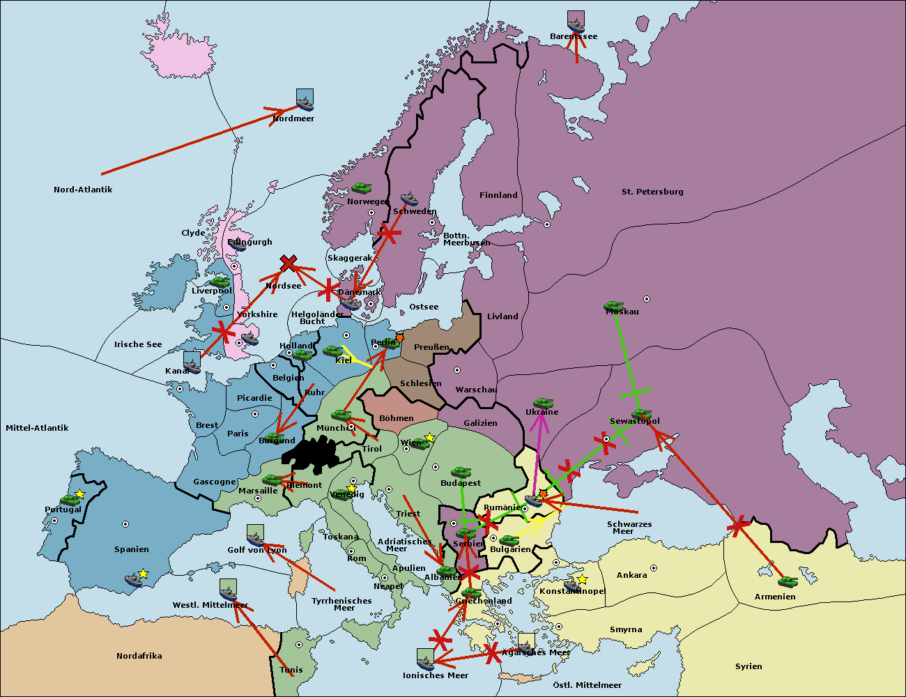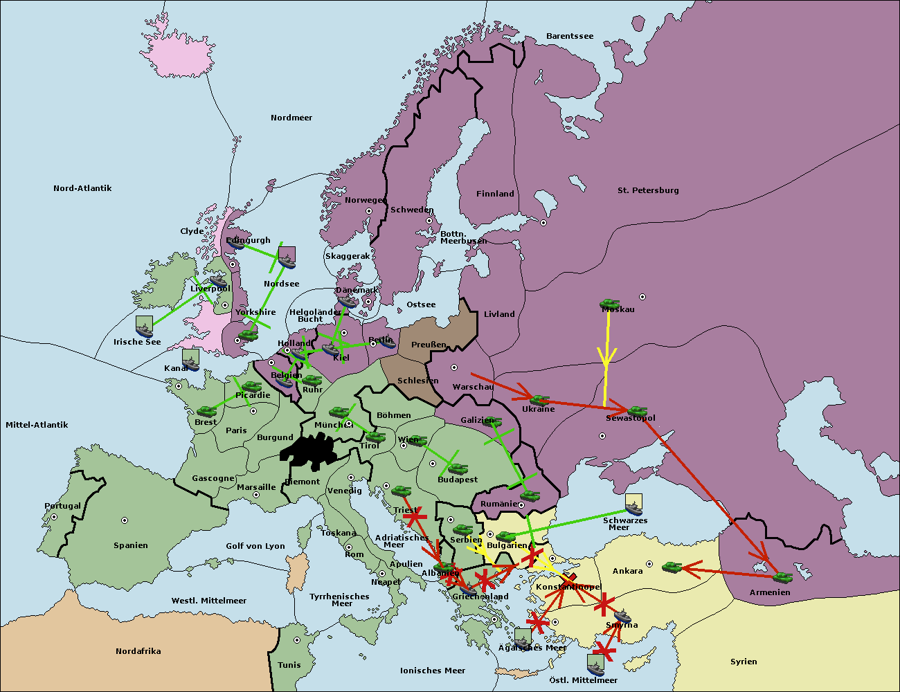 • Die Armee in Bulgarien wird zerstörtFlotte in Bulgarien gebaut.