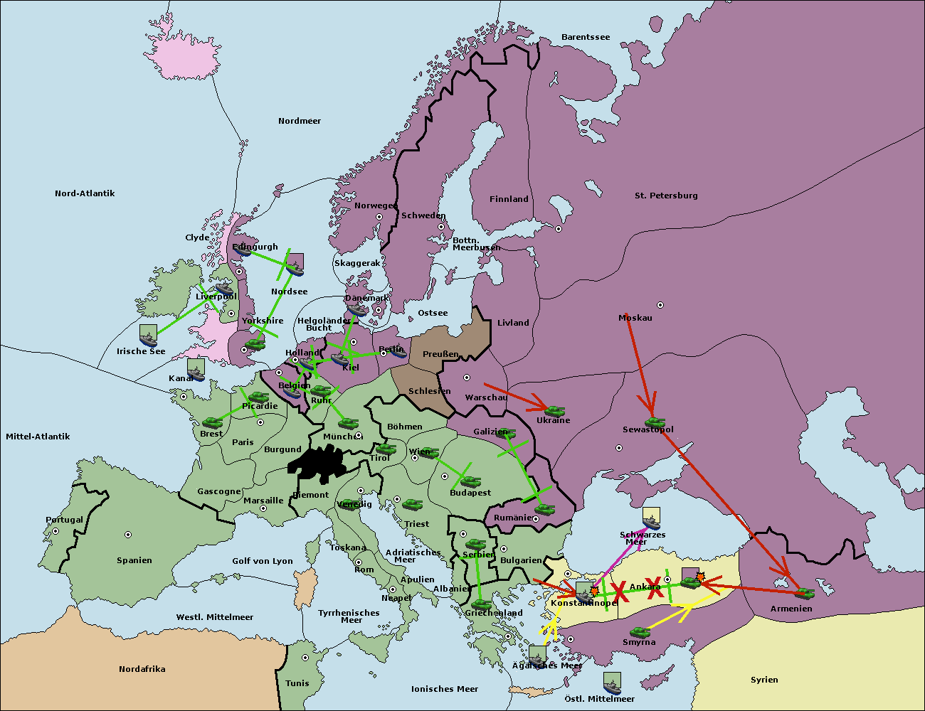 • Die Armee in Ankara support hold nach Konstantinopel.