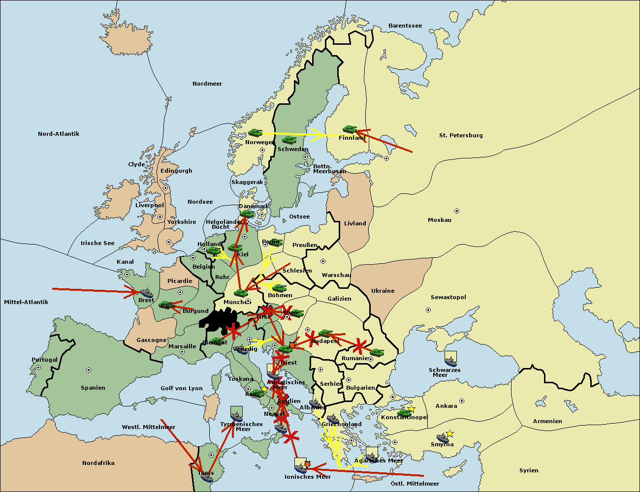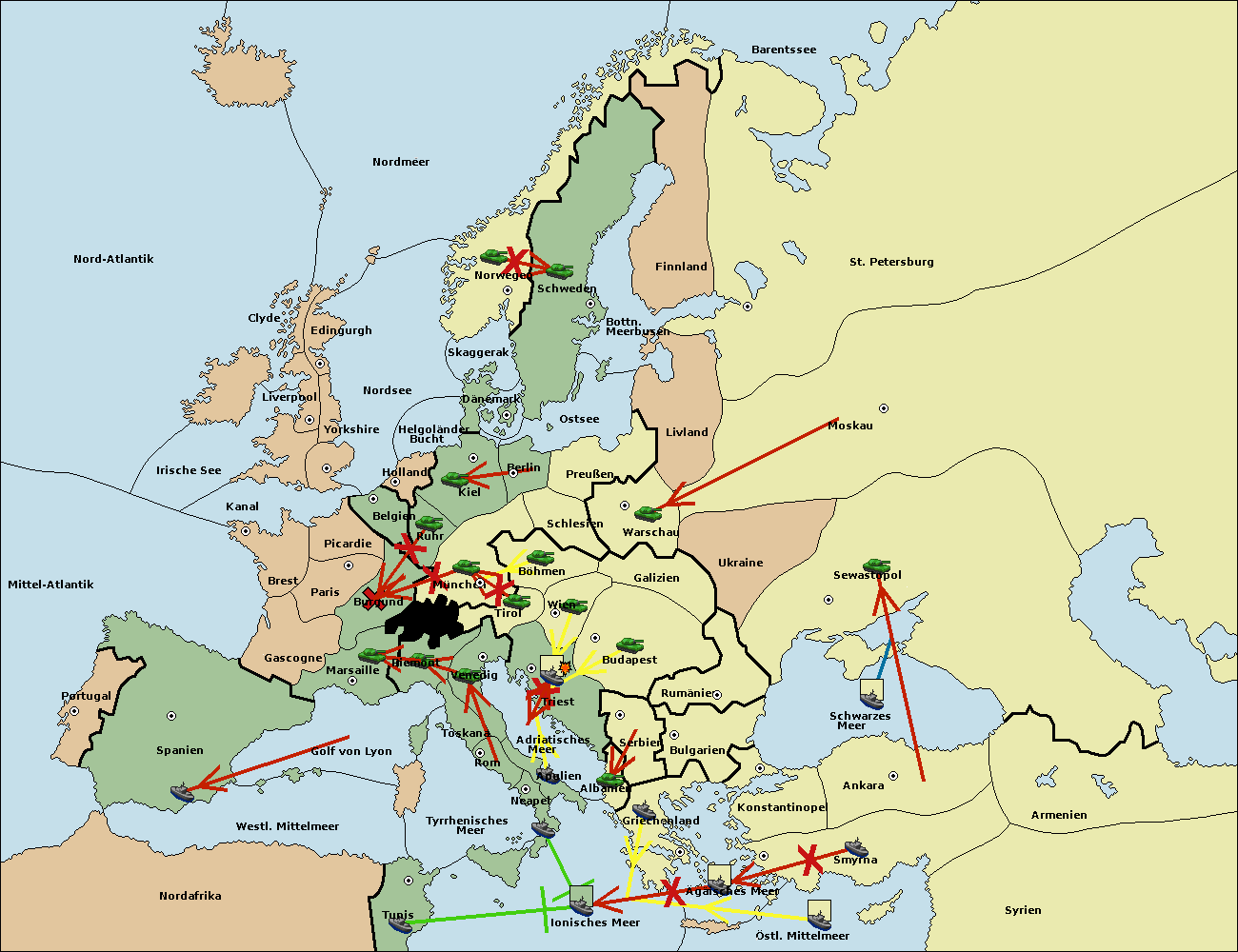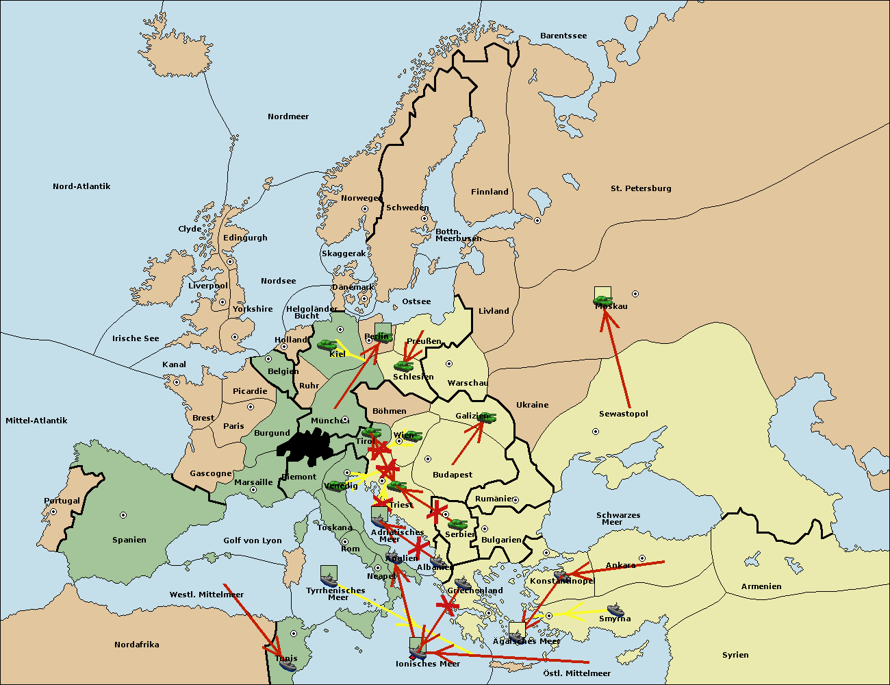• Die Armee in Triest move nach Serbien. (gescheitert) (verdrängt)