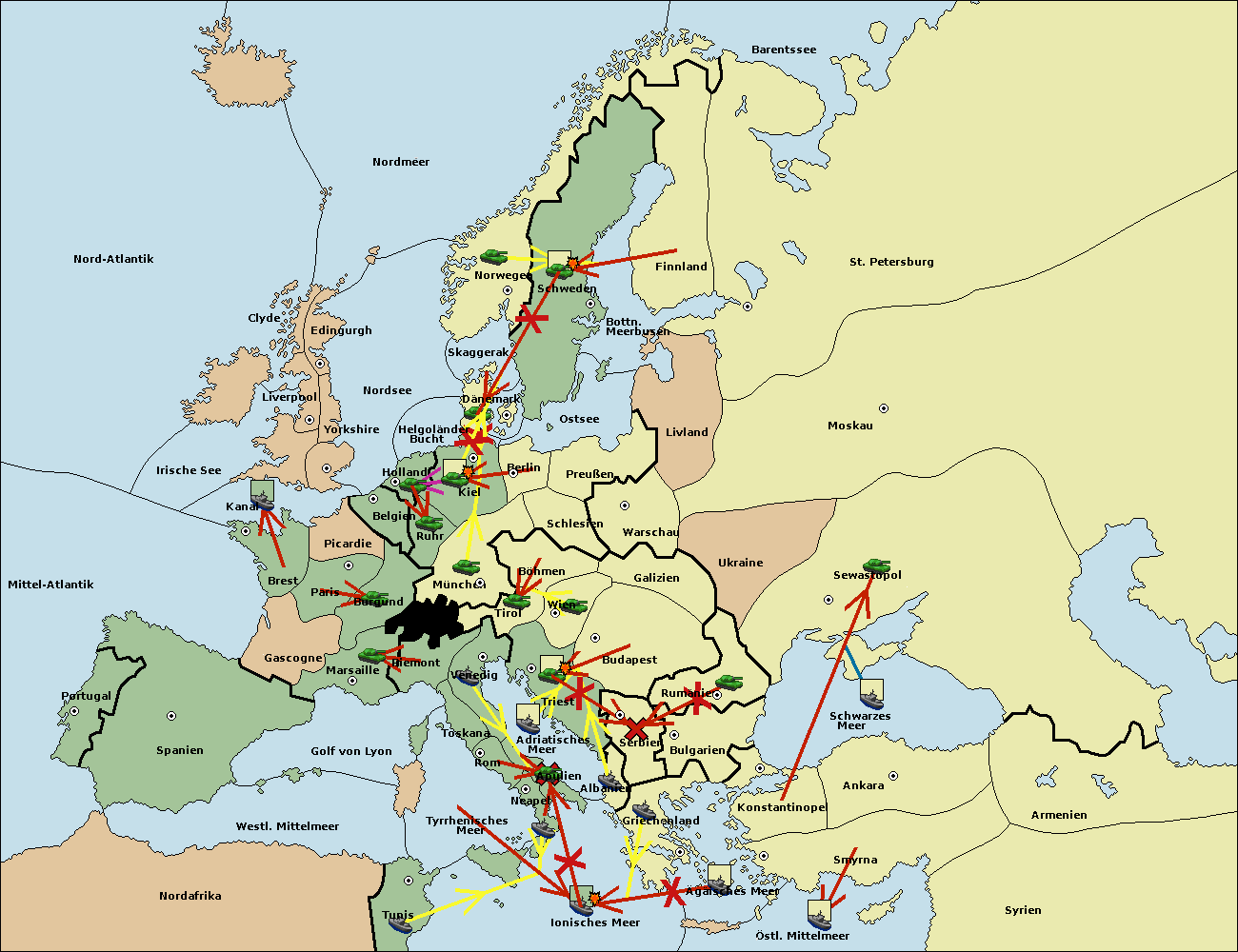 • Die Flotte in Smyrna move nach östl. Mittelmeer. (gescheitert)