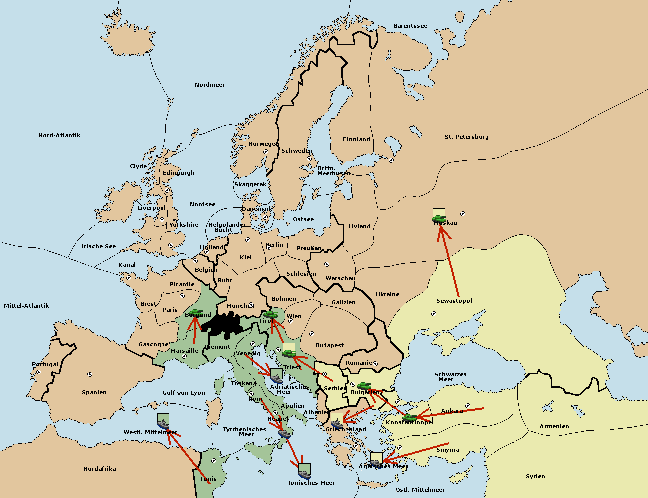 • Die Armee in Triest move nach Tirol. (gescheitert) (verdrängt)