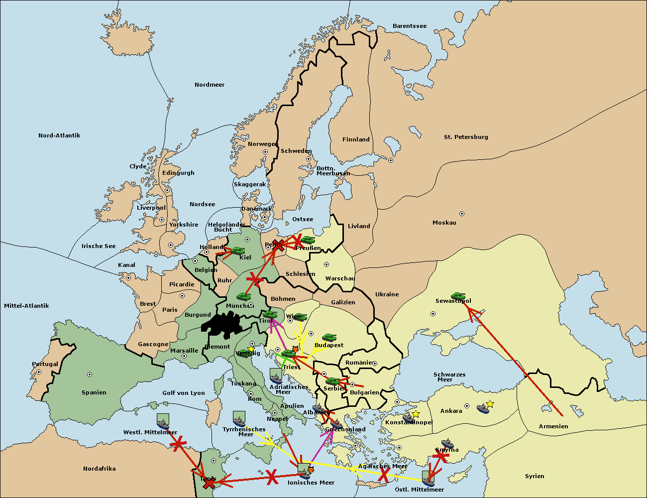 • Die Armee in Budapest support move nach Triest von Serbien.