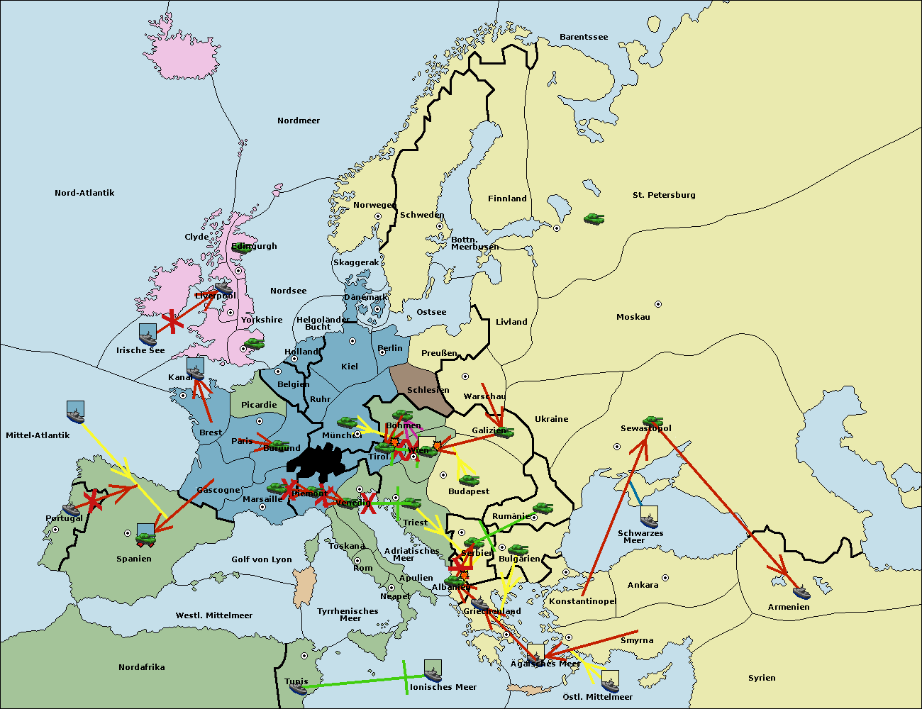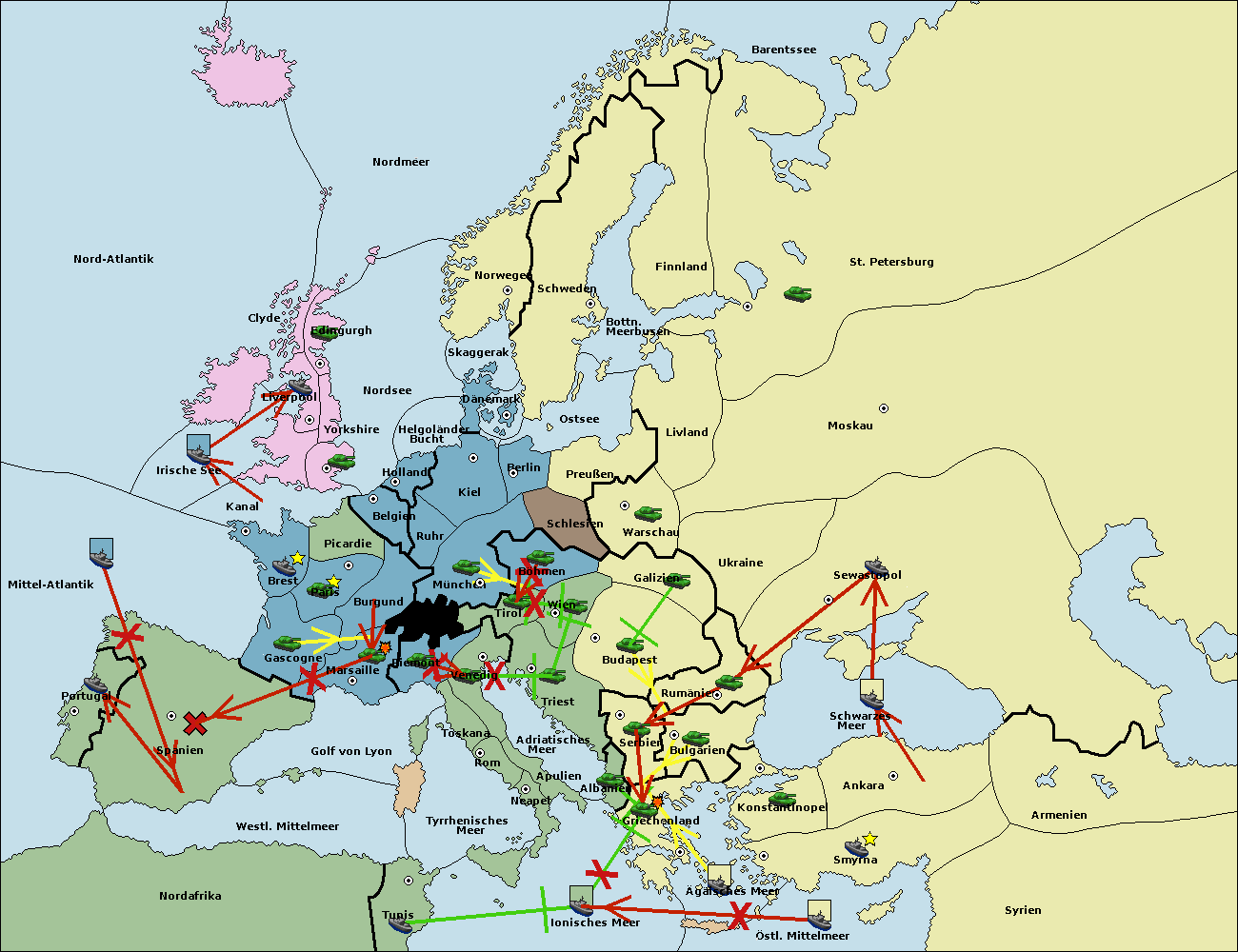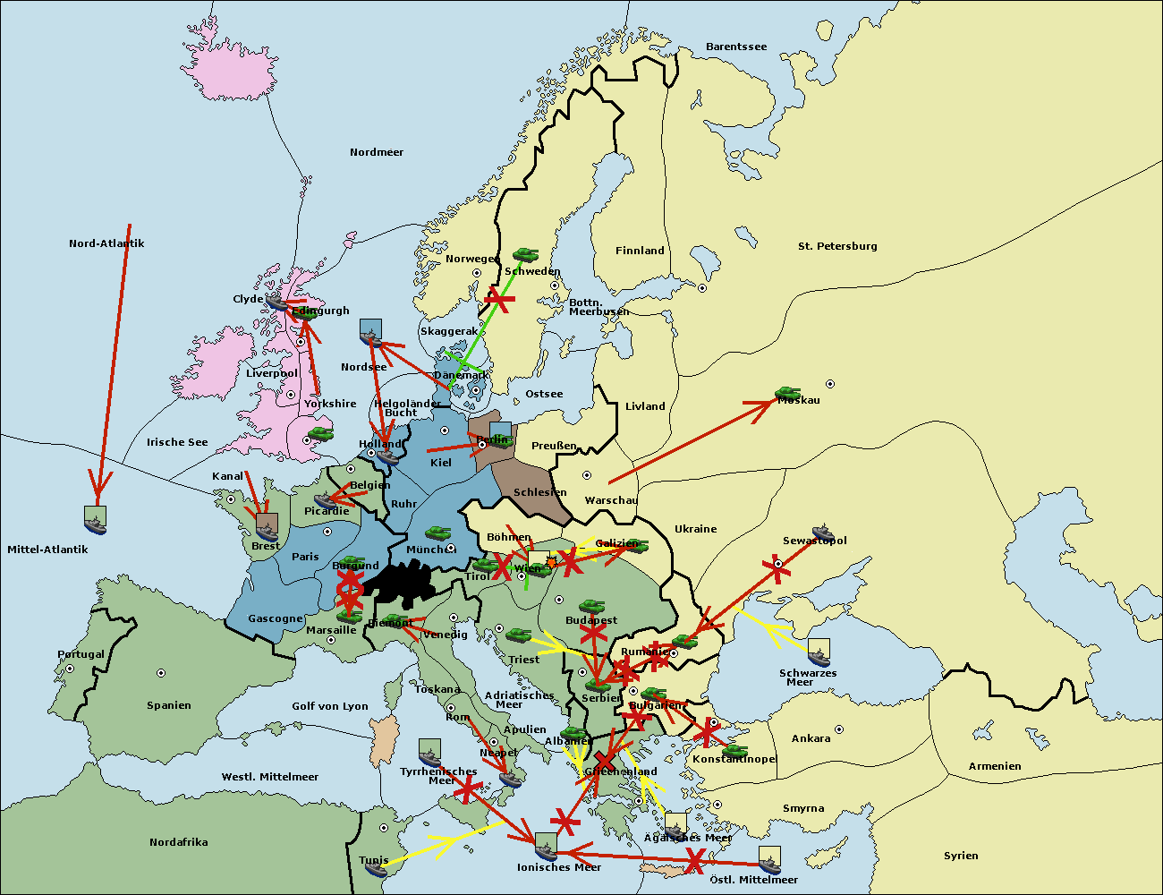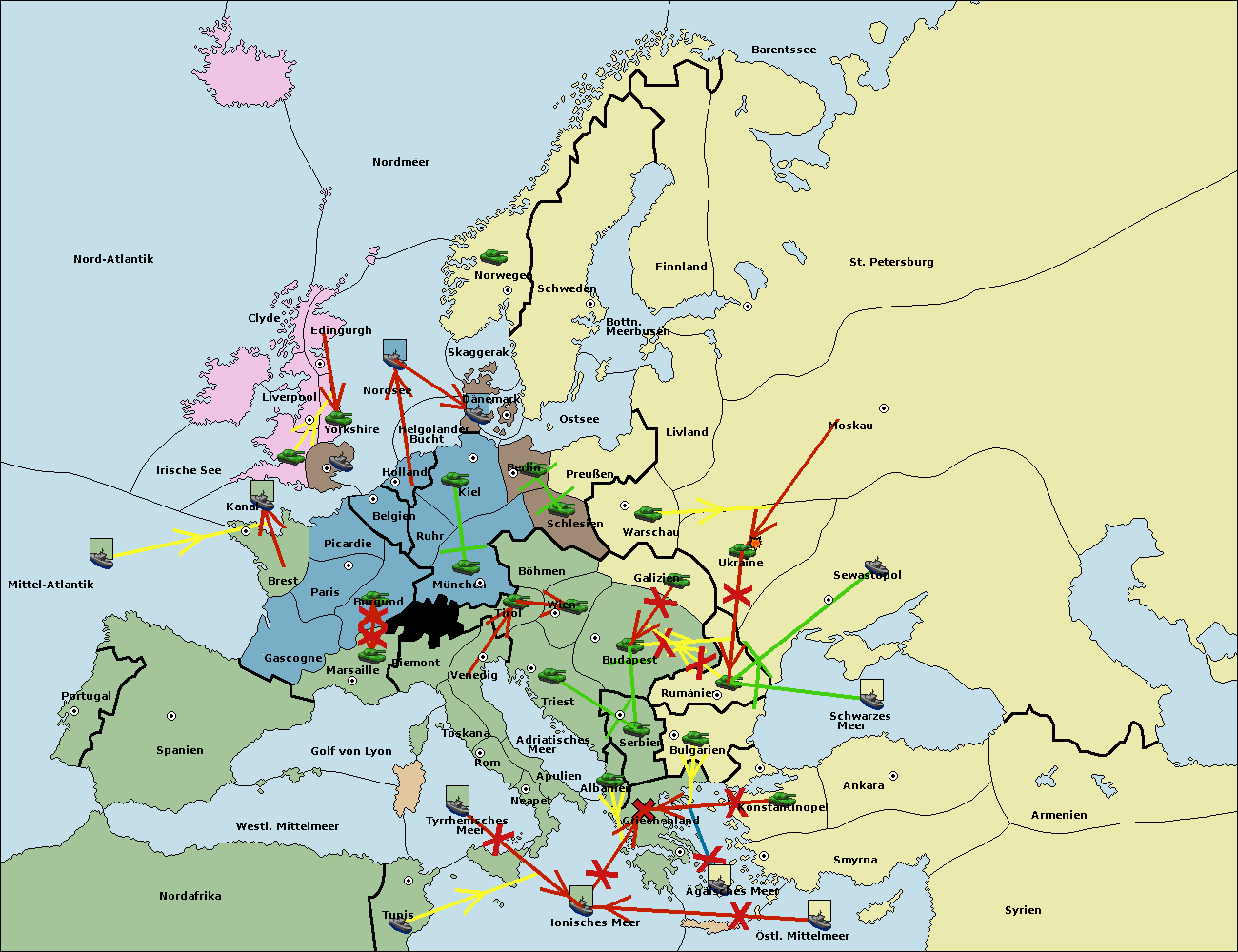 • Die Flotte in Bulgarien (Südküste) move nach Griechenland.