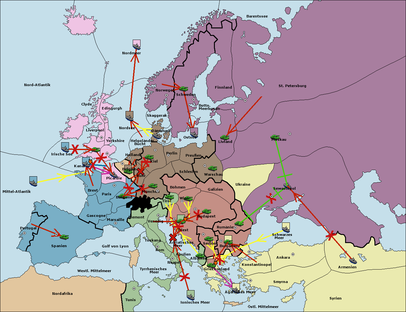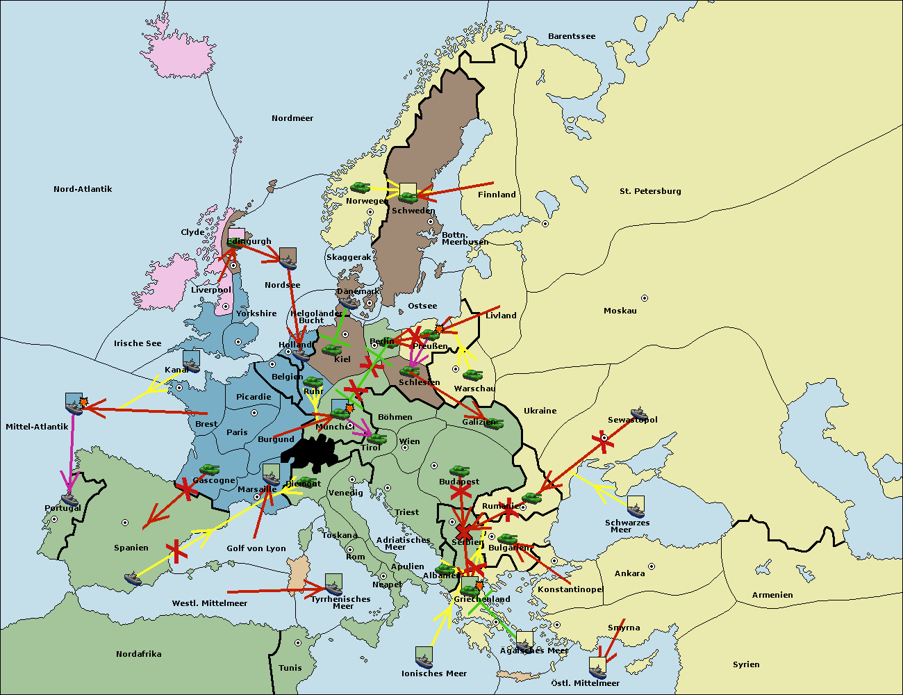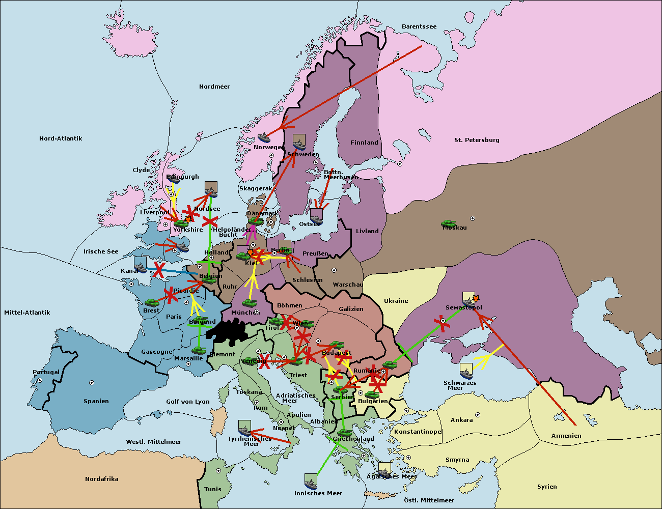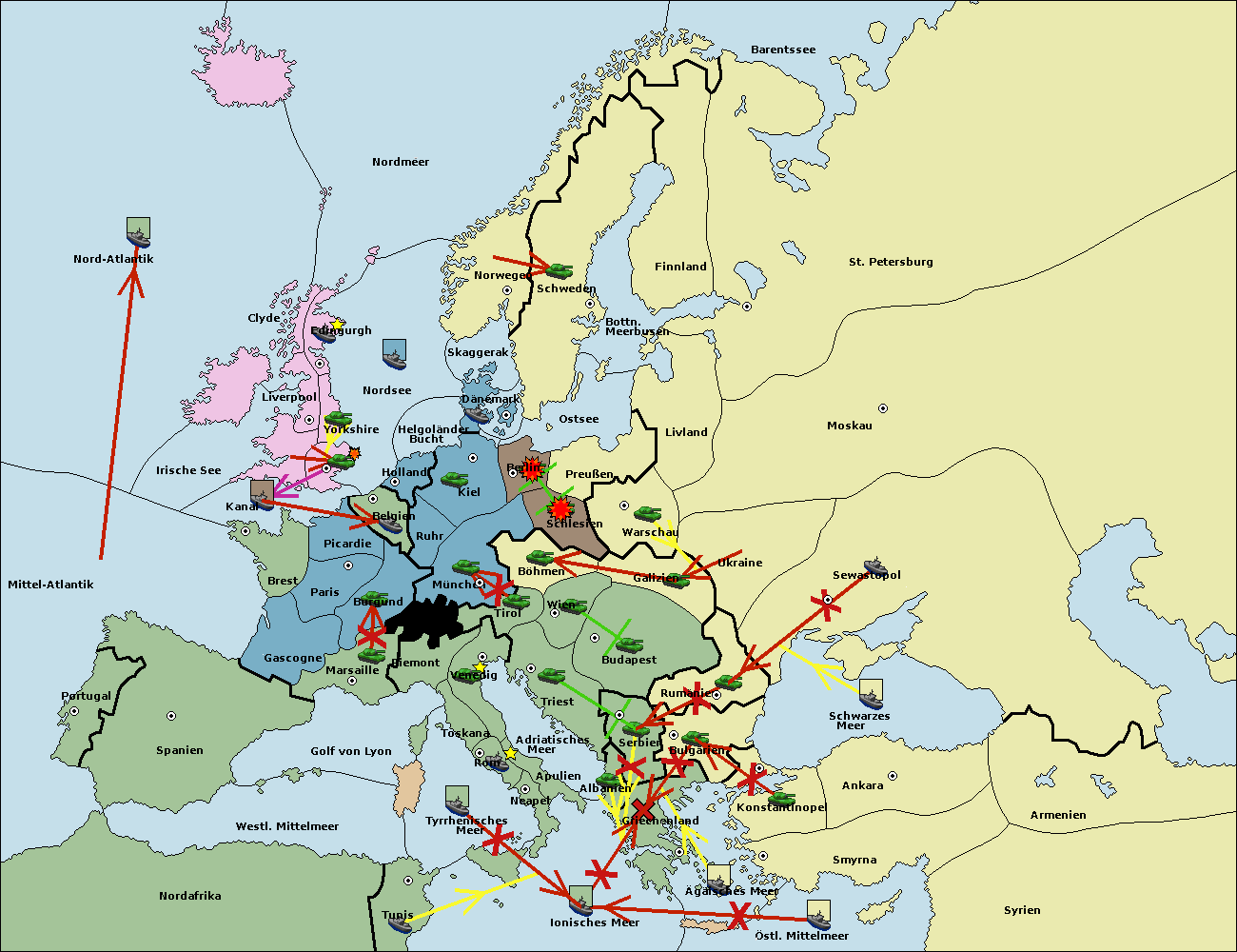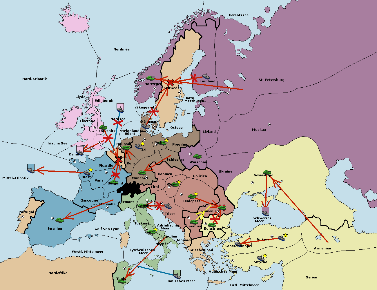 • Die Flotte in Bulgarien (Südküste) move nach Griechenland.