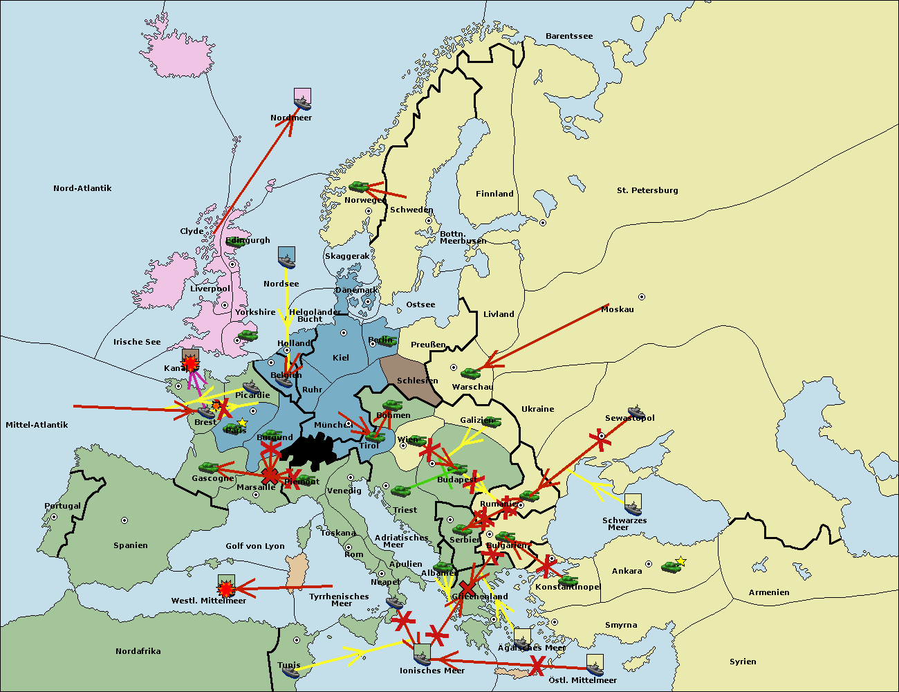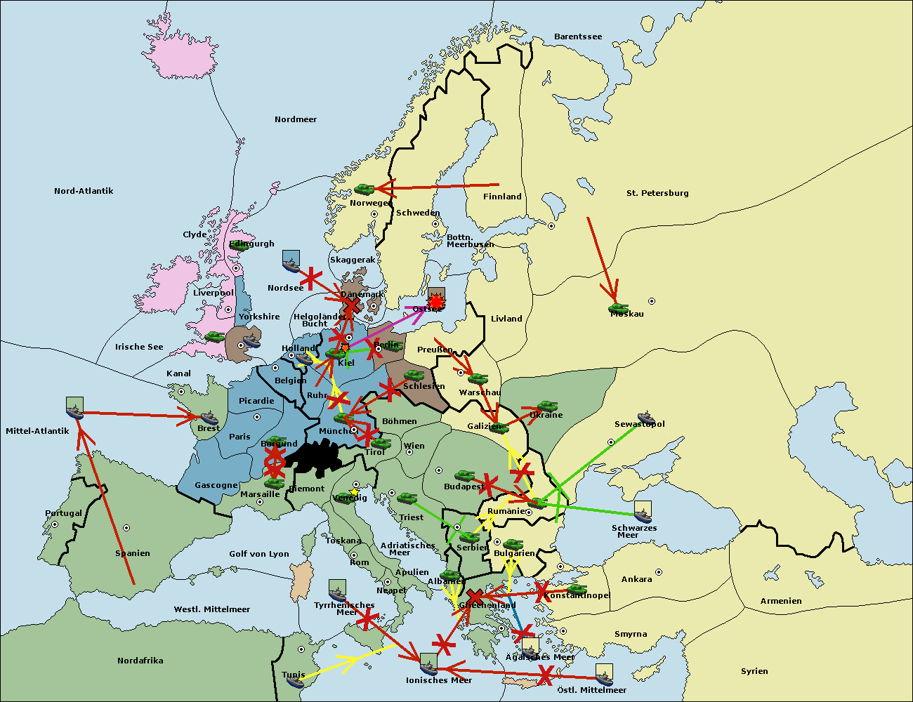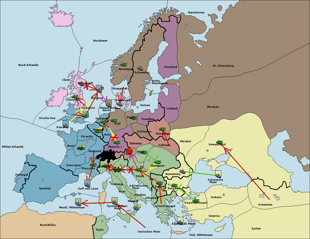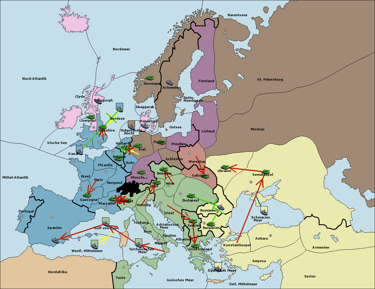 • Die Flotte in Bulgarien (Südküste) move nach Griechenland.
